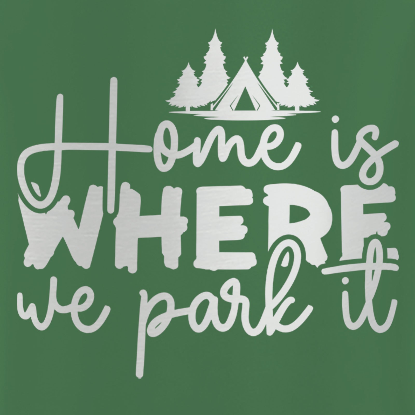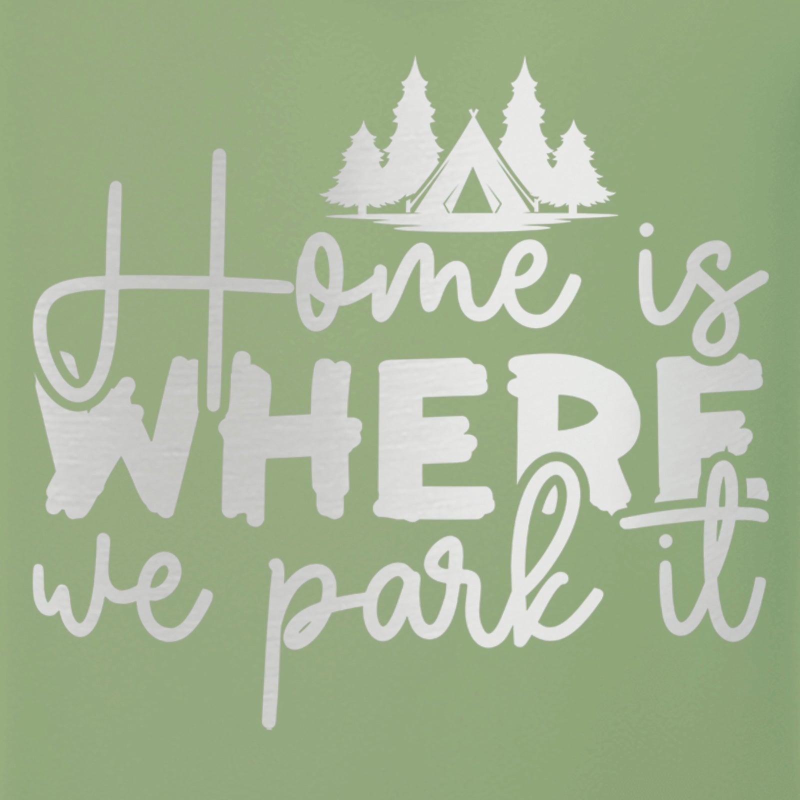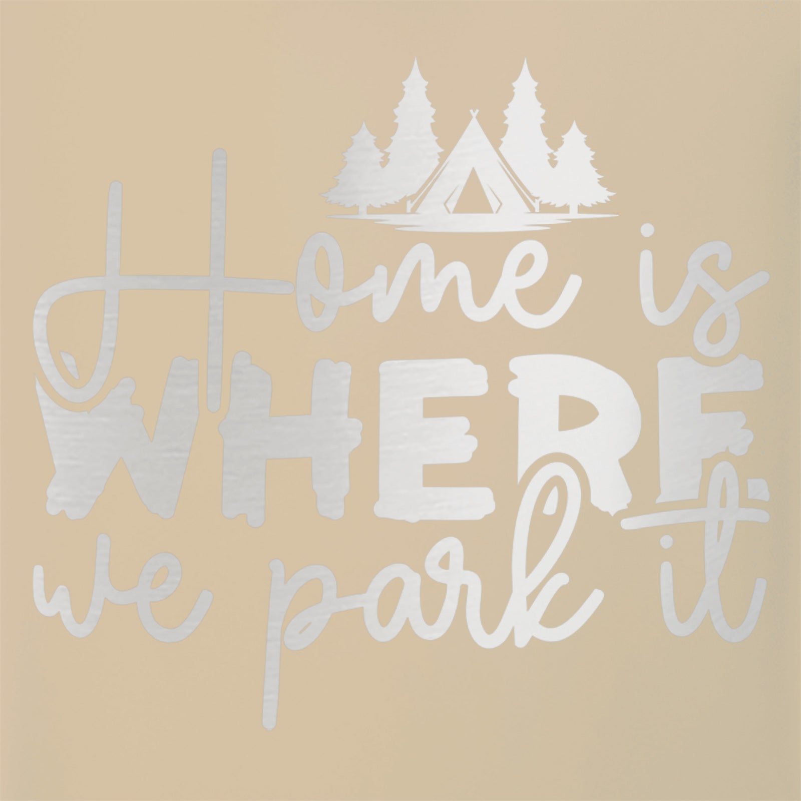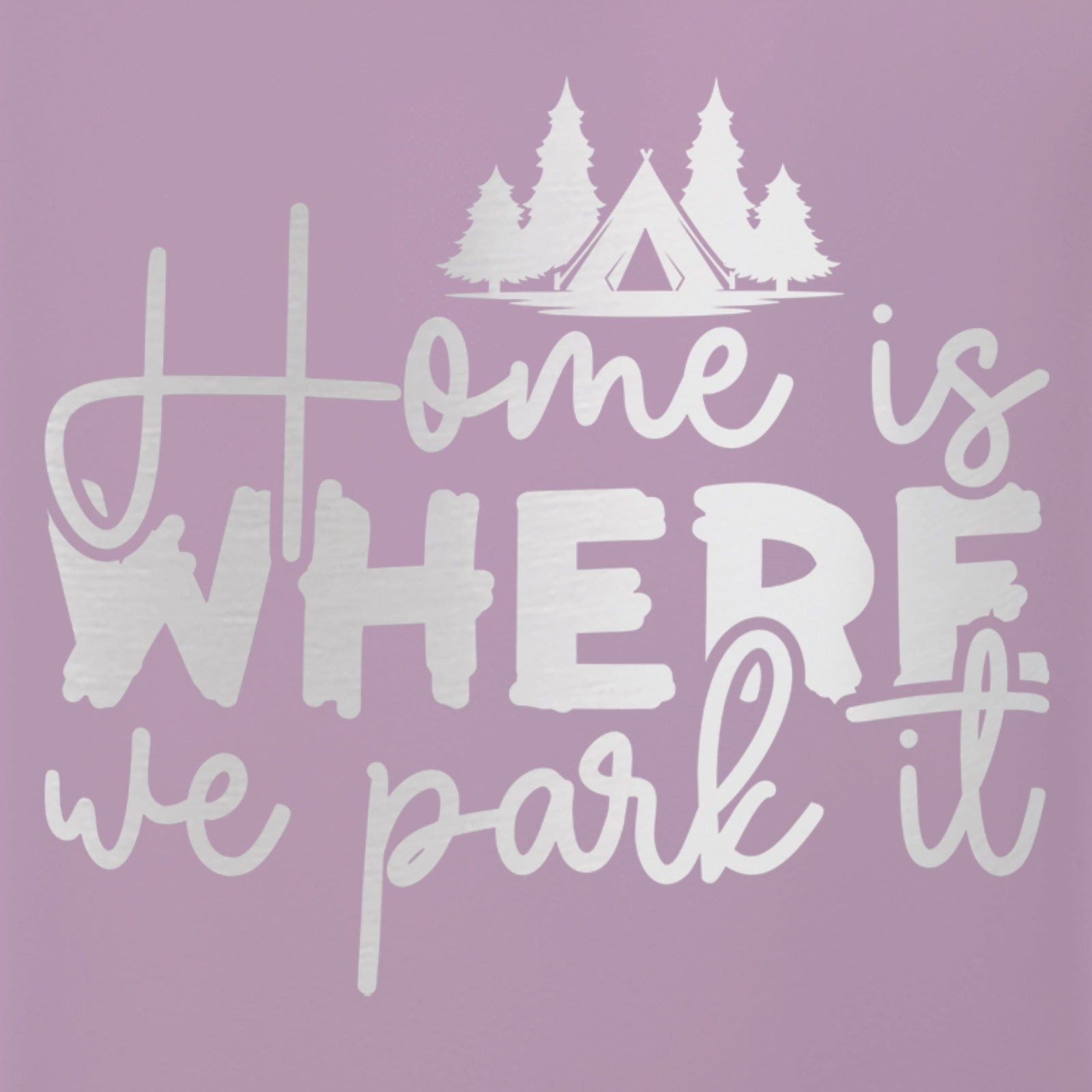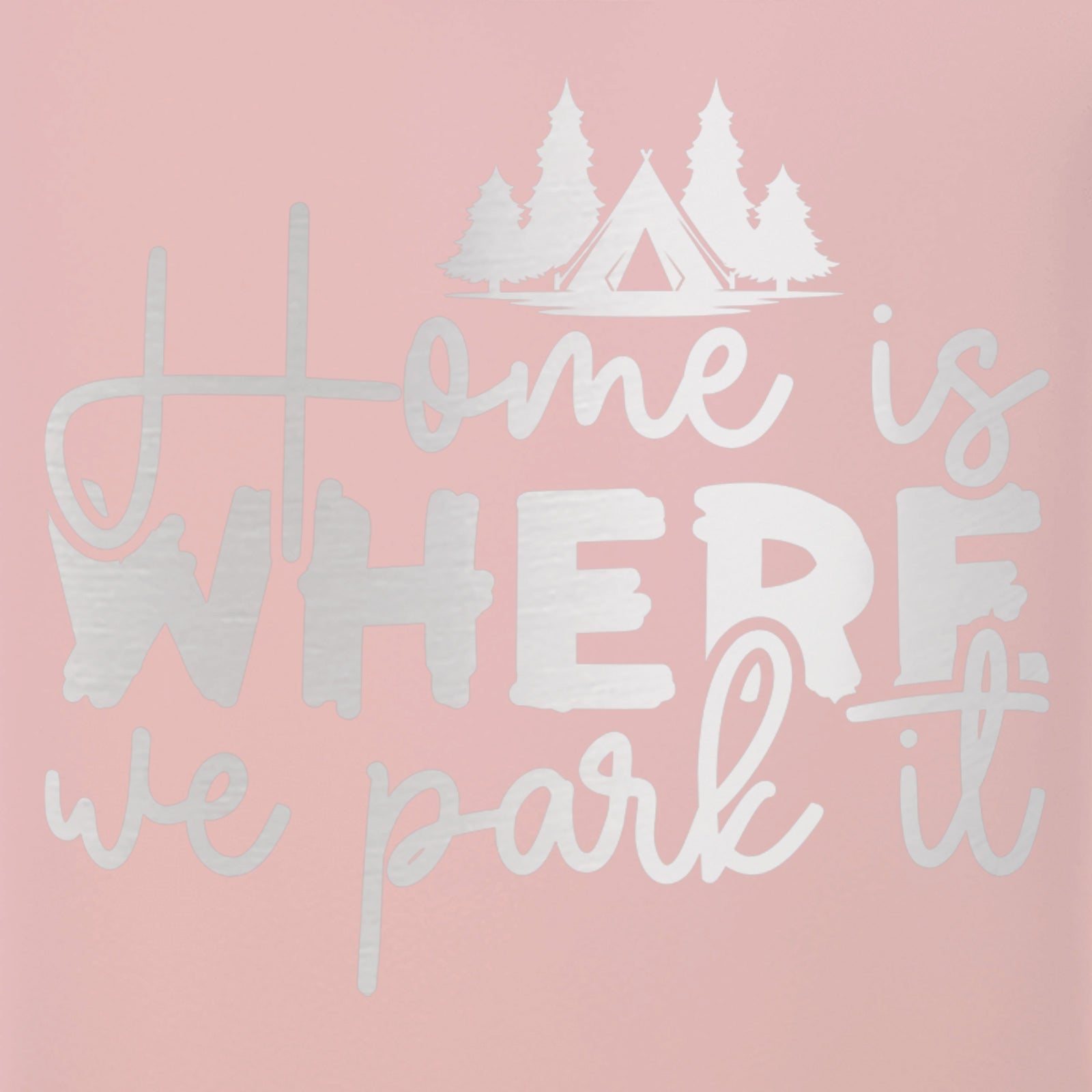 The Home is where we park the camper Tumbler with Handle is a must-have for those living the RV life. Featuring a durable handle and sleek design, it's perfect for your mobile home journey. Enjoy your adventures in our home on wheels.