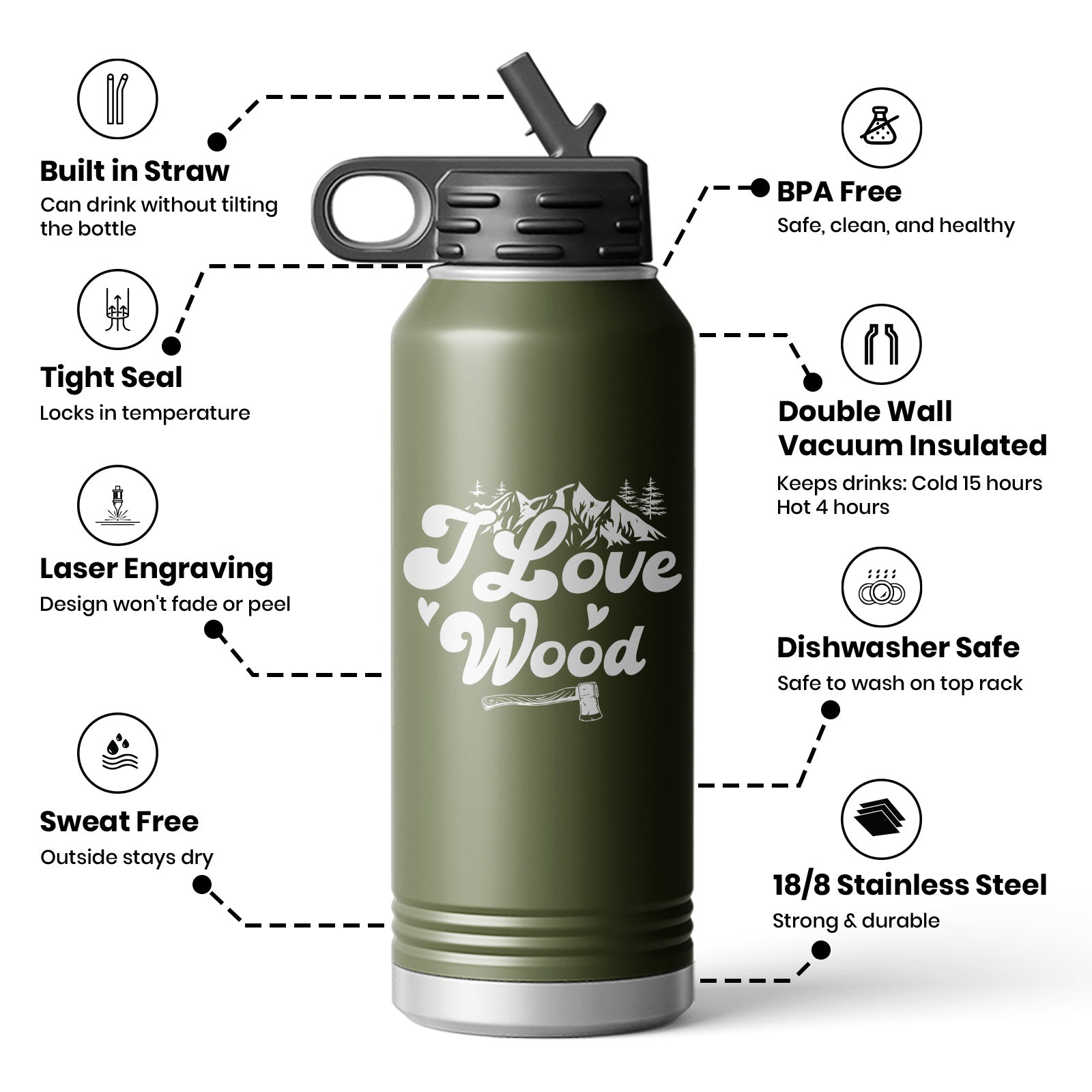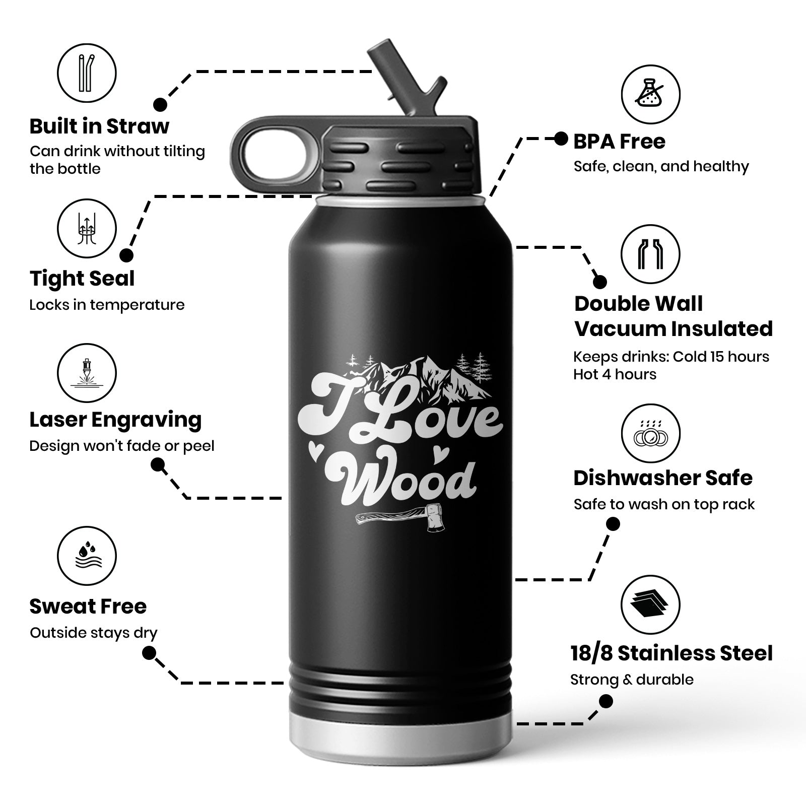 I Love Wood Outdoor Adventures Water Bottle Mug
