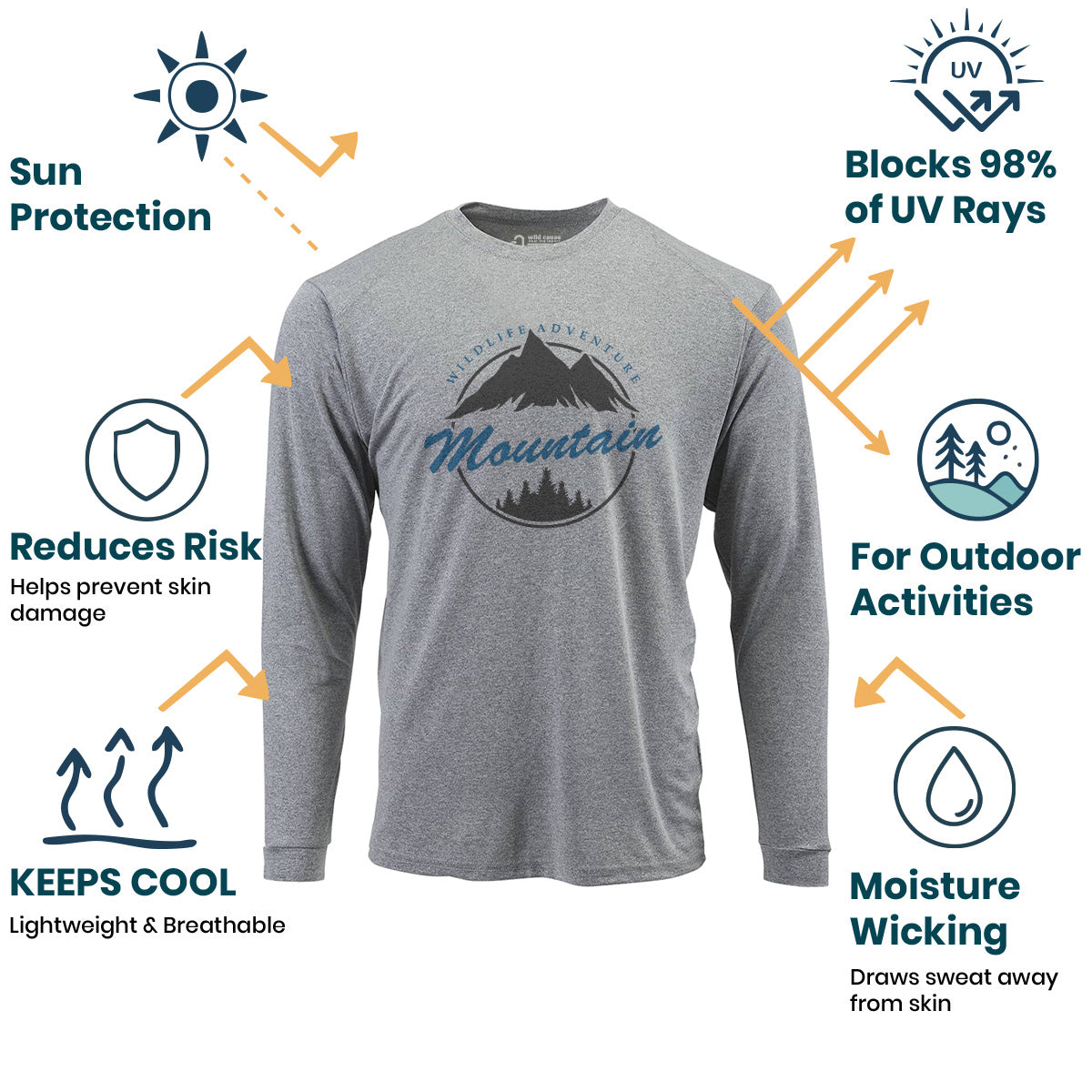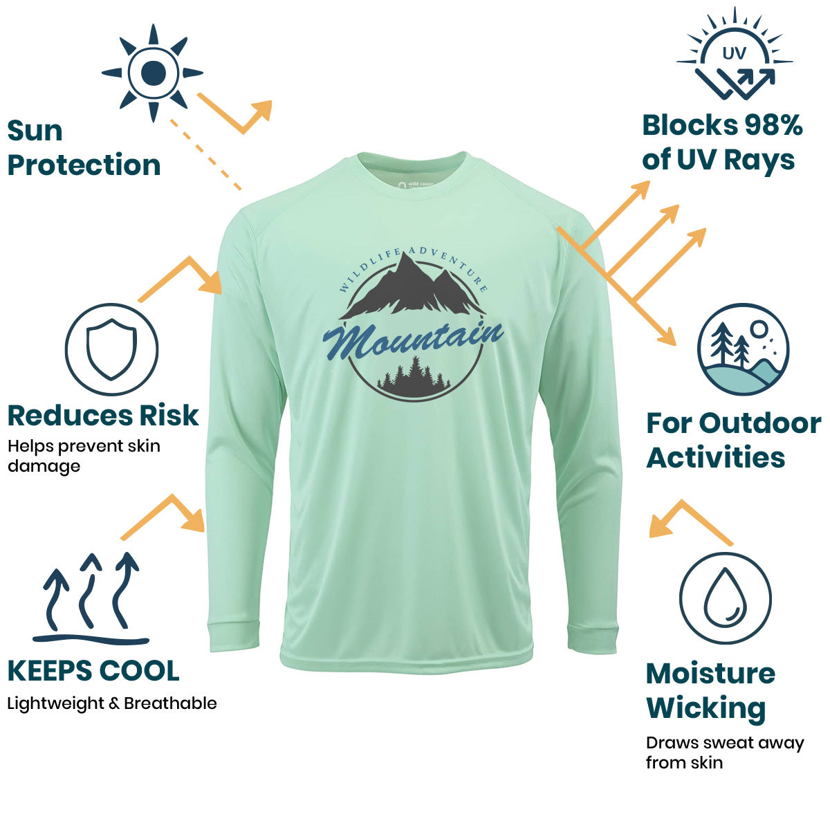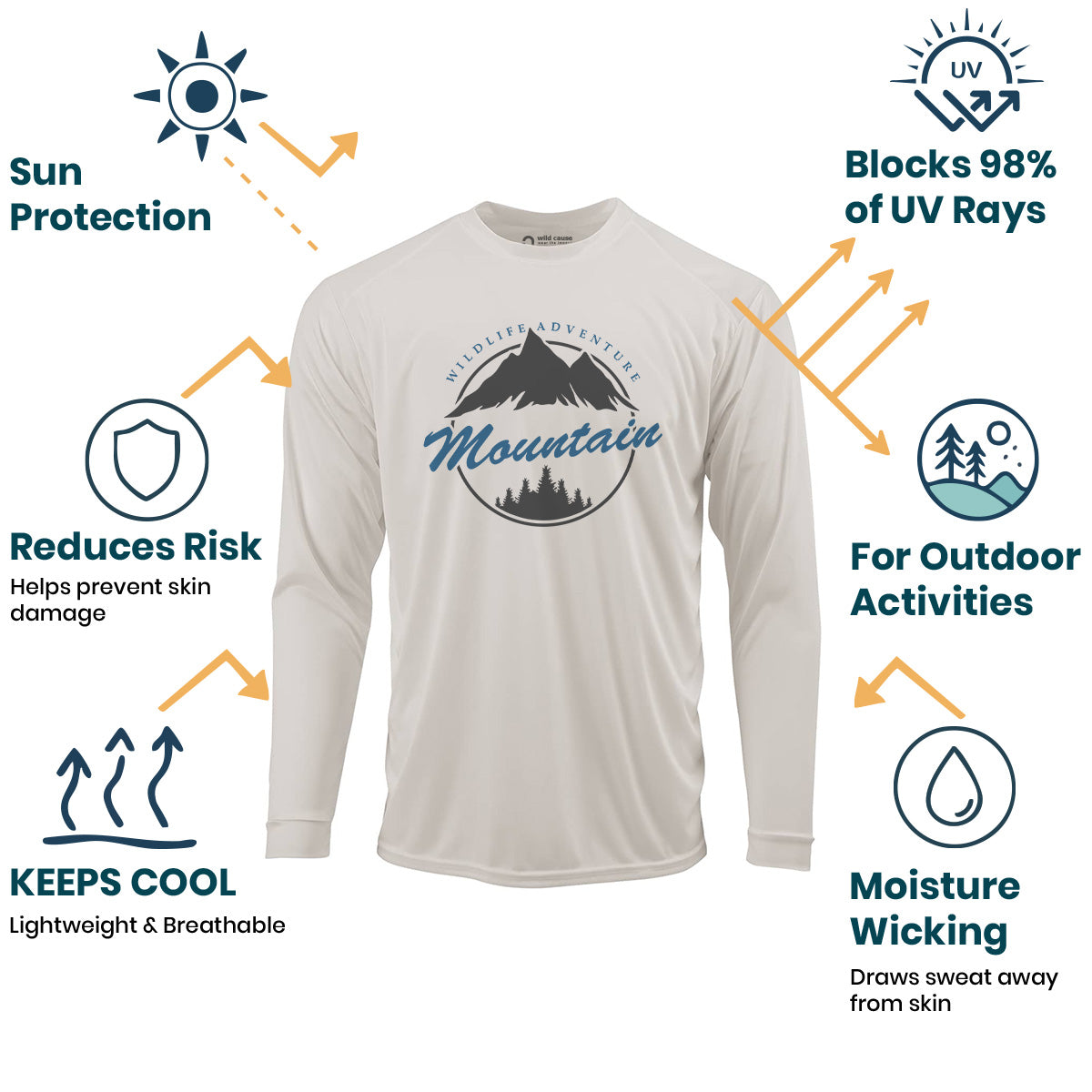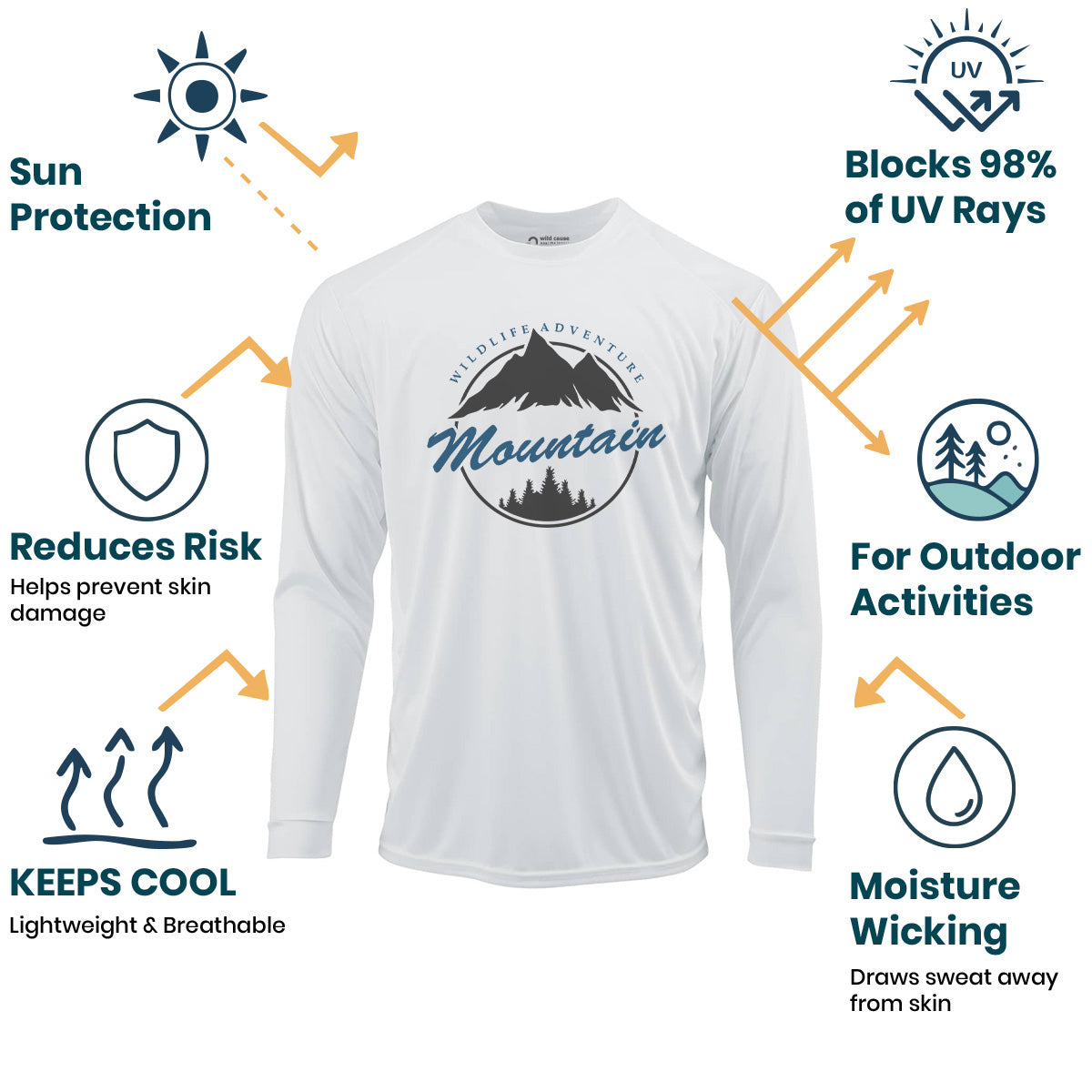 Witness nature’s grandeur! Sun Protection UV Performance Shirt UPF 50+ features majestic mountain views and breathtaking peaks. Stay protected with panoramic mountain scenes and epic mountain climb designs. Perfect for outdoor adventures!