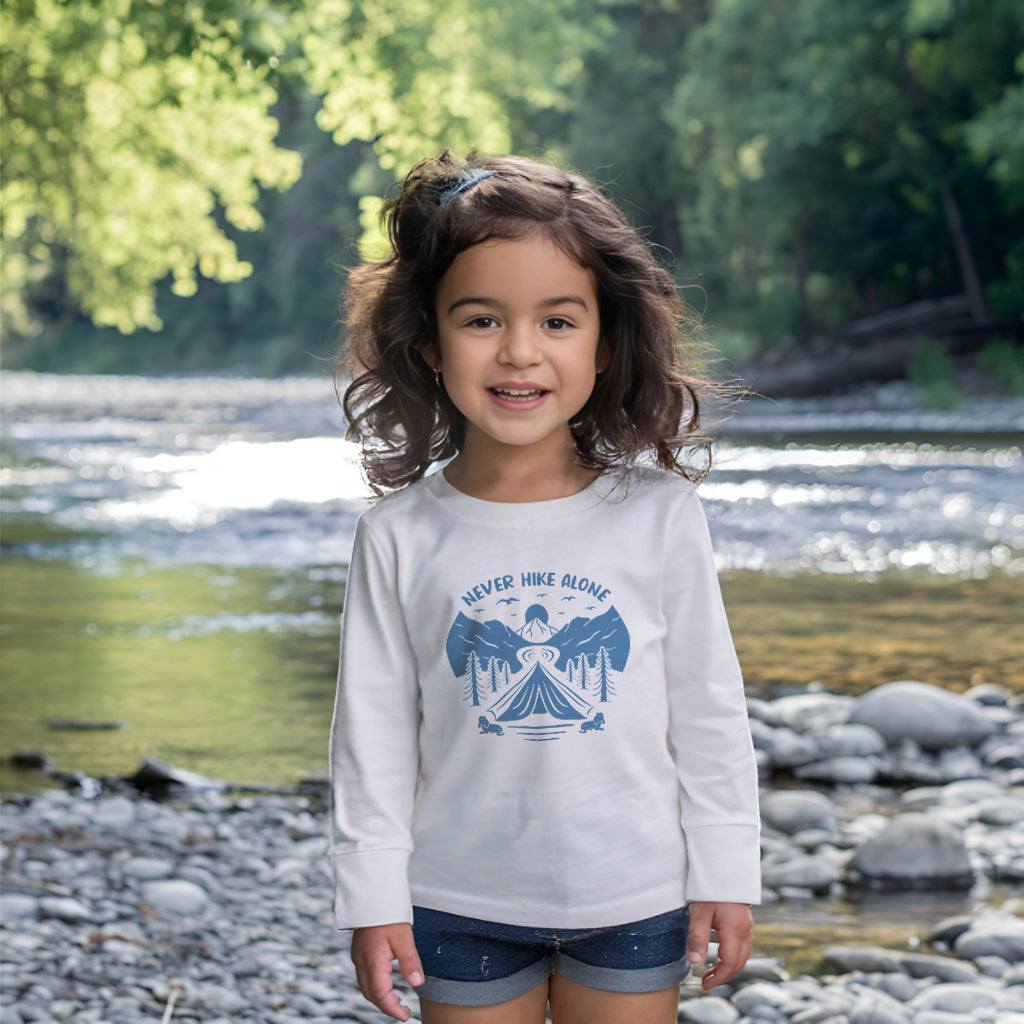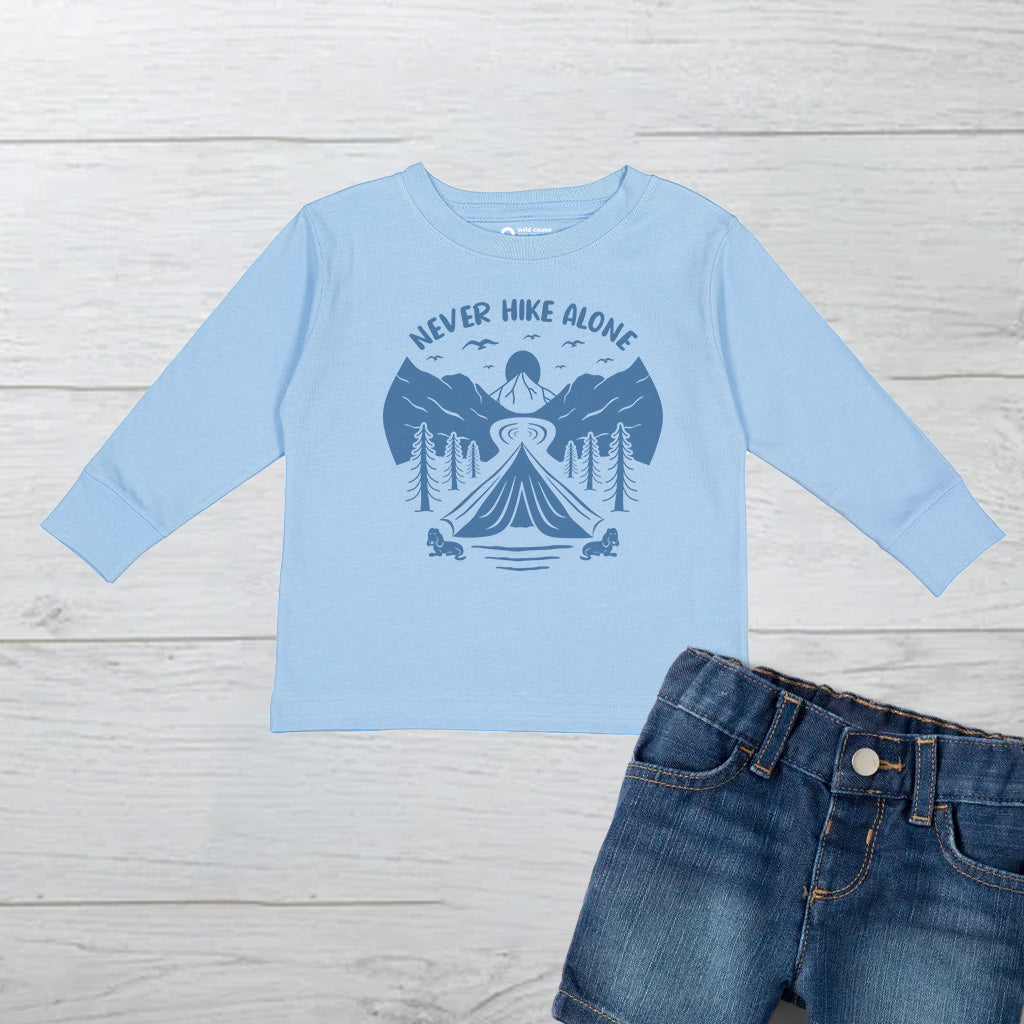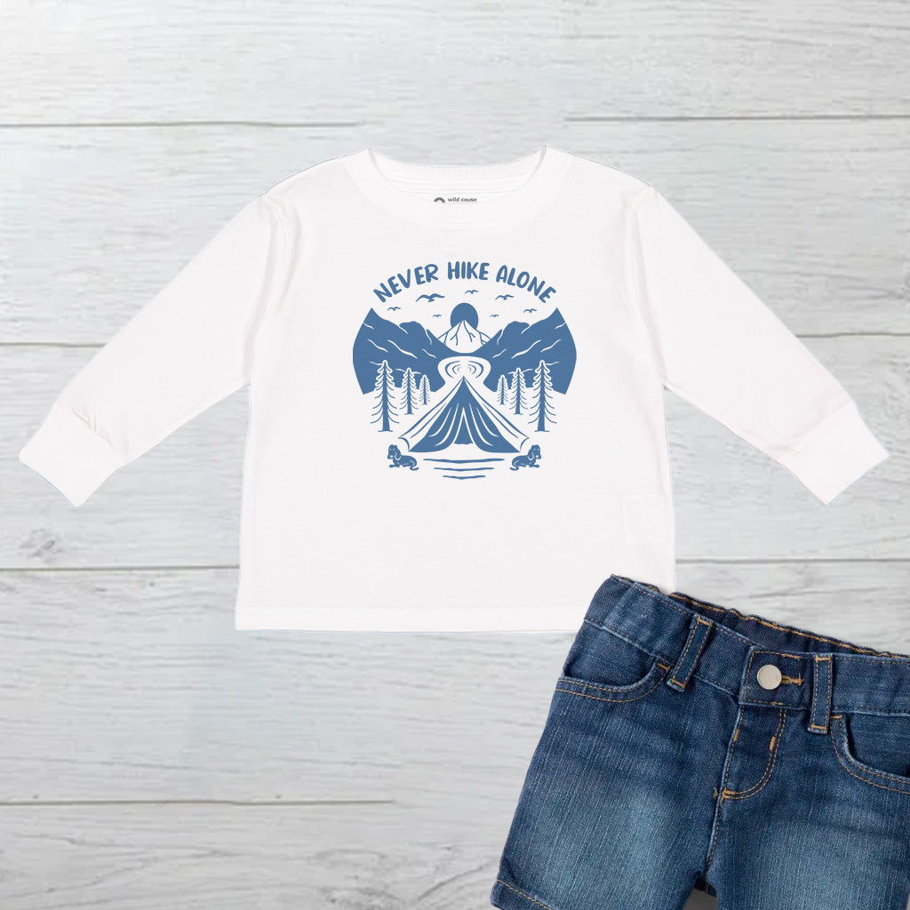 Never Hike Alone With Buddy Mountain Adventure Kids Toddler Long Sleeve T-Shirt