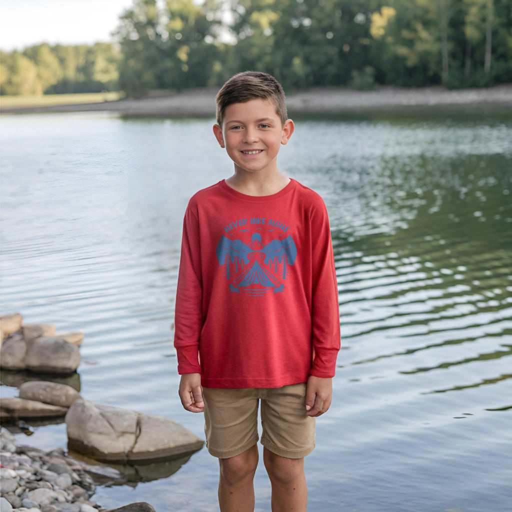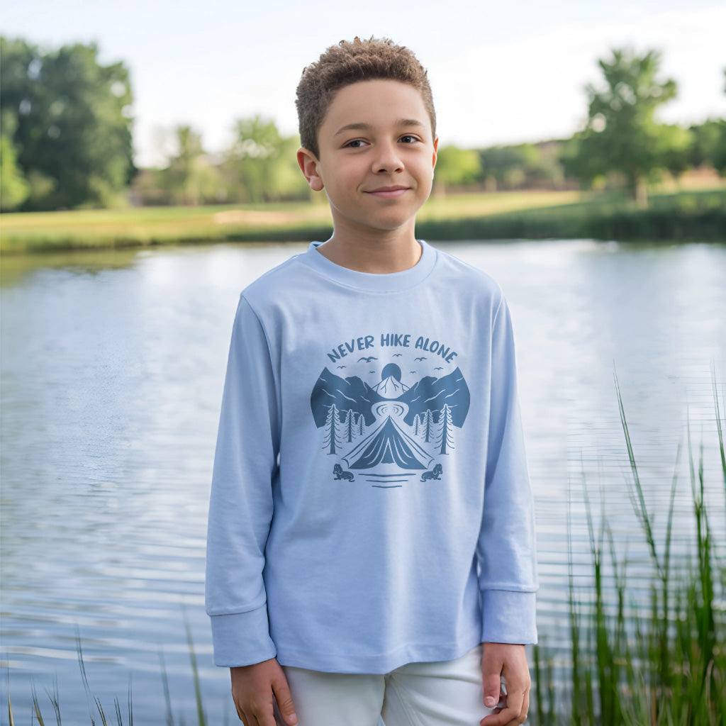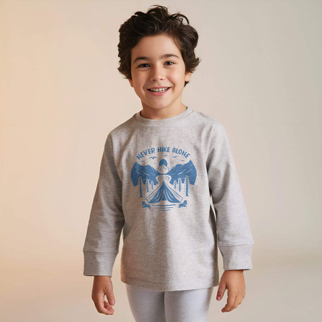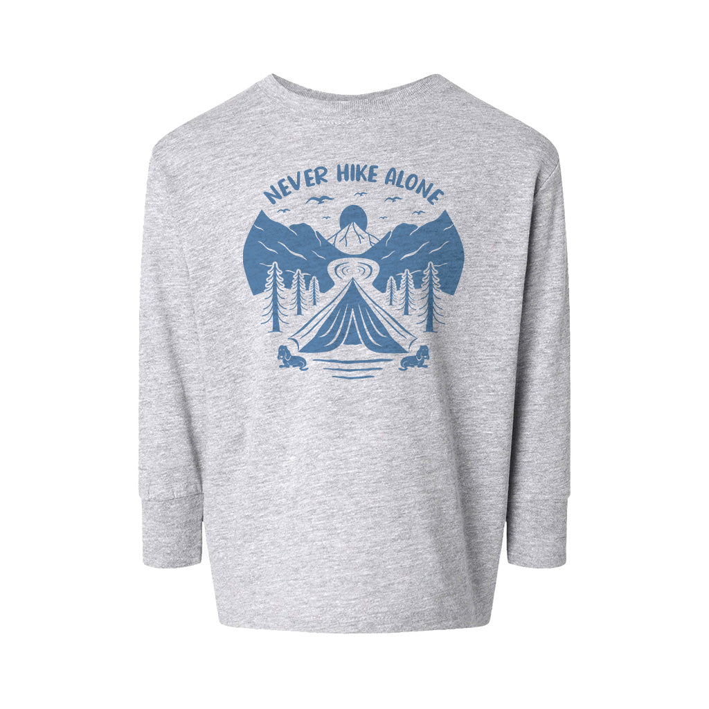 Never Hike Alone With Buddy Mountain Adventure Kids Toddler Long Sleeve T-Shirt