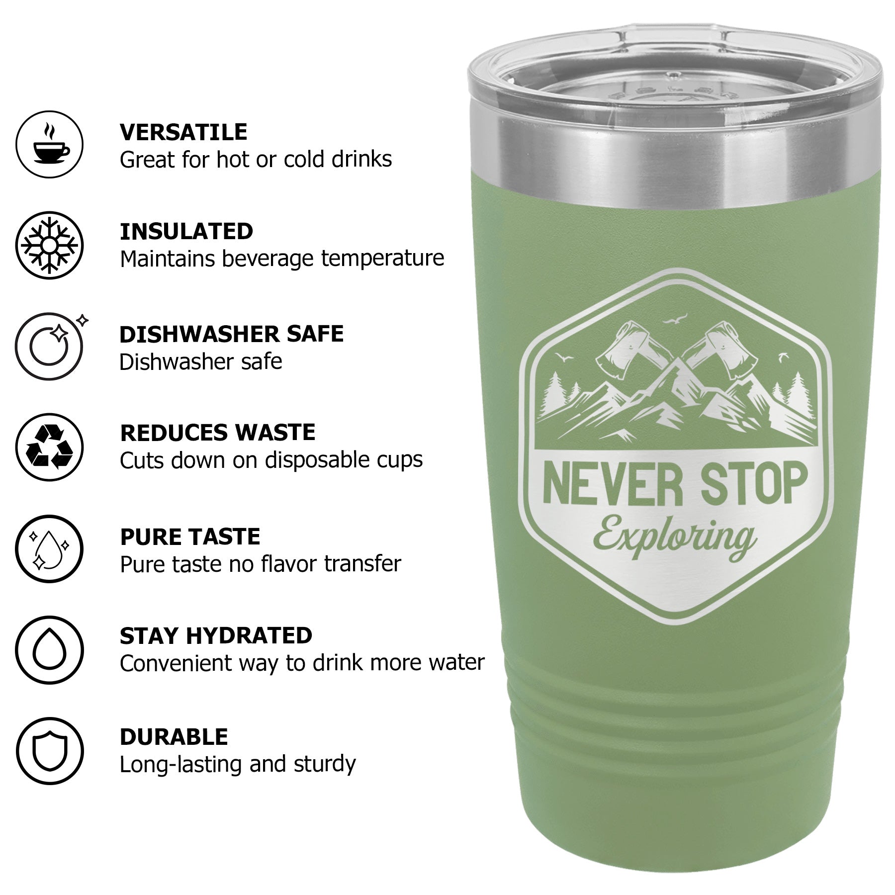 Never Stop Exploring Outdoors Tumbler Cup Mug