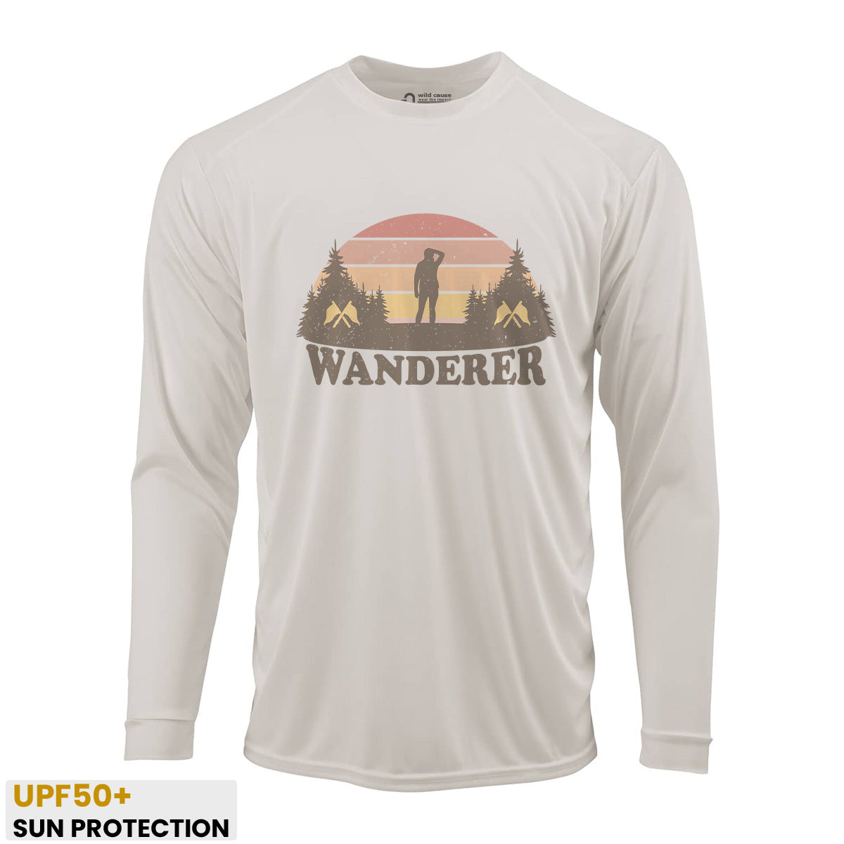Retro Hiker Wanderer On Wilderness Adventure Sun Protection UV Performance Shirt UPF 50+