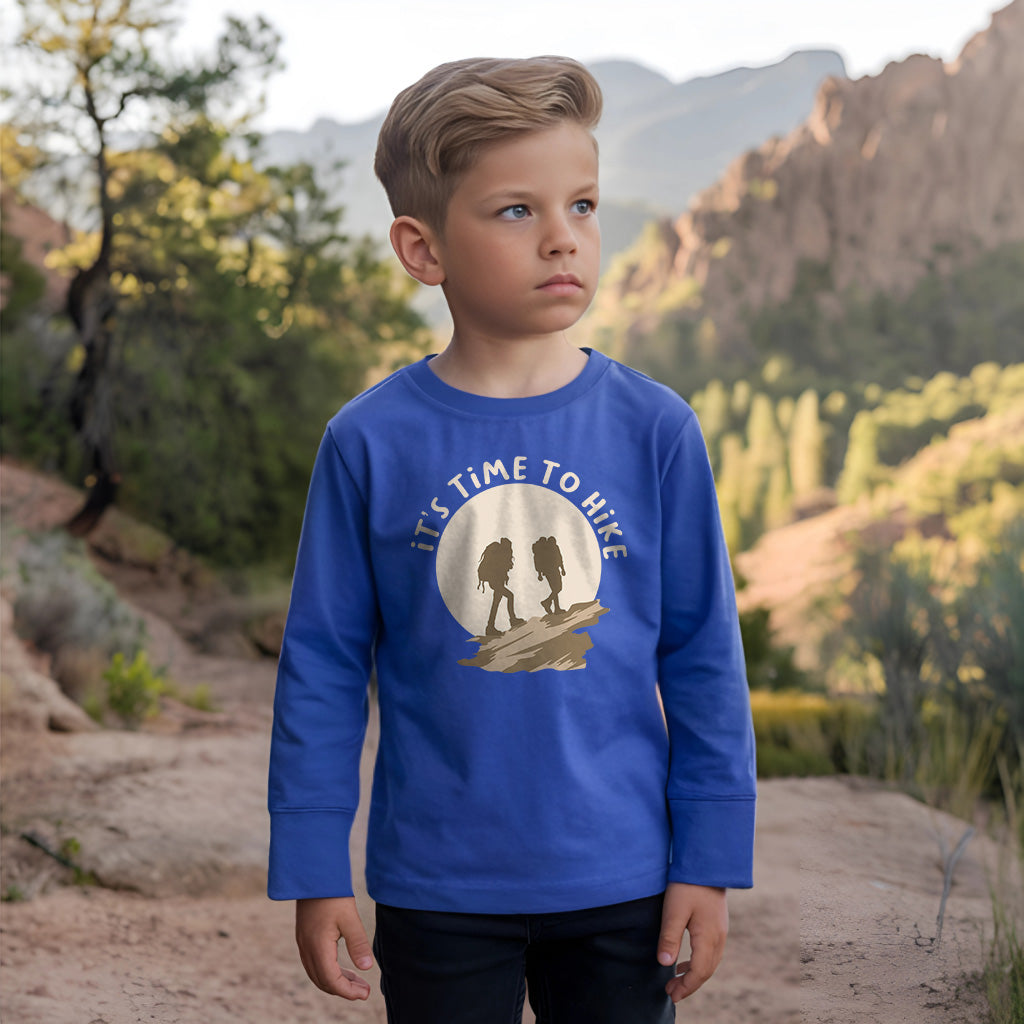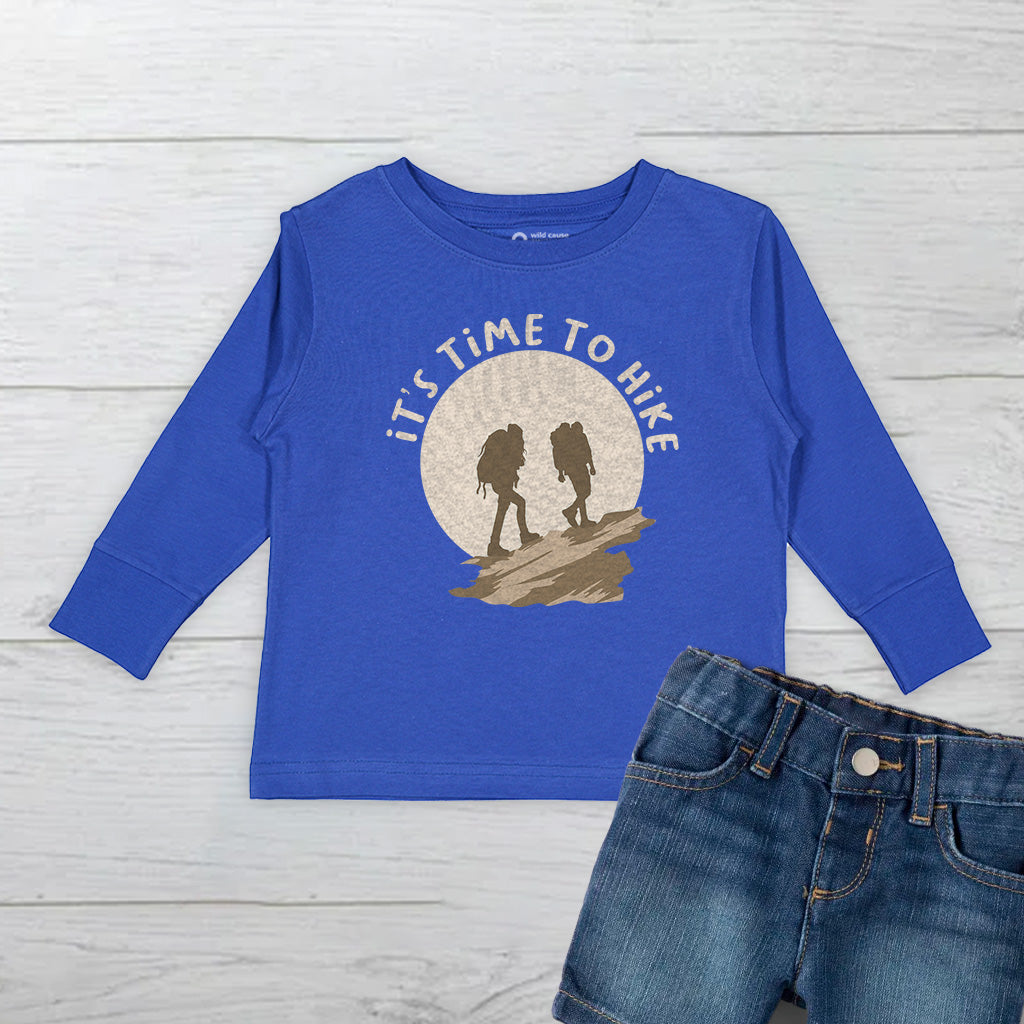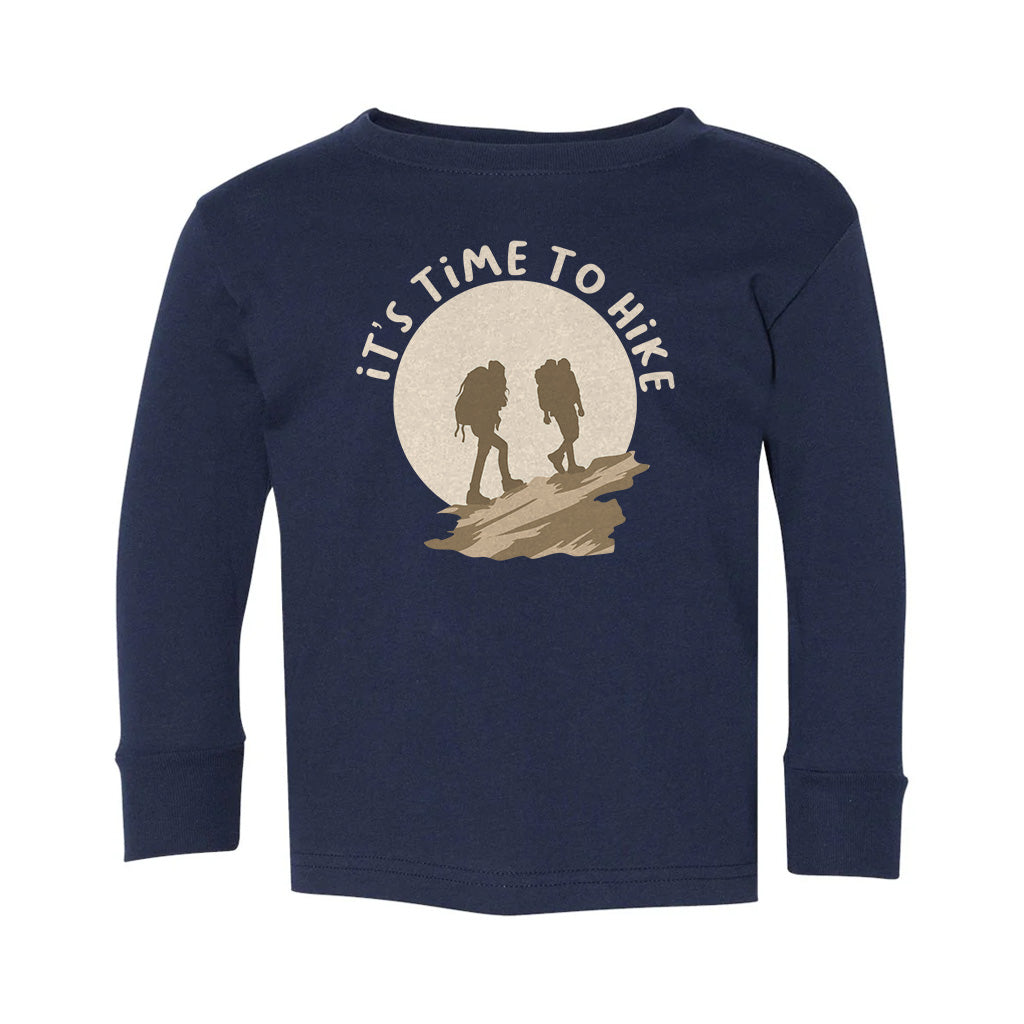 Its Time To Hike Adventure Awaits Outdoor Kids Toddler Long Sleeve T-Shirt