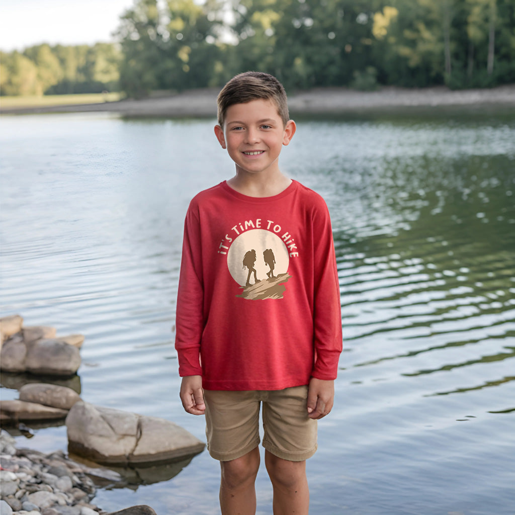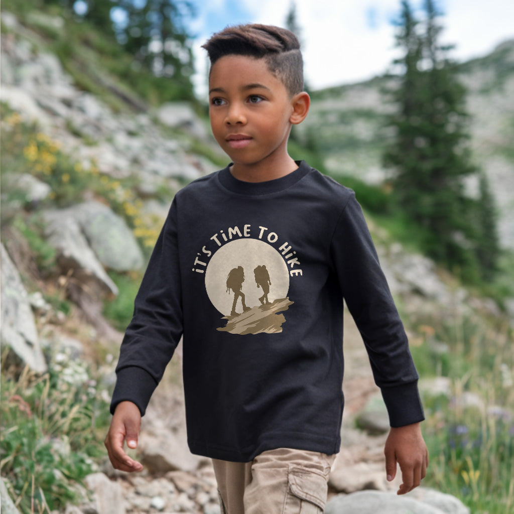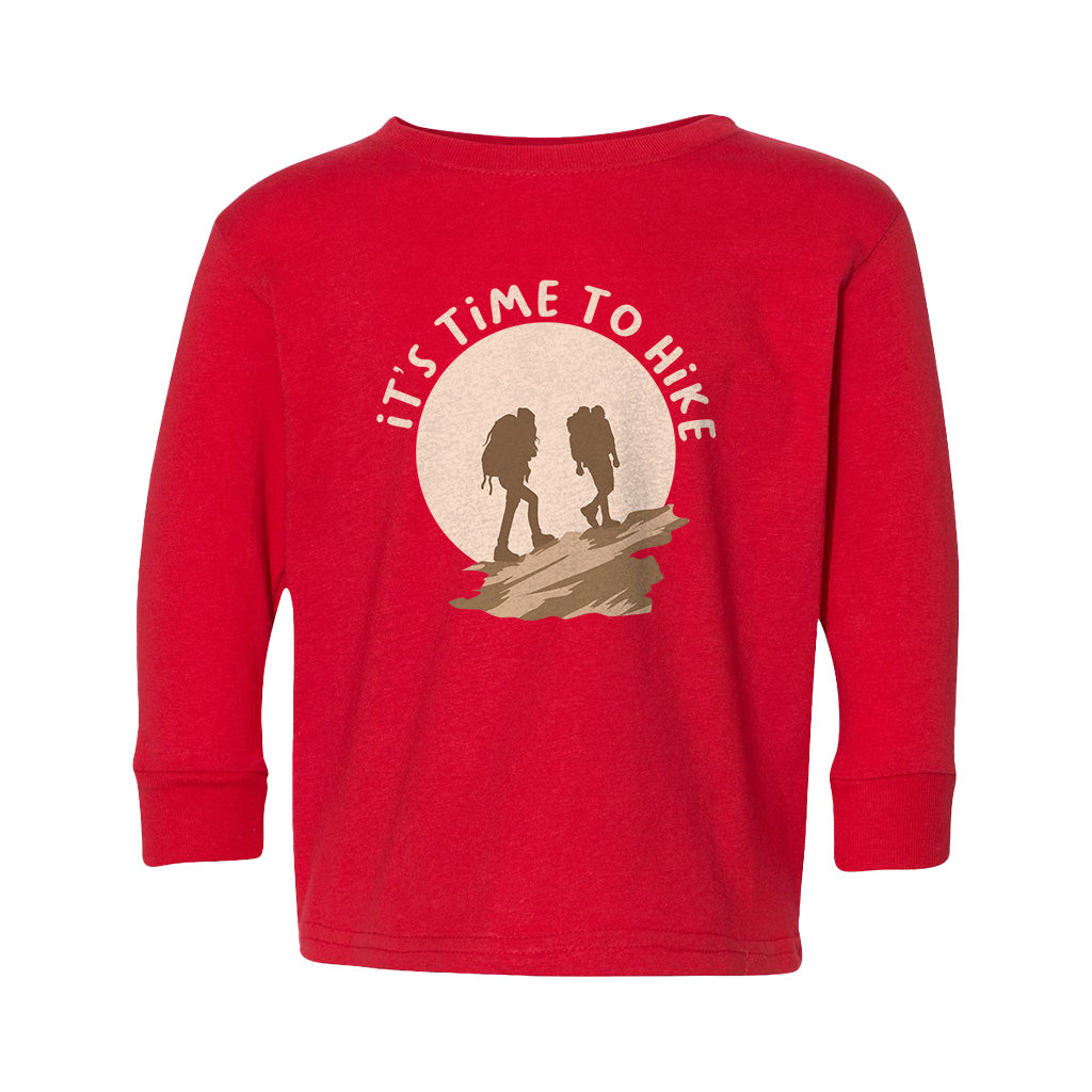 Its Time To Hike Adventure Awaits Outdoor Kids Toddler Long Sleeve T-Shirt