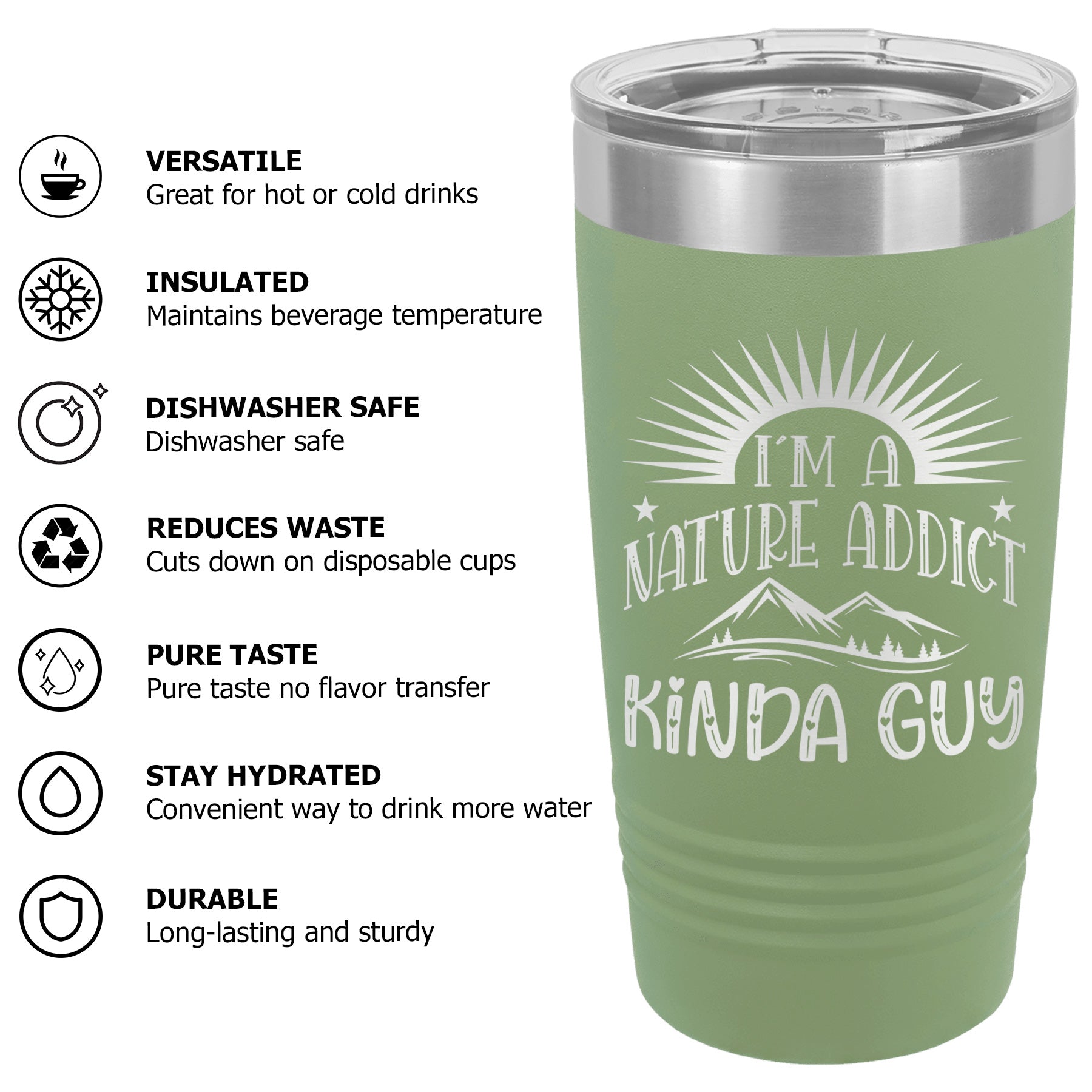 Stay hydrated on every adventure with this rugged, insulated stainless steel tumbler, designed for outdoor enthusiasts. Whether you're hiking, camping, fishing, or road-tripping, this tumbler keeps your drinks ice-cold or piping hot for hours, so you can enjoy every sip just the way you like it. Built for durability, it’s resistant to drops, scratches, and extreme conditions—making it the perfect companion for the outdoors.