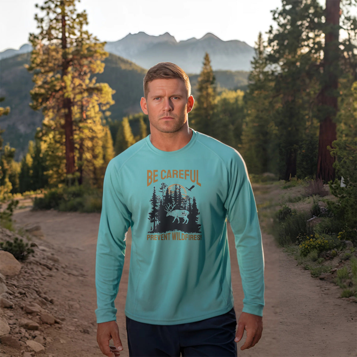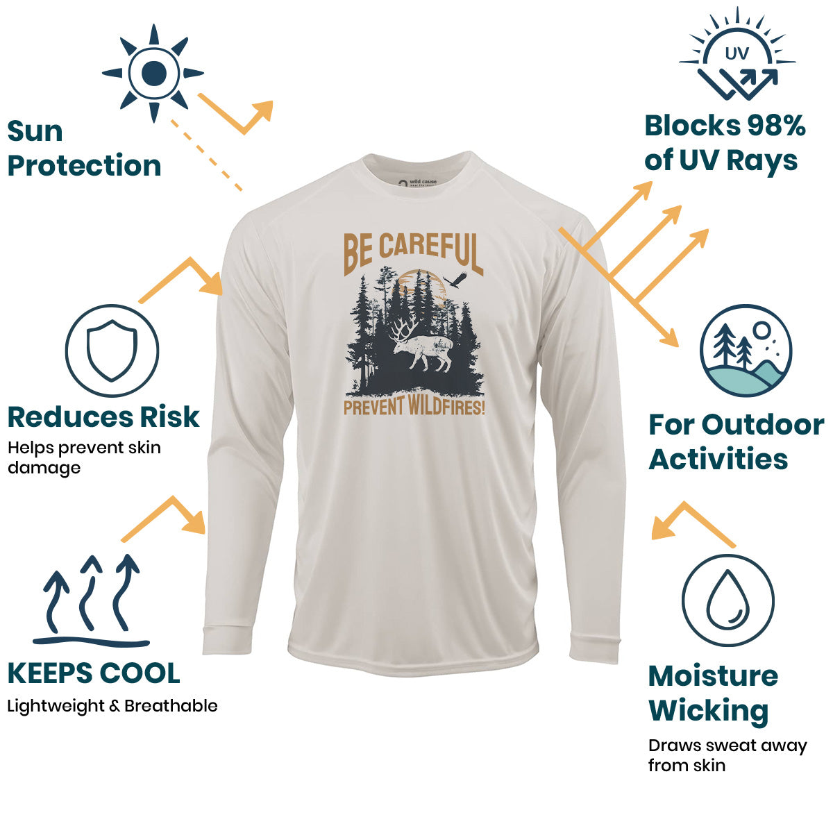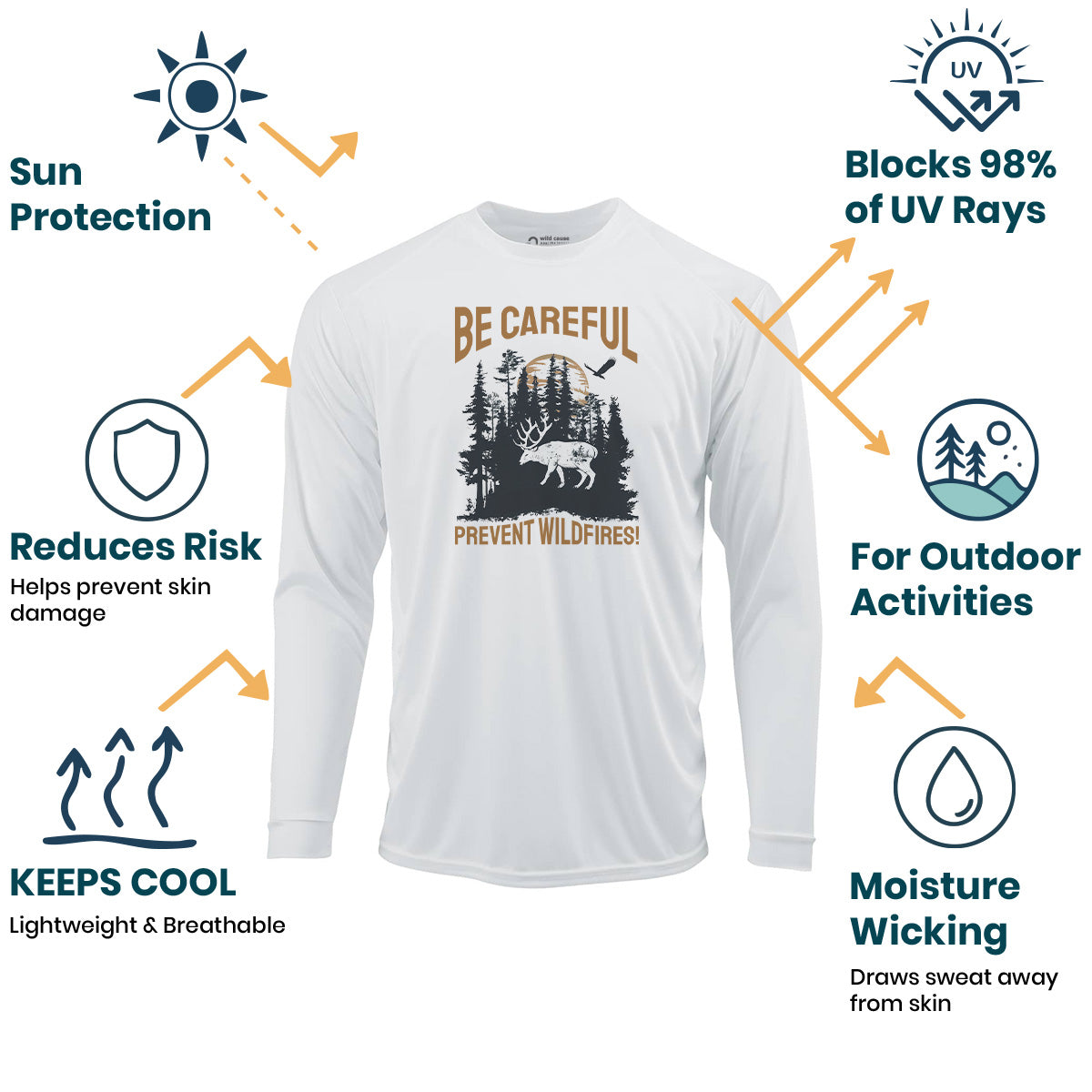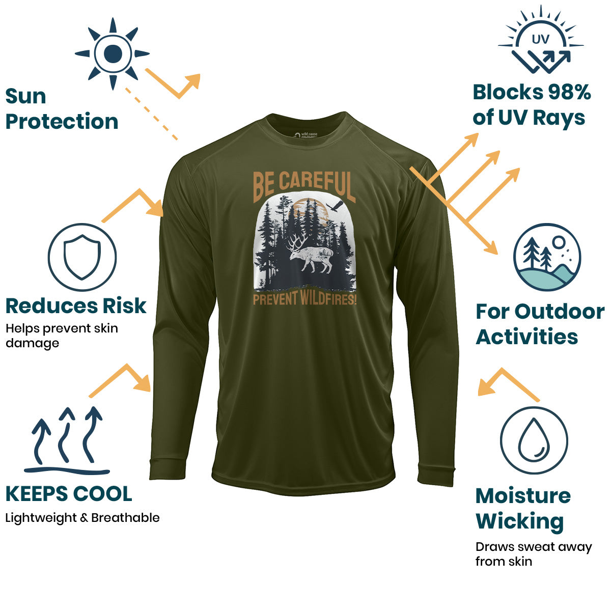 Be Careful Prevent Wildfires Outdoor Adventure Sun Protection UV Performance Shirt UPF 50+