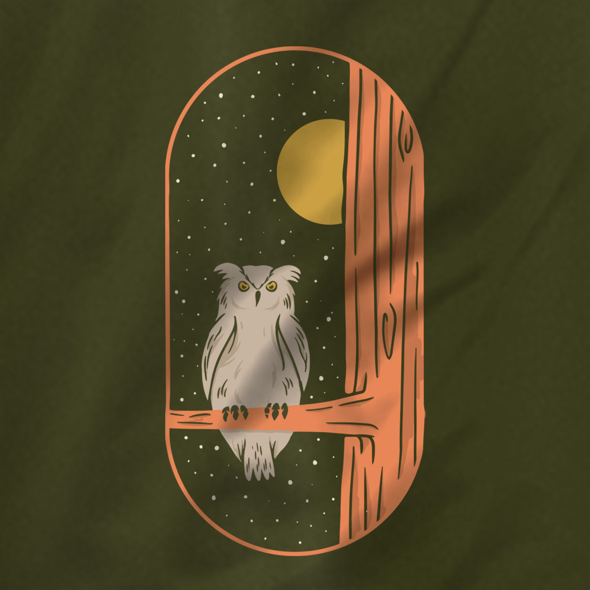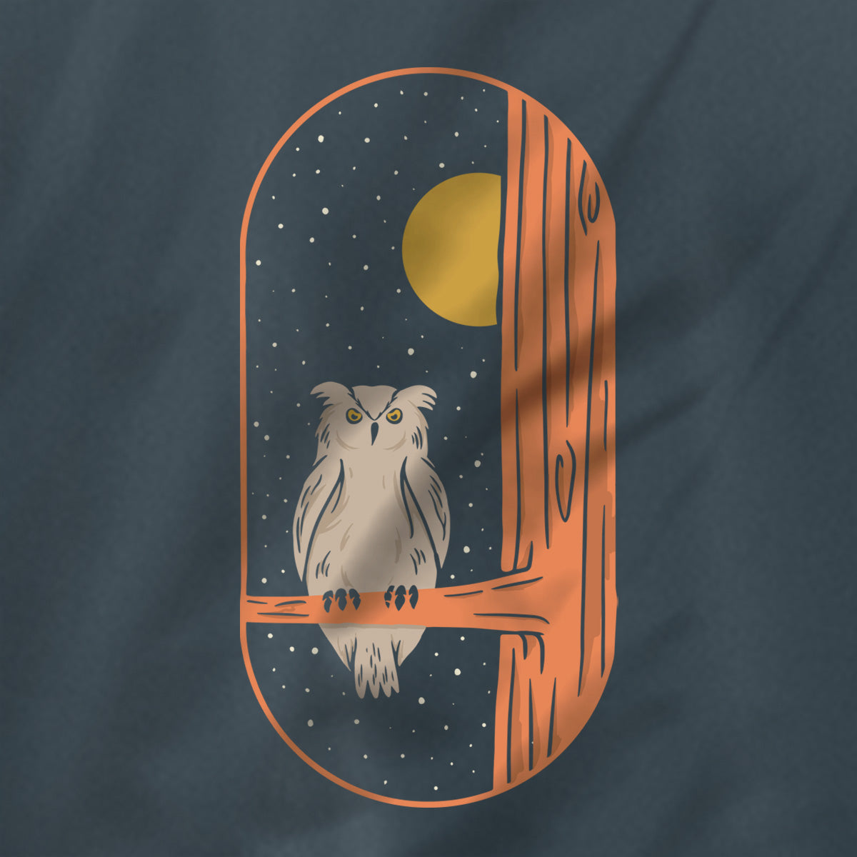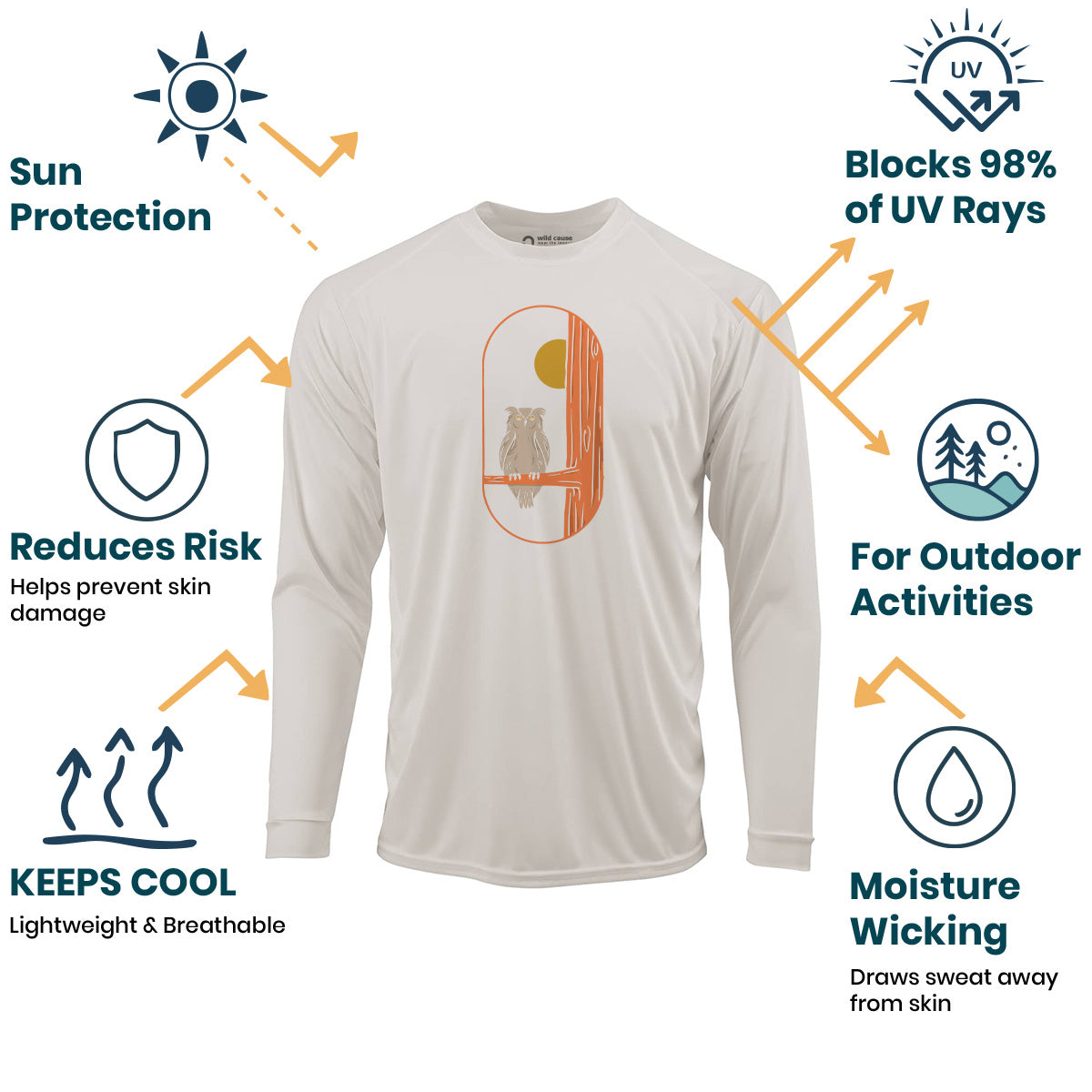 The Owl hollow Sun Protection UV Performance Shirt UPF 50+ features a stunning design of an Owl on The Full Moon, highlighting Owl Conservation Awareness. This Moonlit Owl Perch shirt is perfect for those who admire the Silent Guardian of the Forest and love the connection between Owl and Full Moon.