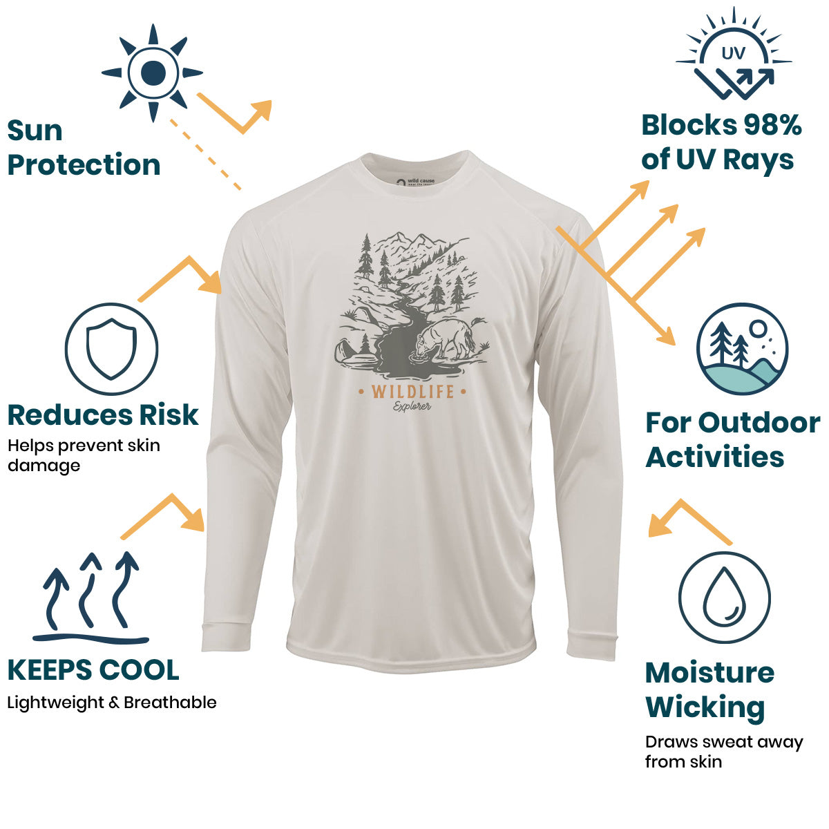 Stay cool, protected, and comfortable with this lightweight, moisture-wicking long-sleeve sun shirt. No more scratches, sunburns, or irritated skin. Made from 100% microfiber performance polyester, it provides UPF 50+ sun protection, keeping you safe from harmful UV rays during outdoor adventures. With moisture-wicking and anti-microbial properties, this shirt helps you stay dry and fresh all day.