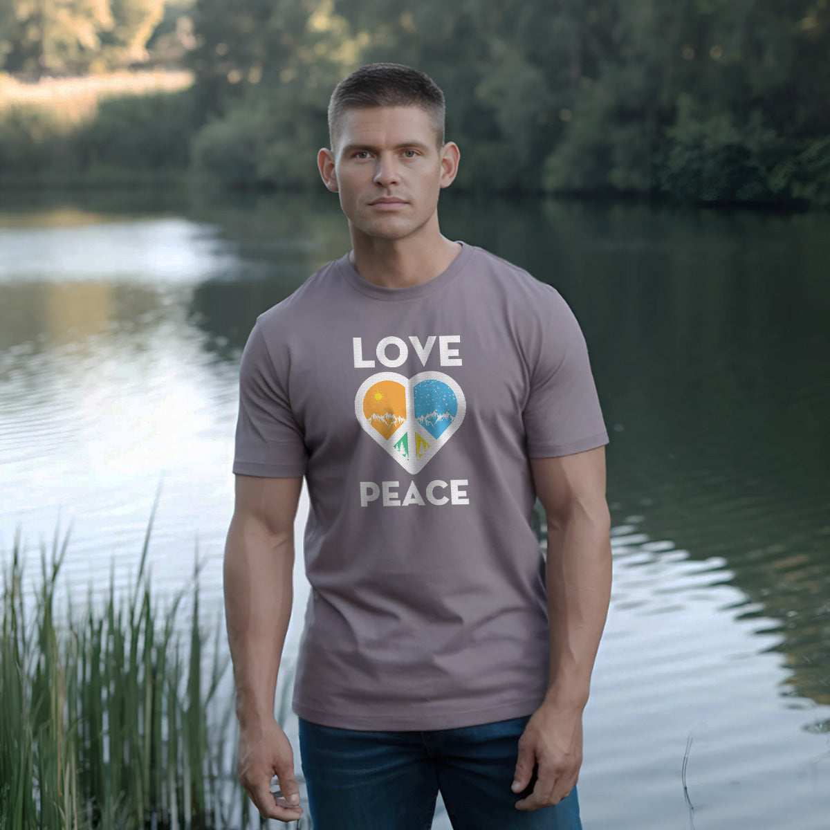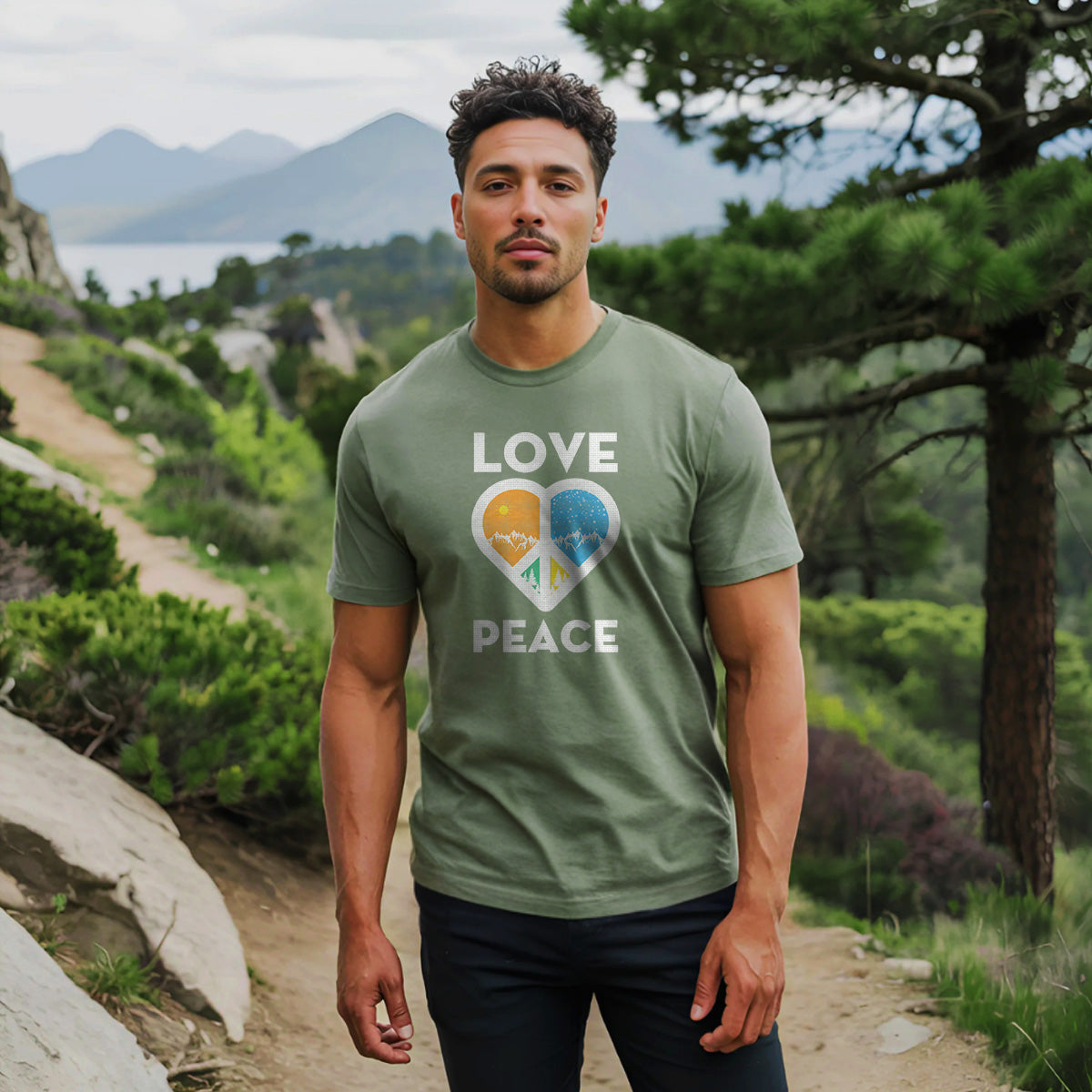 Love Peace Mountains Adventure Awaits Adult Cotton Tee T-Shirt