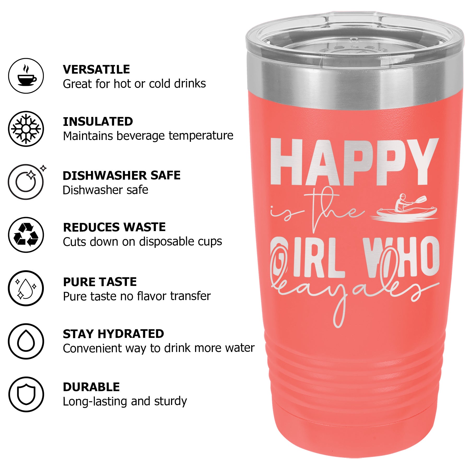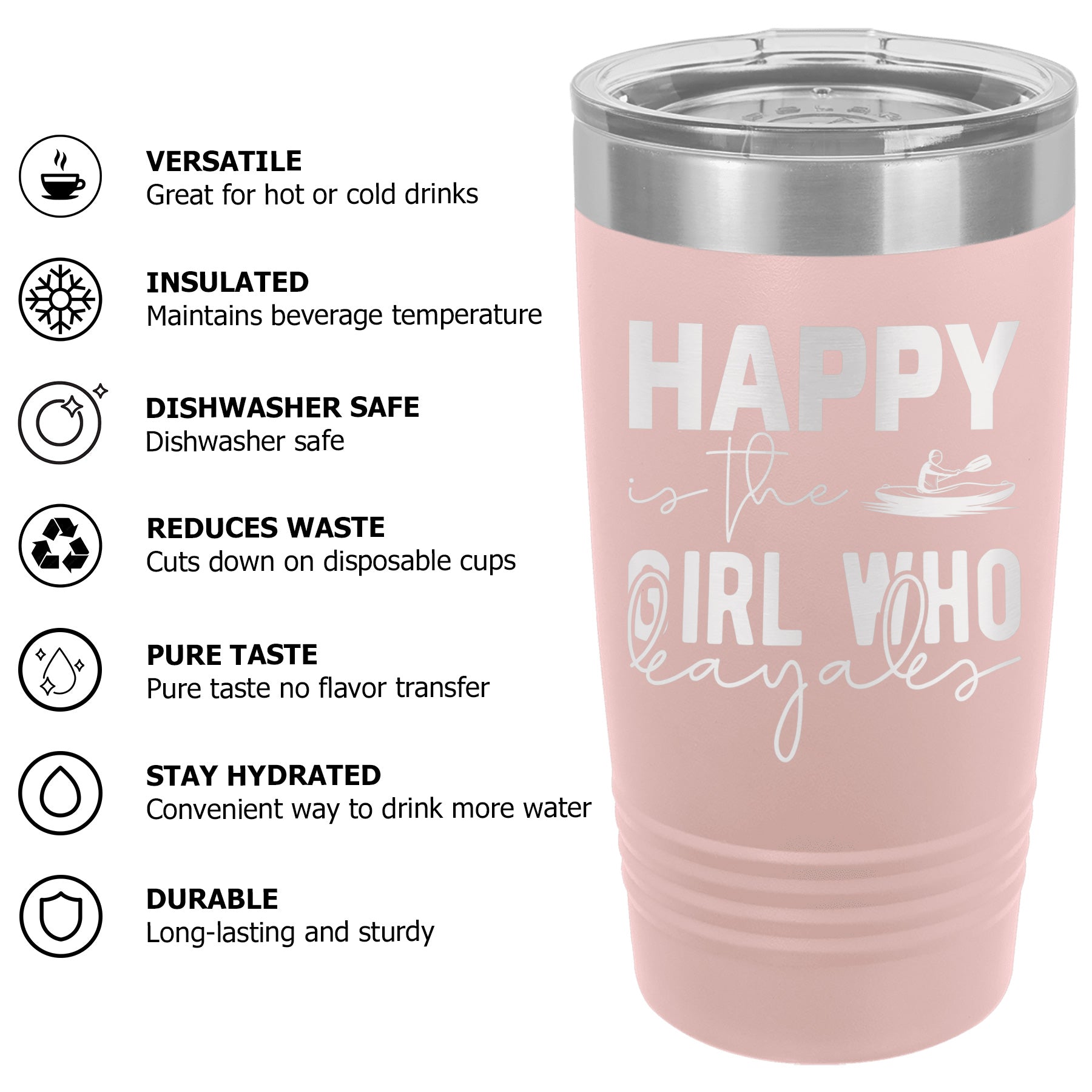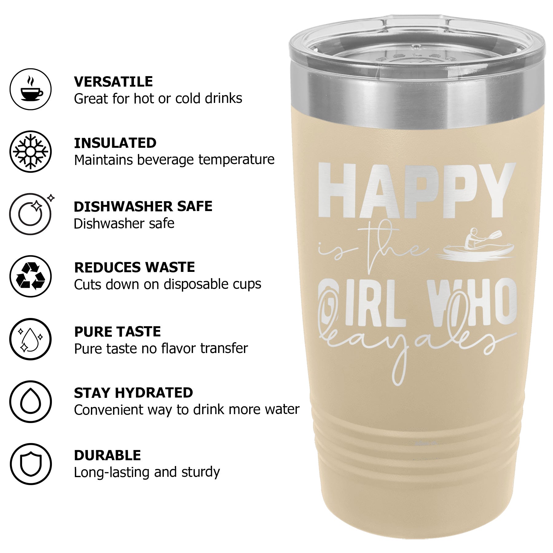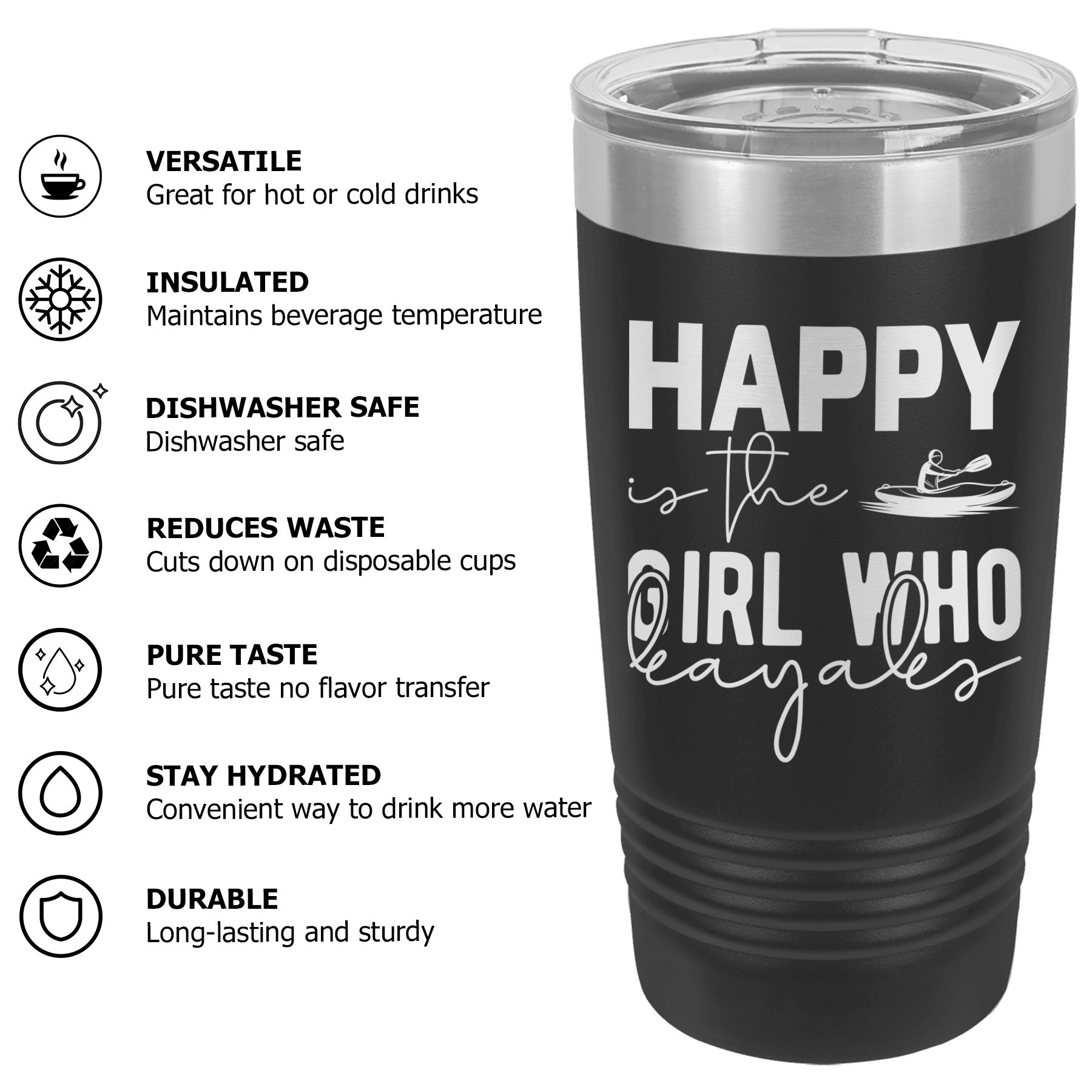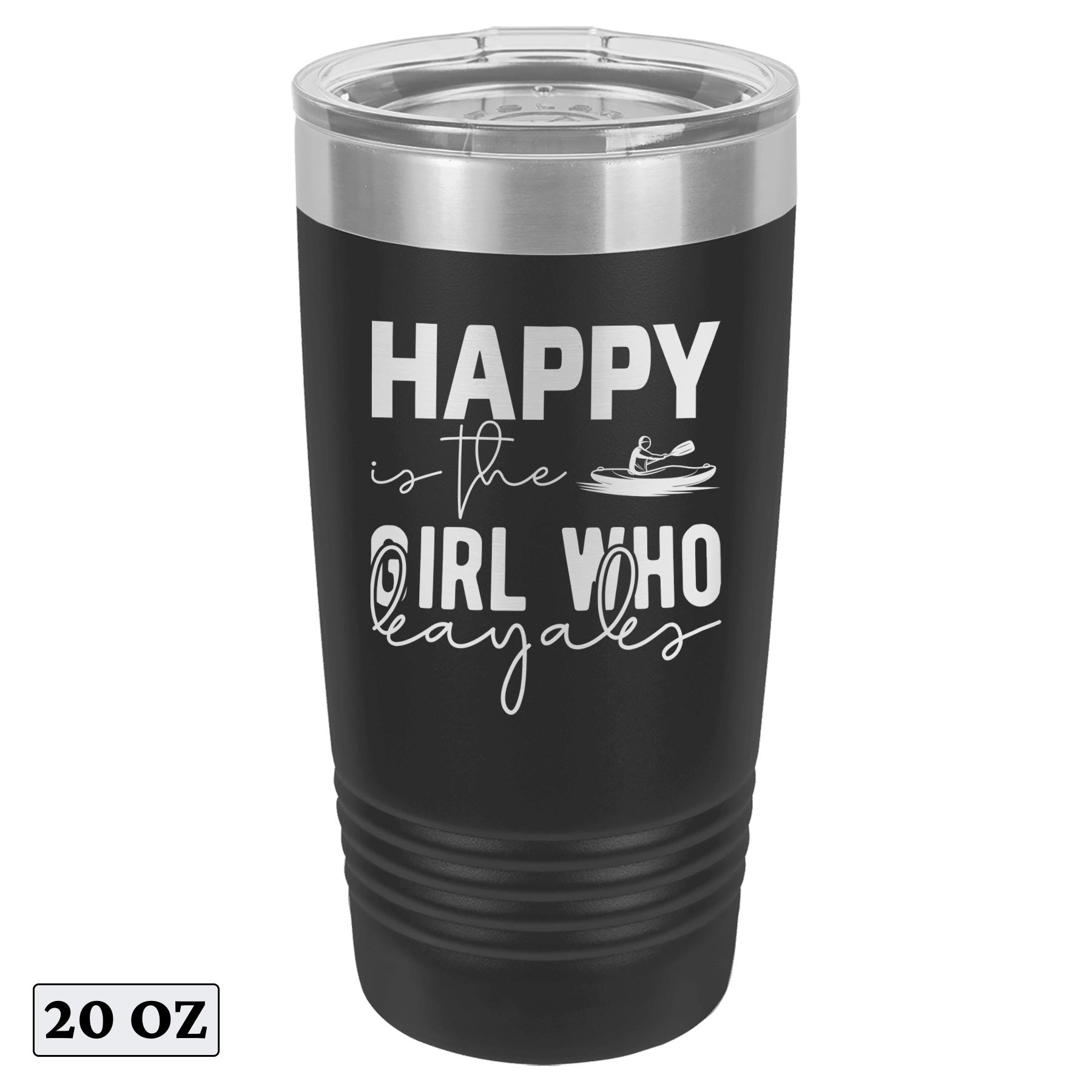 Happy Is The Girl Who Kayaks Lake Tumbler Cup Mug