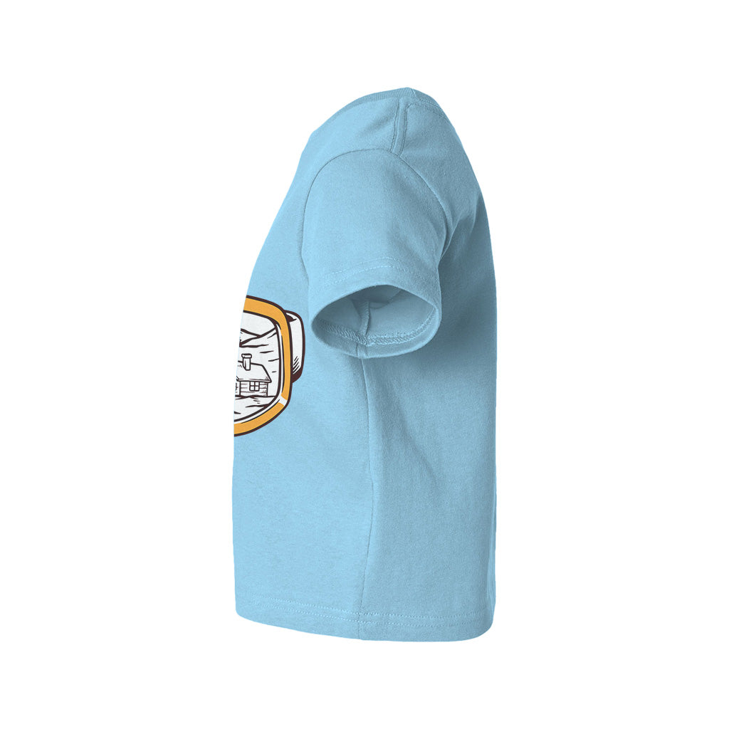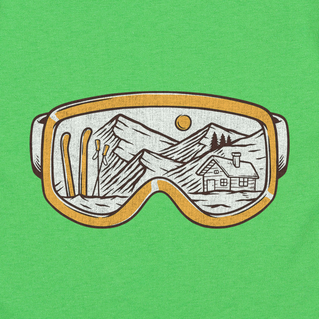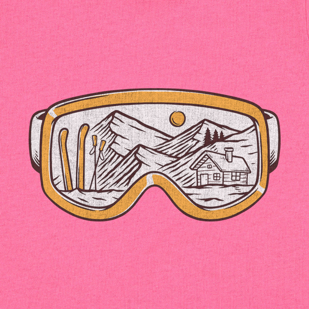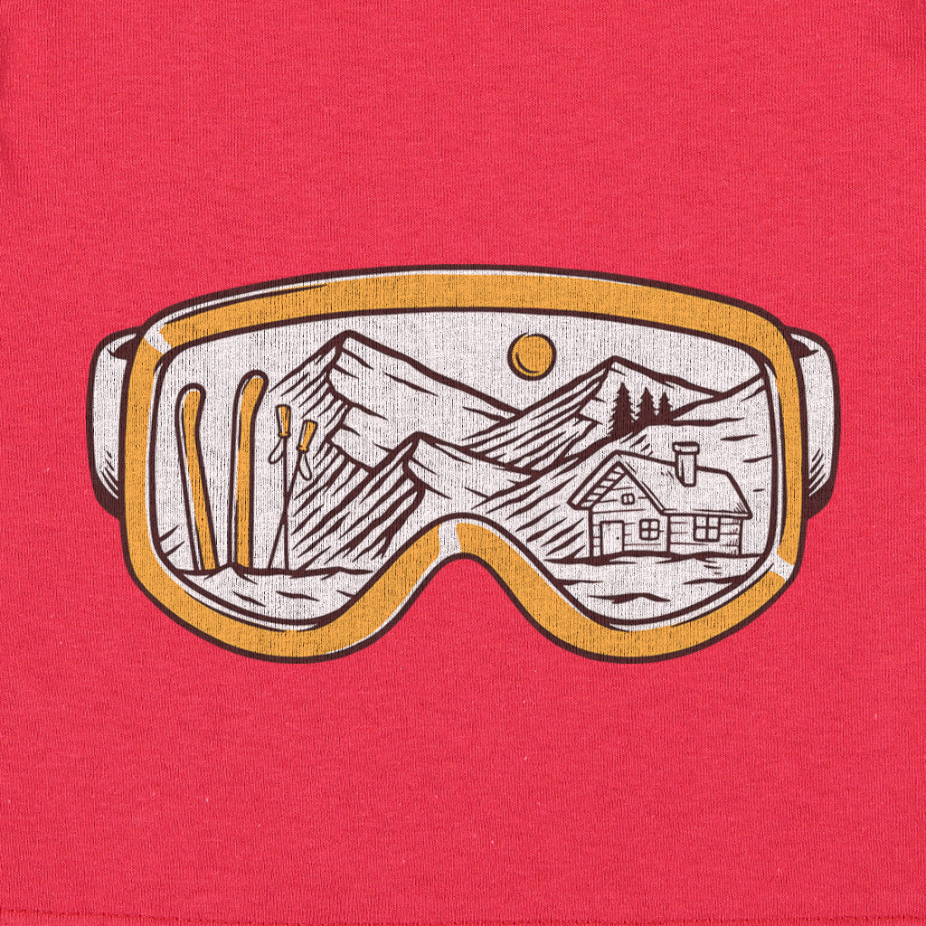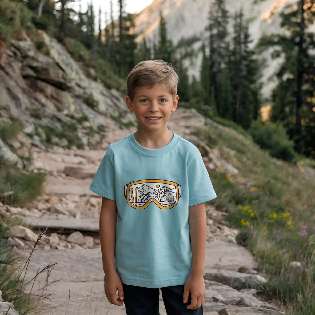 The Snowy Escape Kids Toddler Tee T-Shirt features a cool design of Snow Vision Goggles, perfect for winter adventures. Made from high-quality fabric, it ensures comfort while skiing. This tee is a must-have for kids who love snow goggles and skiing goggles.