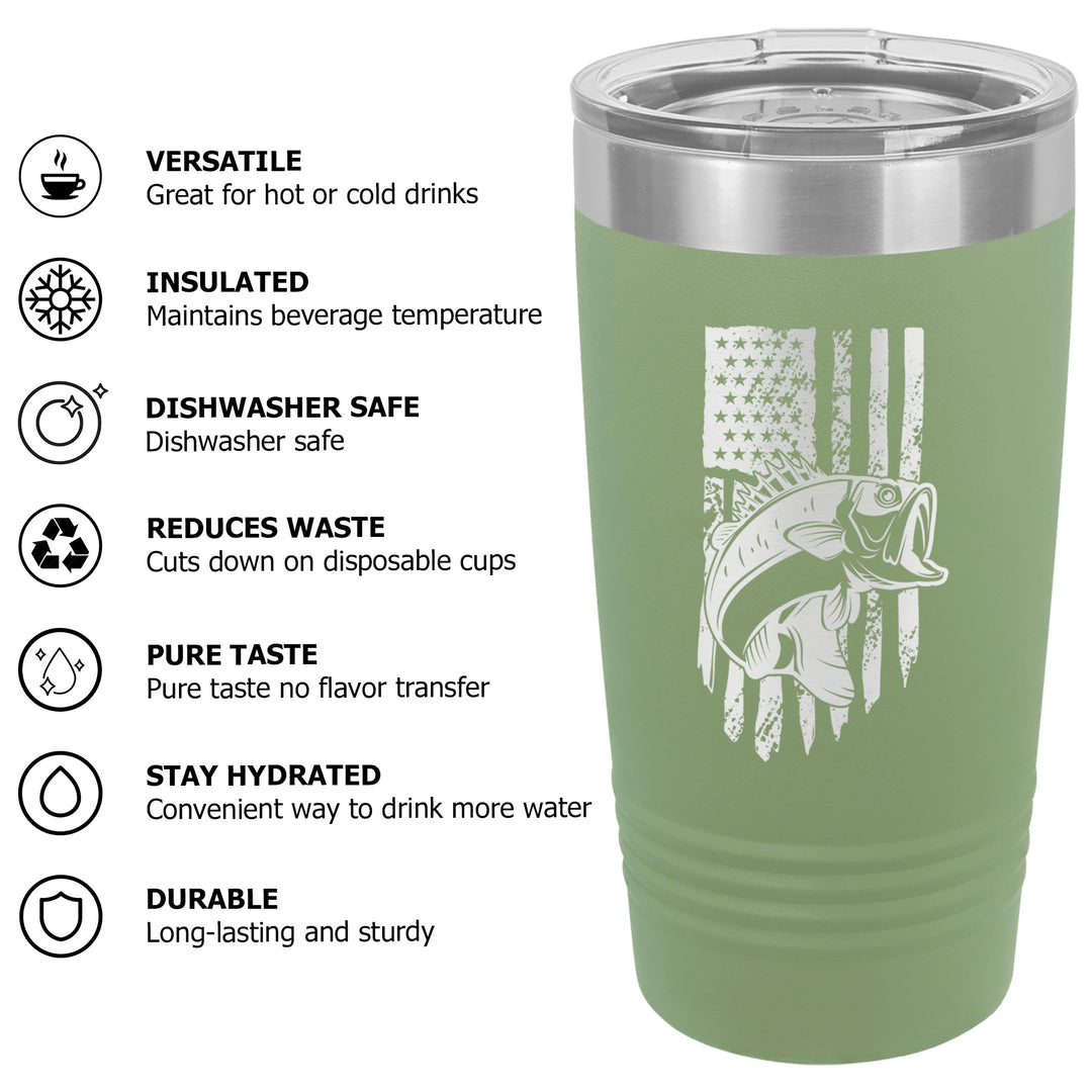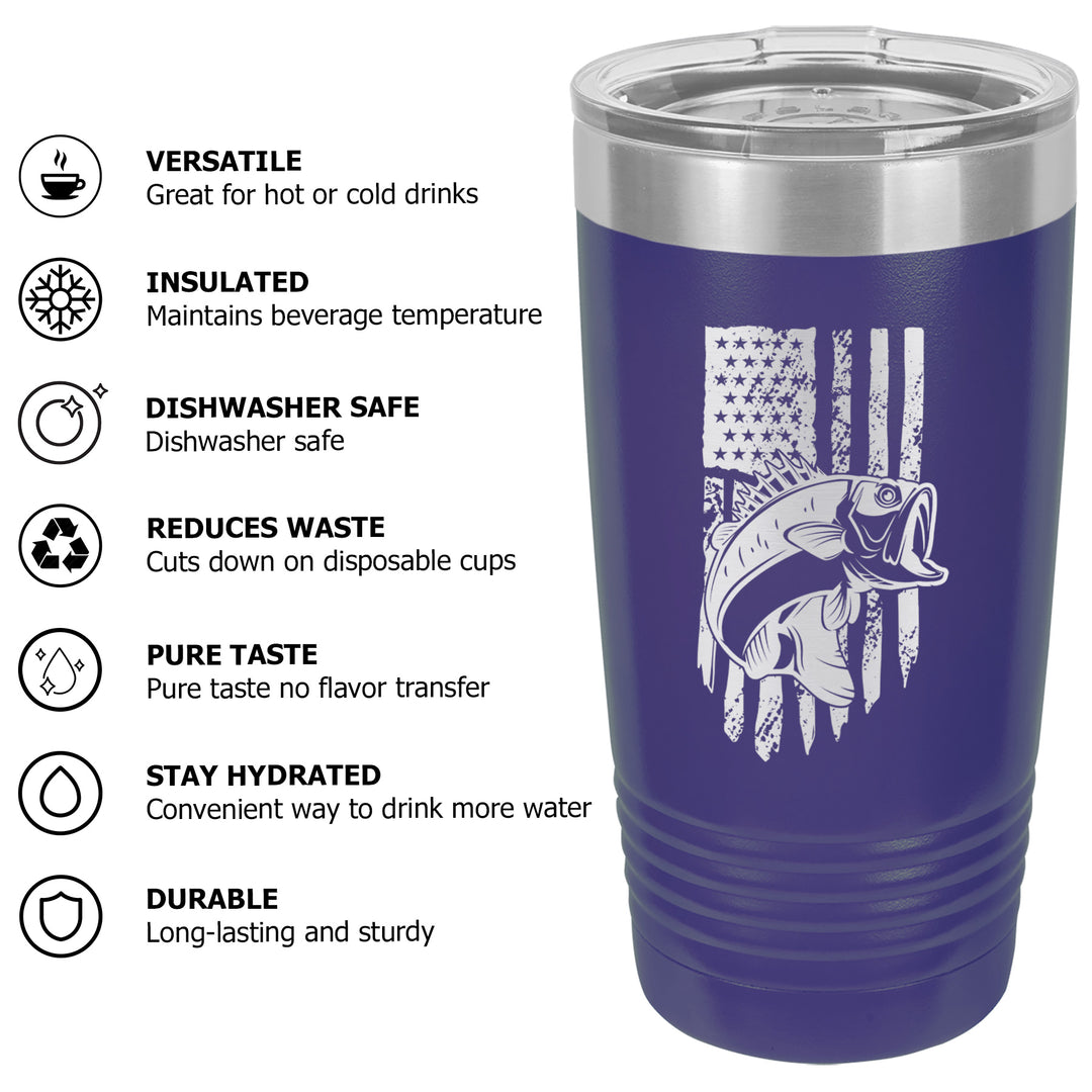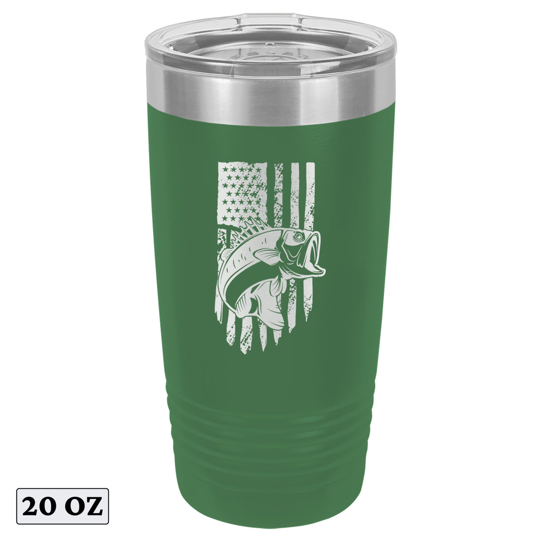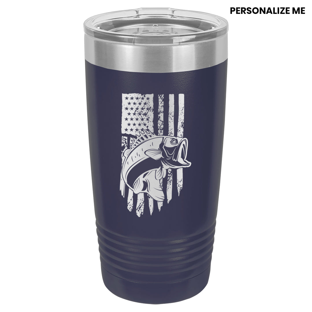 Bass Fishing American Flag Tumbler Cup Mug