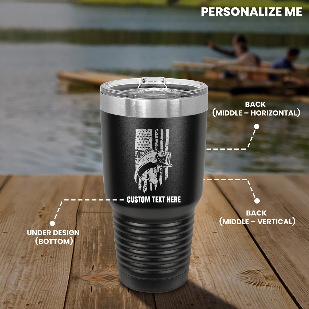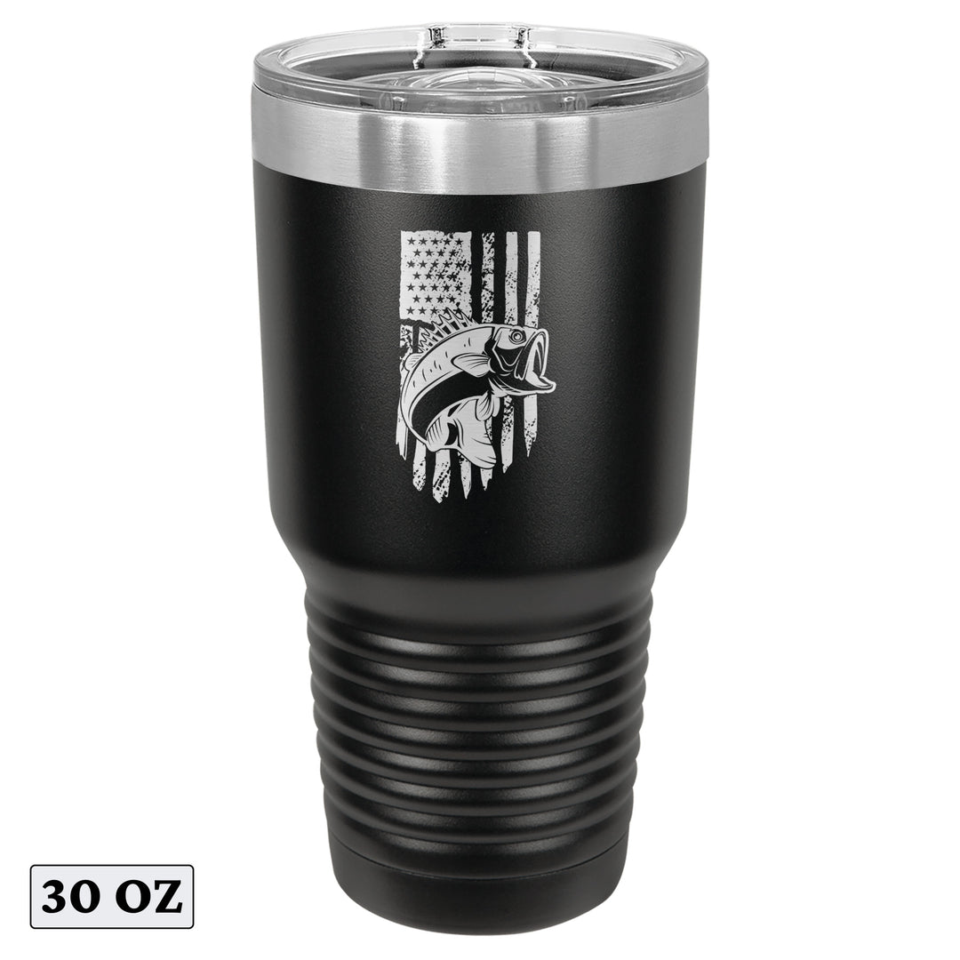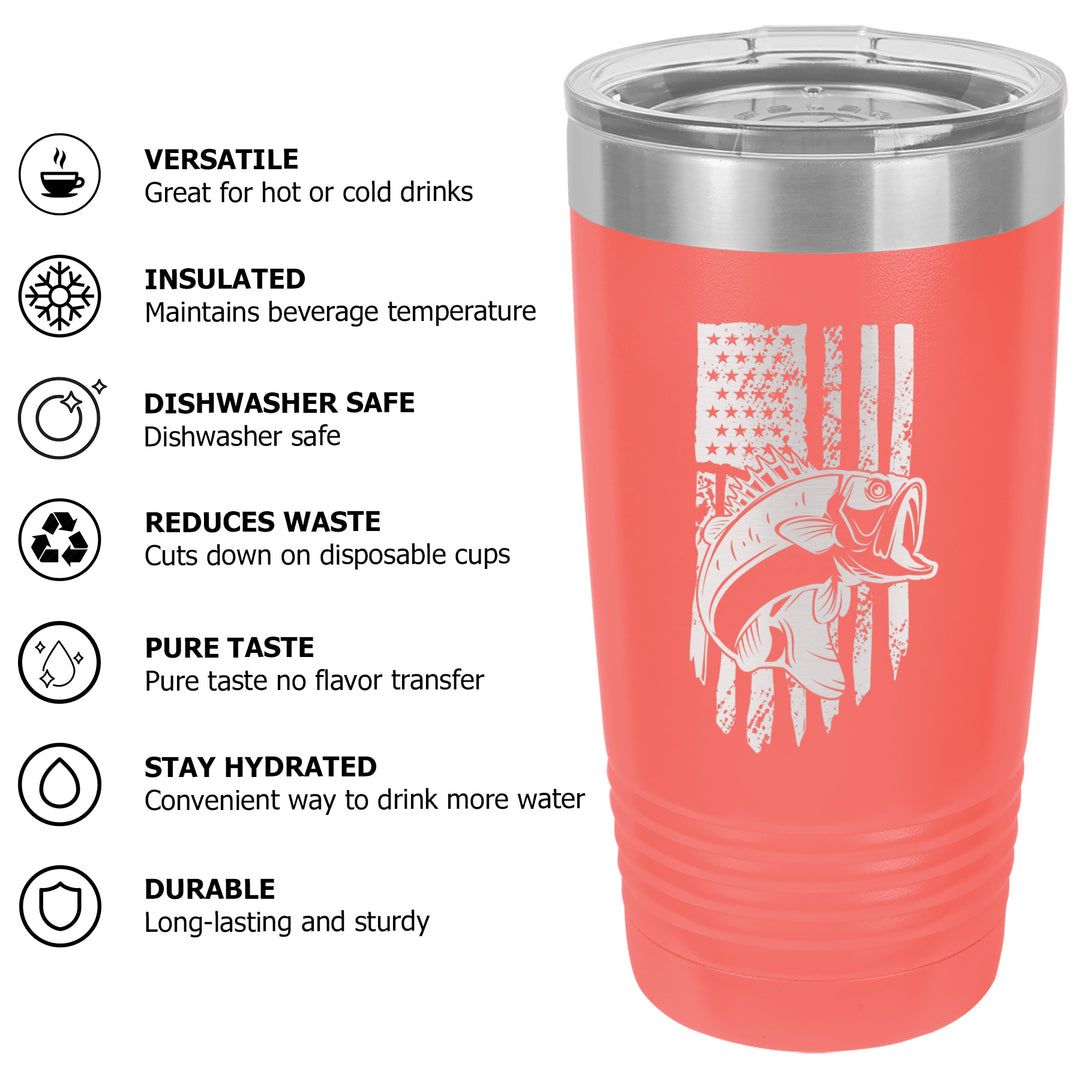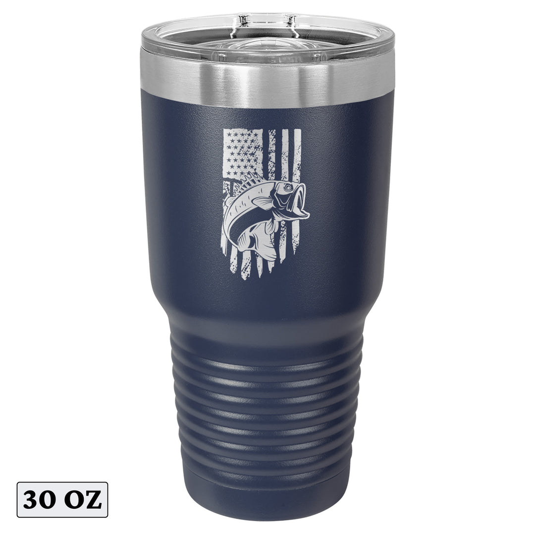 Bass Fishing American Flag Tumbler Cup Mug