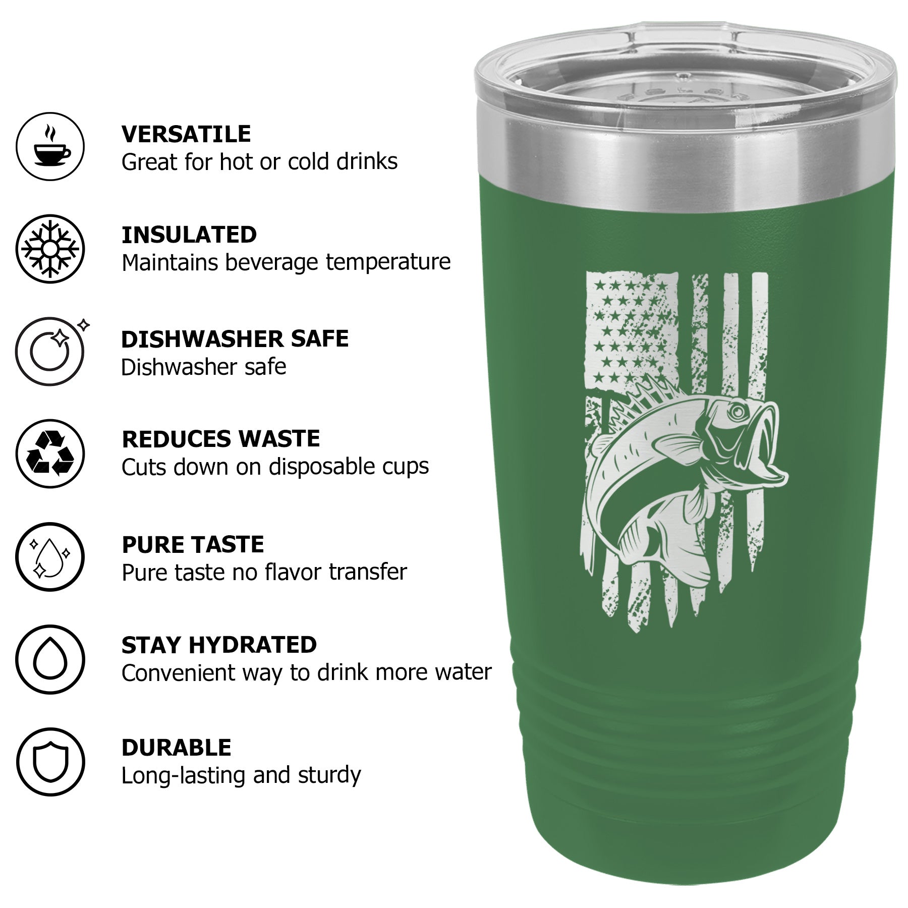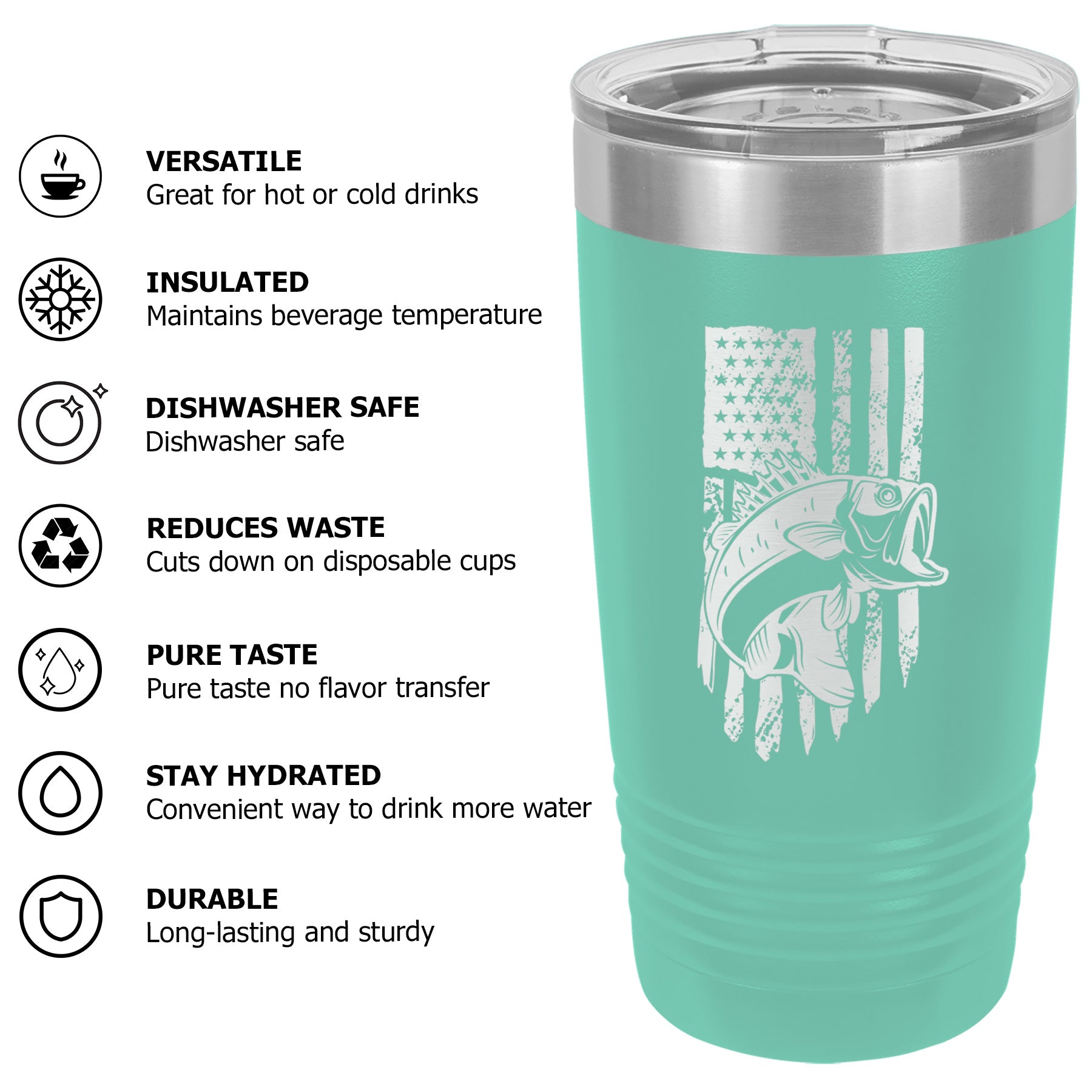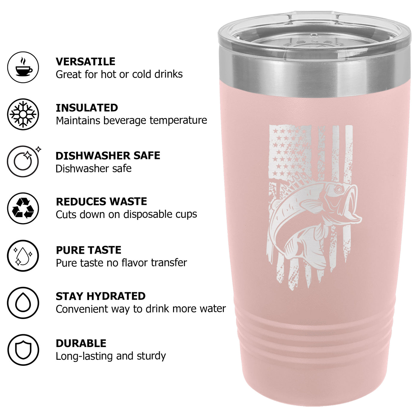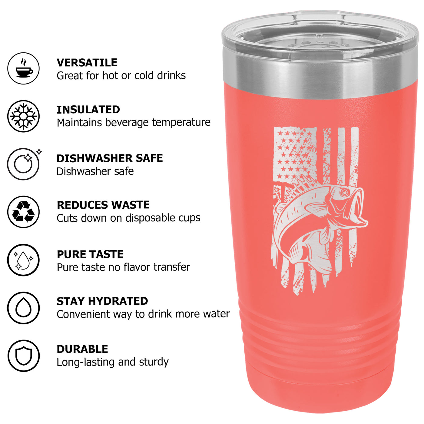 Bass Fishing American Flag Tumbler Cup Mug