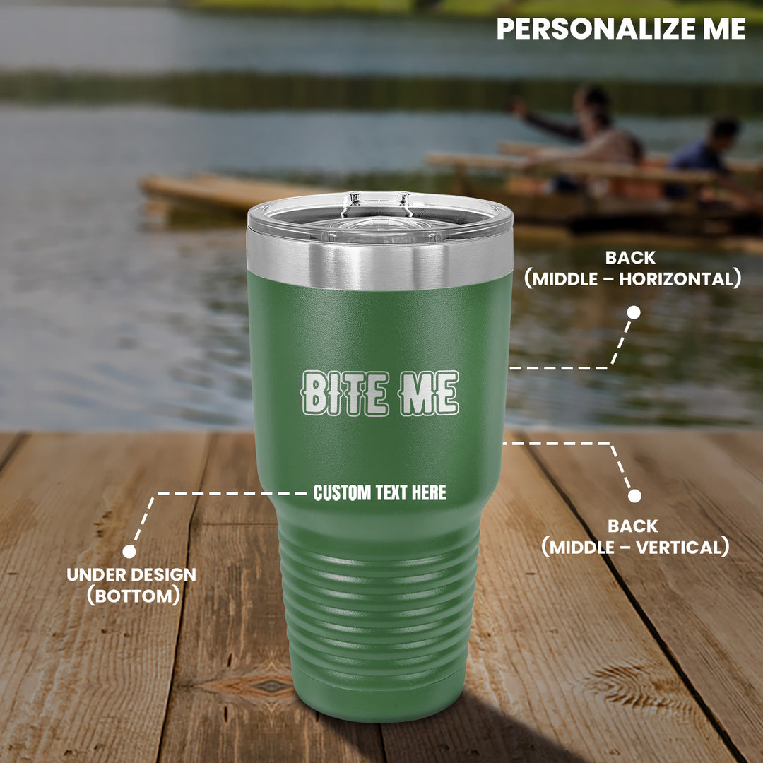 The Bite me, fishing fun begins Tumbler Cup Mug is a bold fishing adventure essential for those who love fishing on open waters. With a playful design, this mug captures the fun fishing challenge perfectly. Get yours today and start your fishing journey!