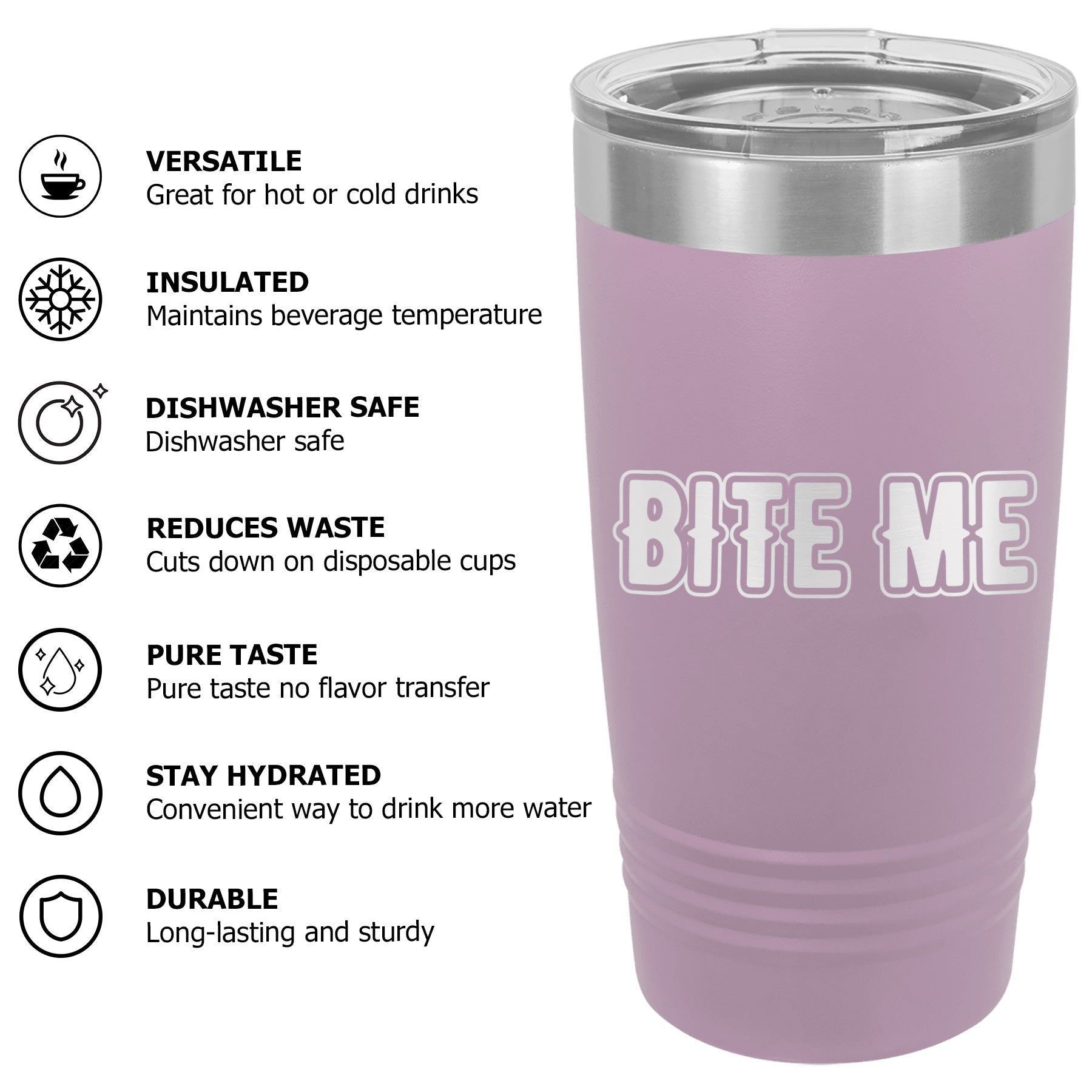 Available Sizes: 20 oz, 30 oz Designed to fit standard car cup holders for easy travel.