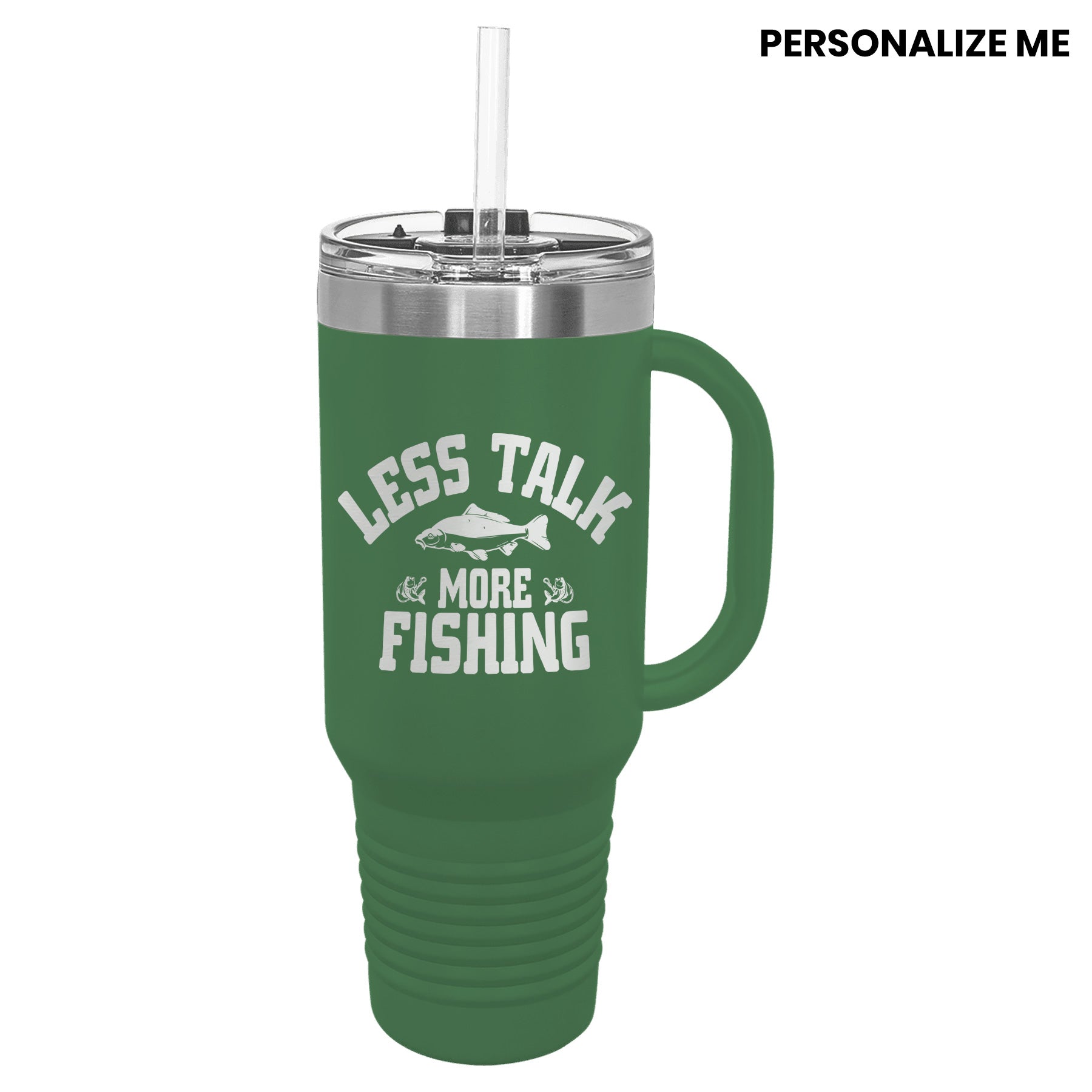 The Less talk, more fishing action Tumbler with Handle is perfect for peaceful fishing days on the lake. Let your love for fishing speak for you with this stylish and practical tumbler. Stay focused on fishing time with this must-have accessory.