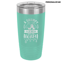 Cute Grumpy Old Bear With Honey Bee Tumbler Cup Mug