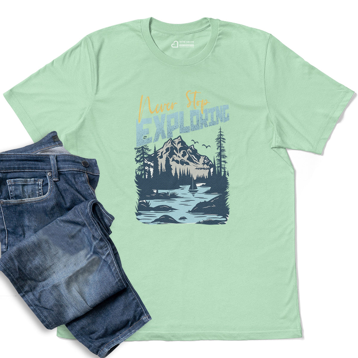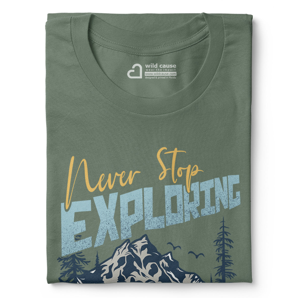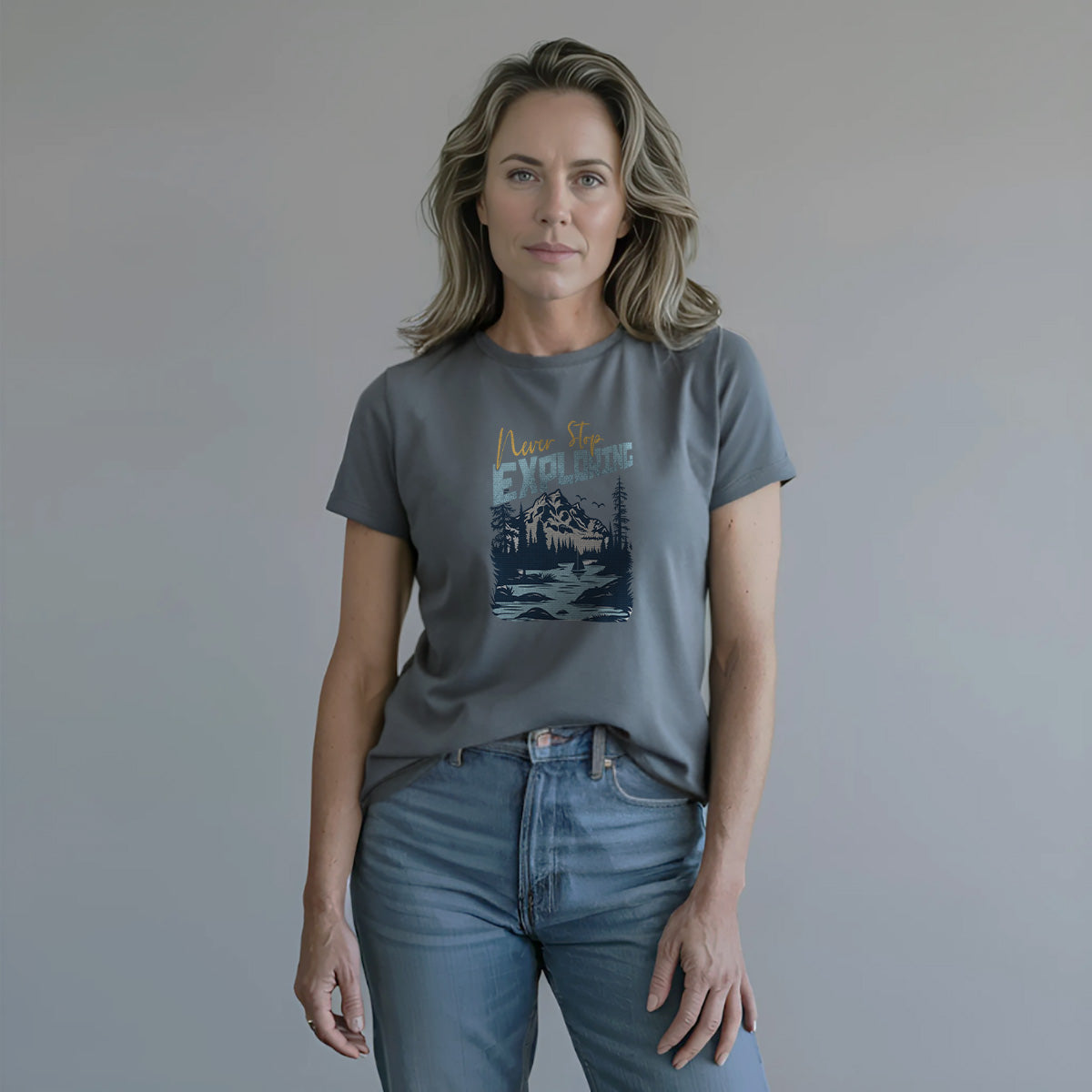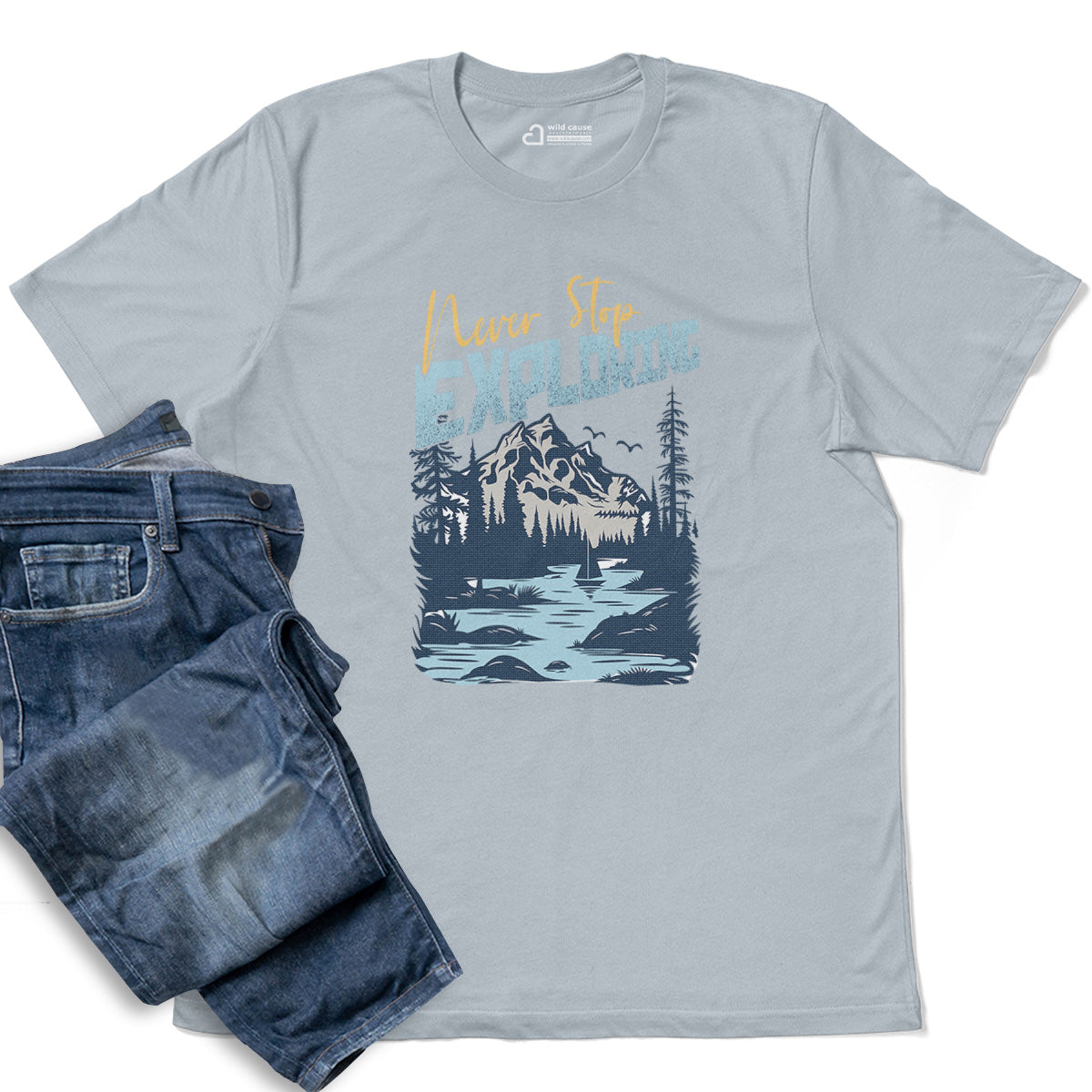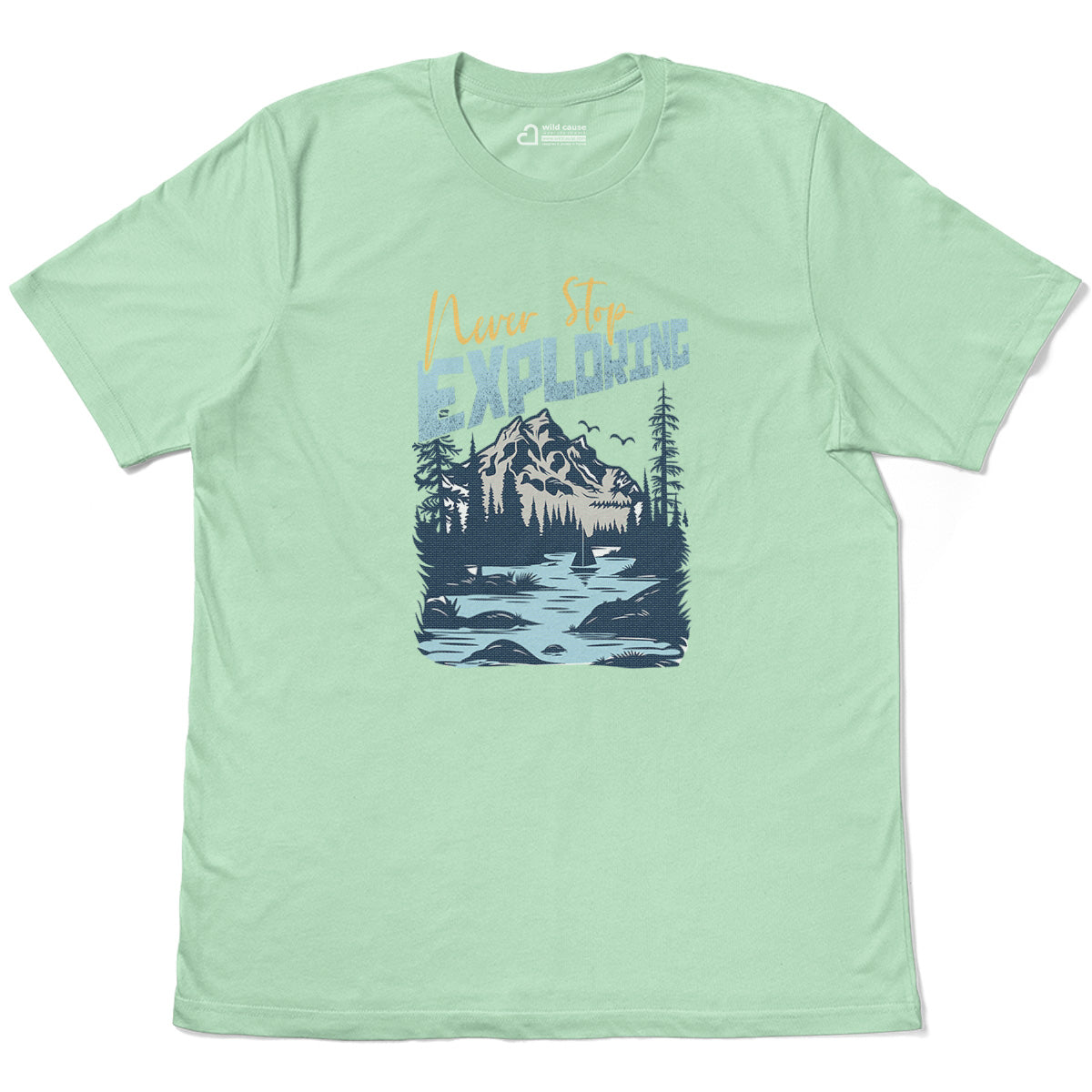 Never Stop Exploring Scenic Outdoor Adventure Vibes Adult Cotton Tee T-Shirt