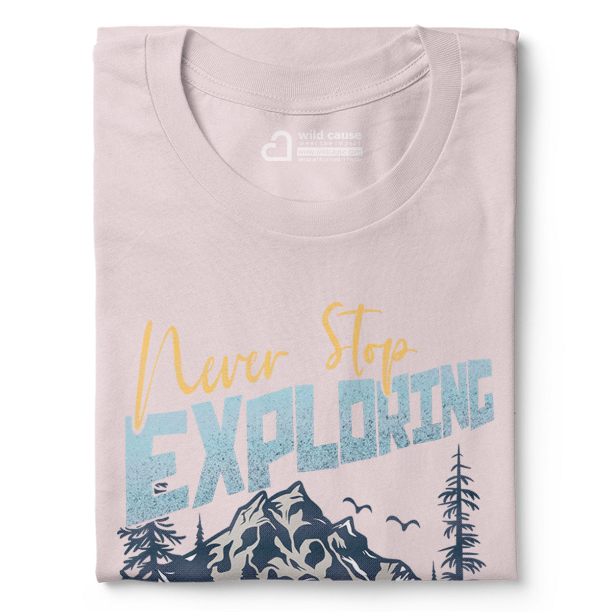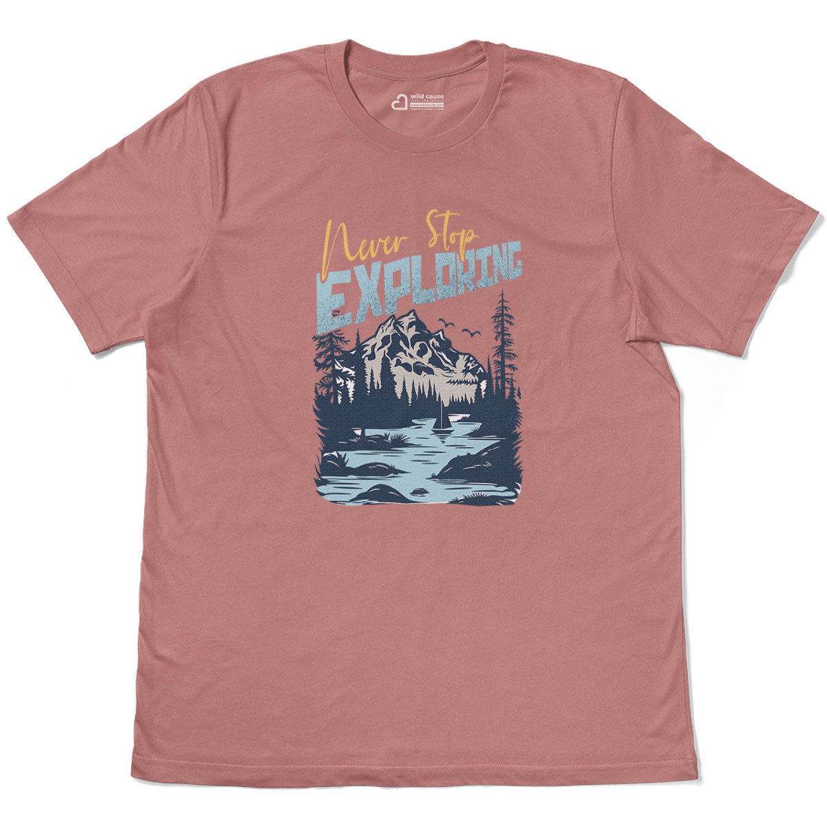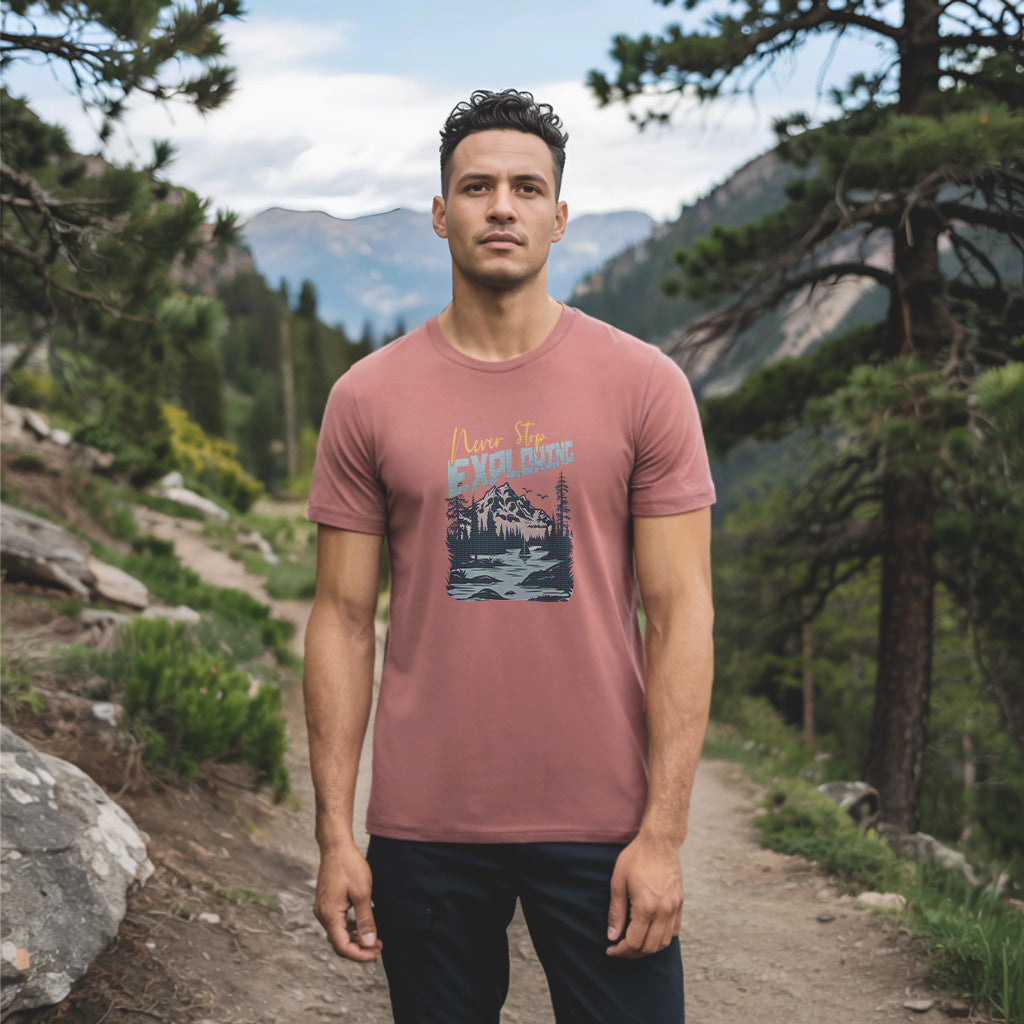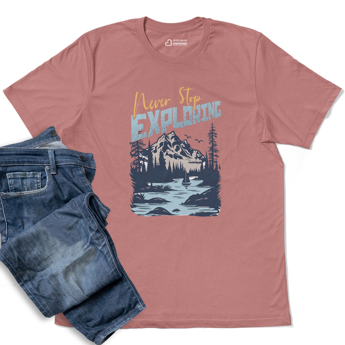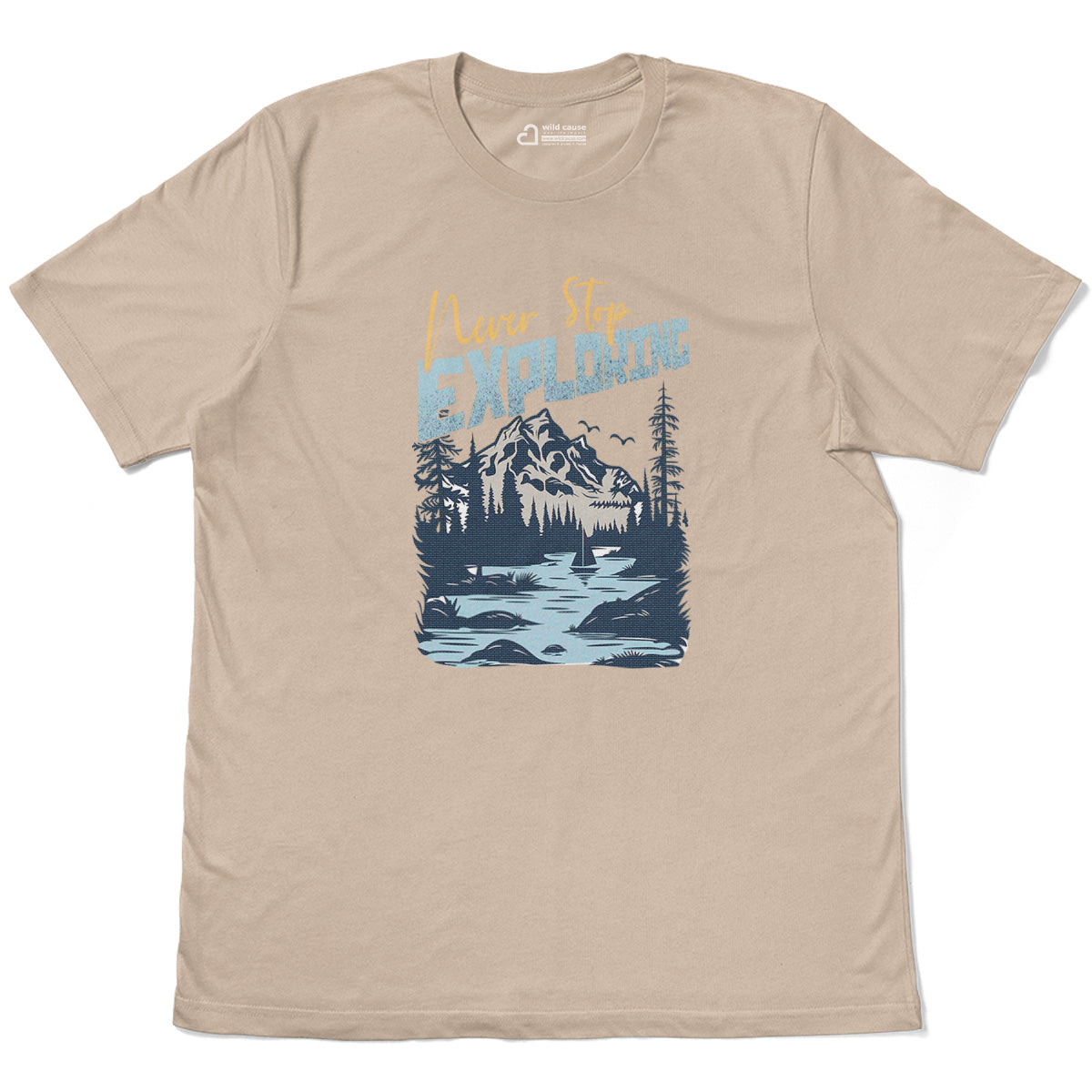 Never Stop Exploring Scenic Outdoor Adventure Vibes Adult Cotton Tee T-Shirt
