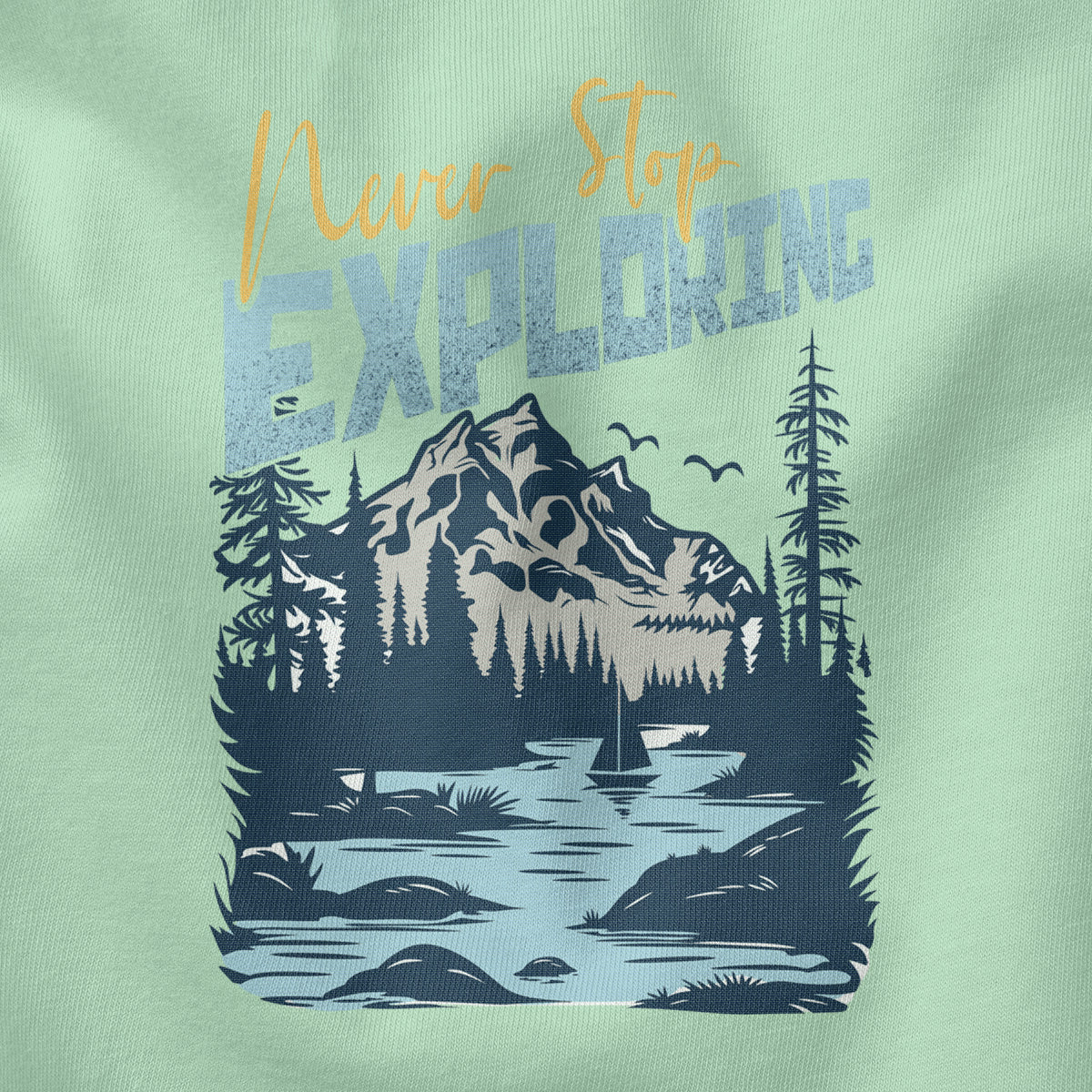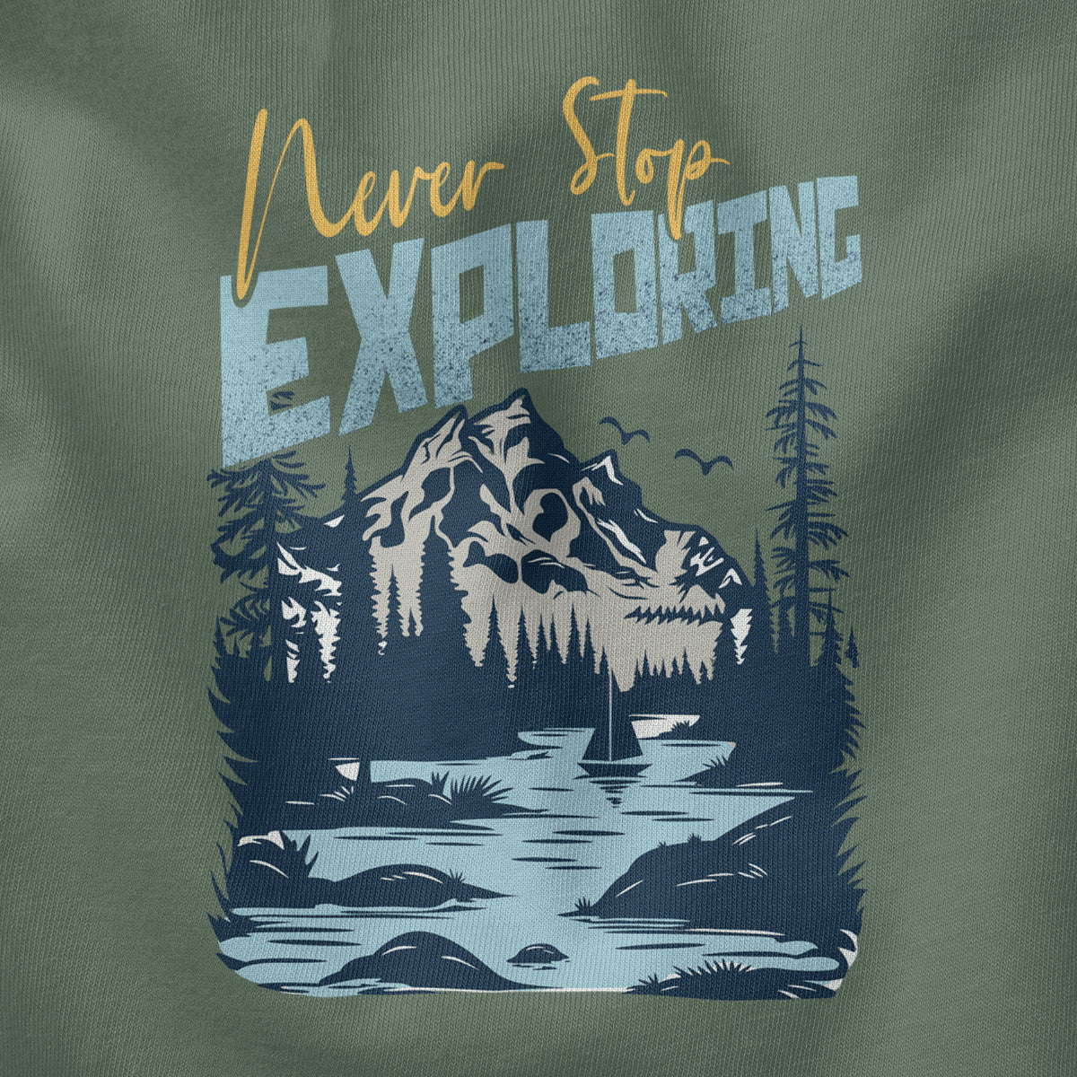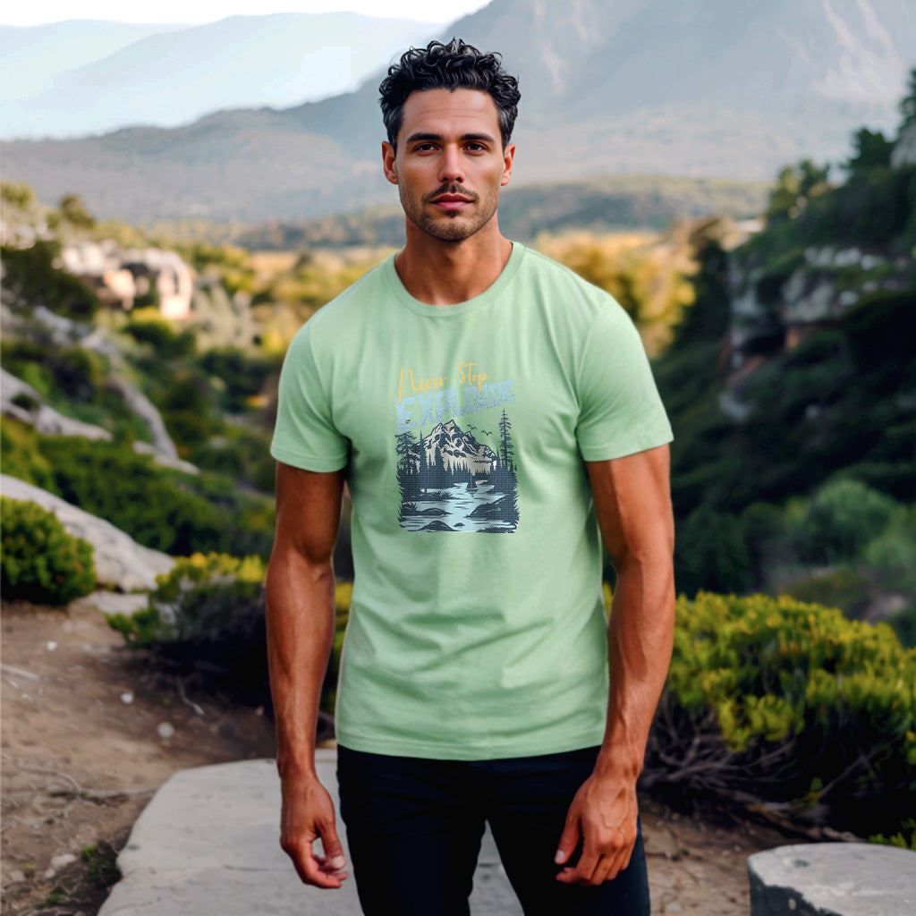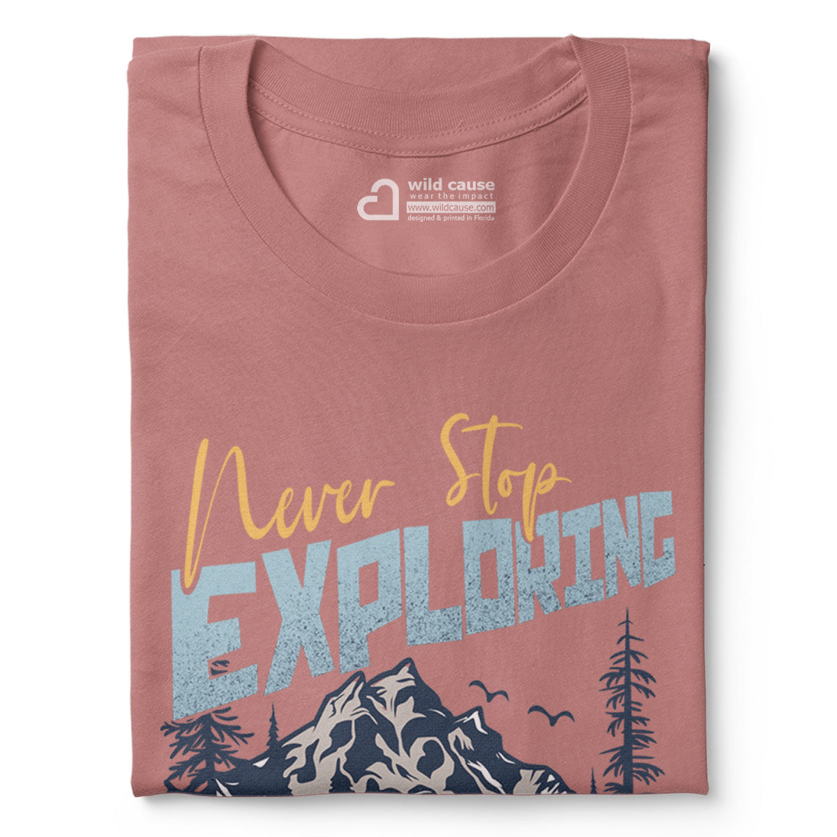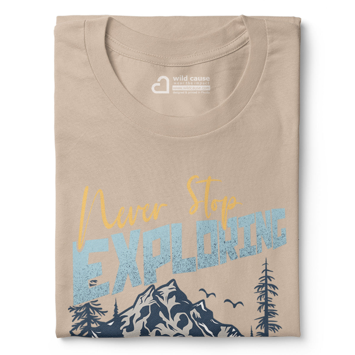 Never Stop Exploring Scenic Outdoor Adventure Vibes Adult Cotton Tee T-Shirt