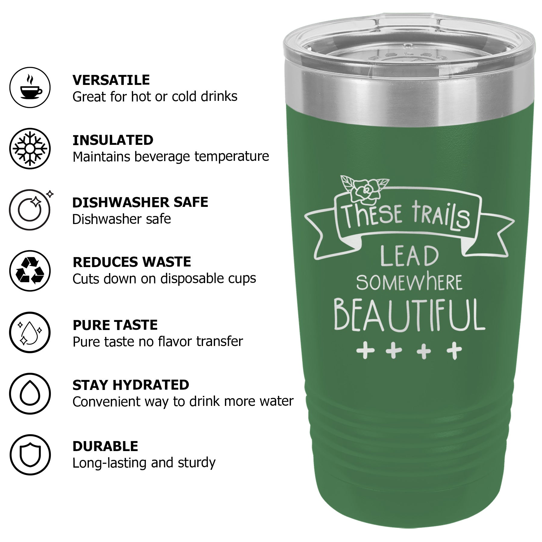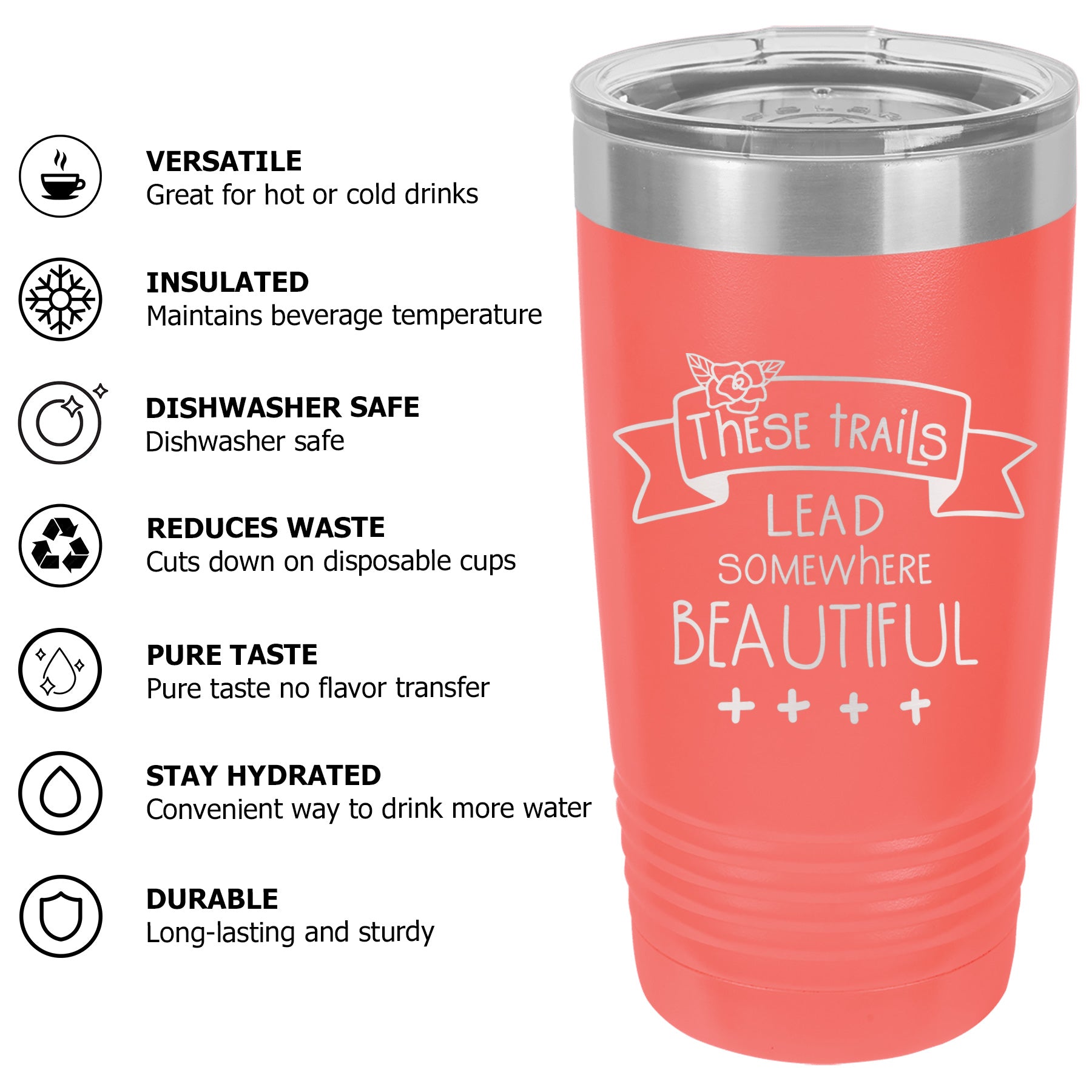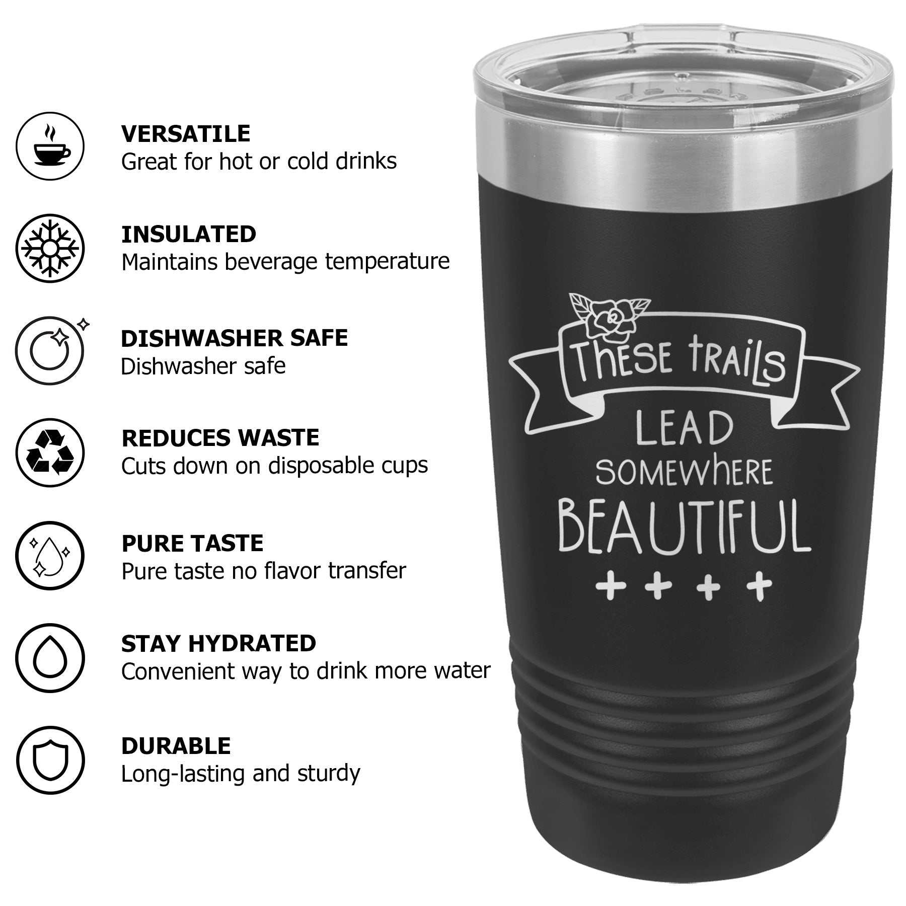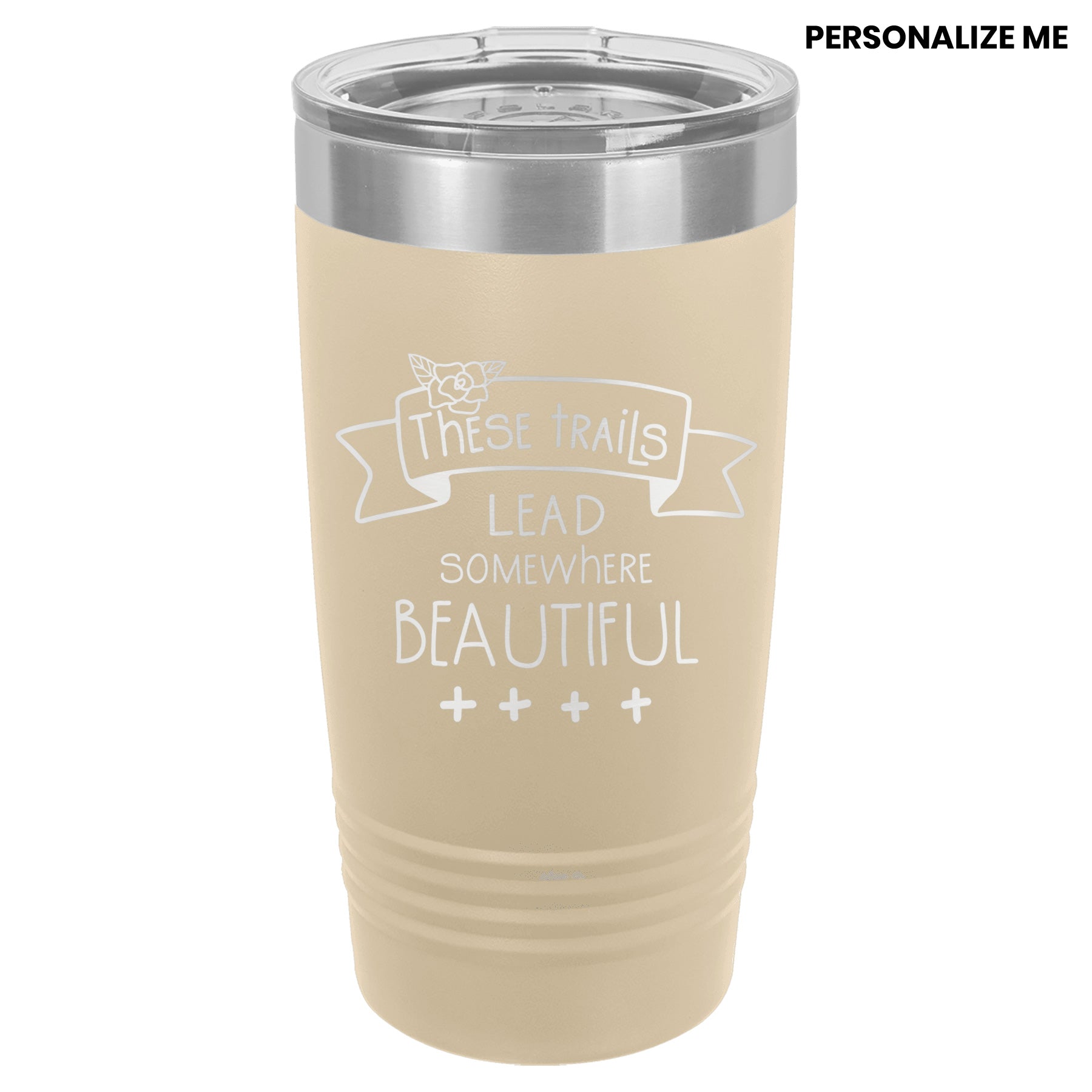 The Trails lead to beautiful adventures Tumbler Cup Mug is perfect for explorers seeking scenic trails to explore. Enjoy hiking trails to stunning views and scenic destinations. Adventure awaits on beautiful trails with this unique mug.