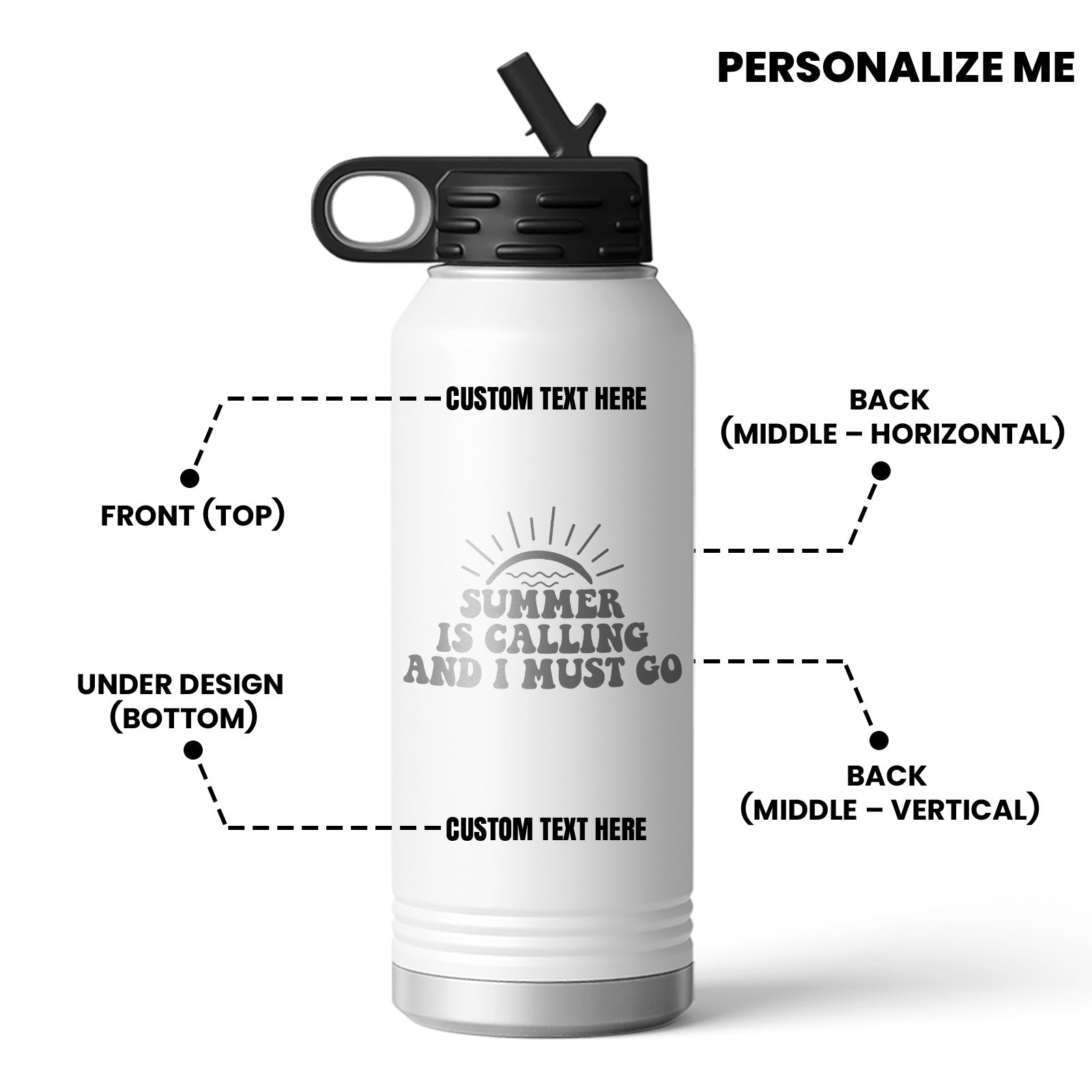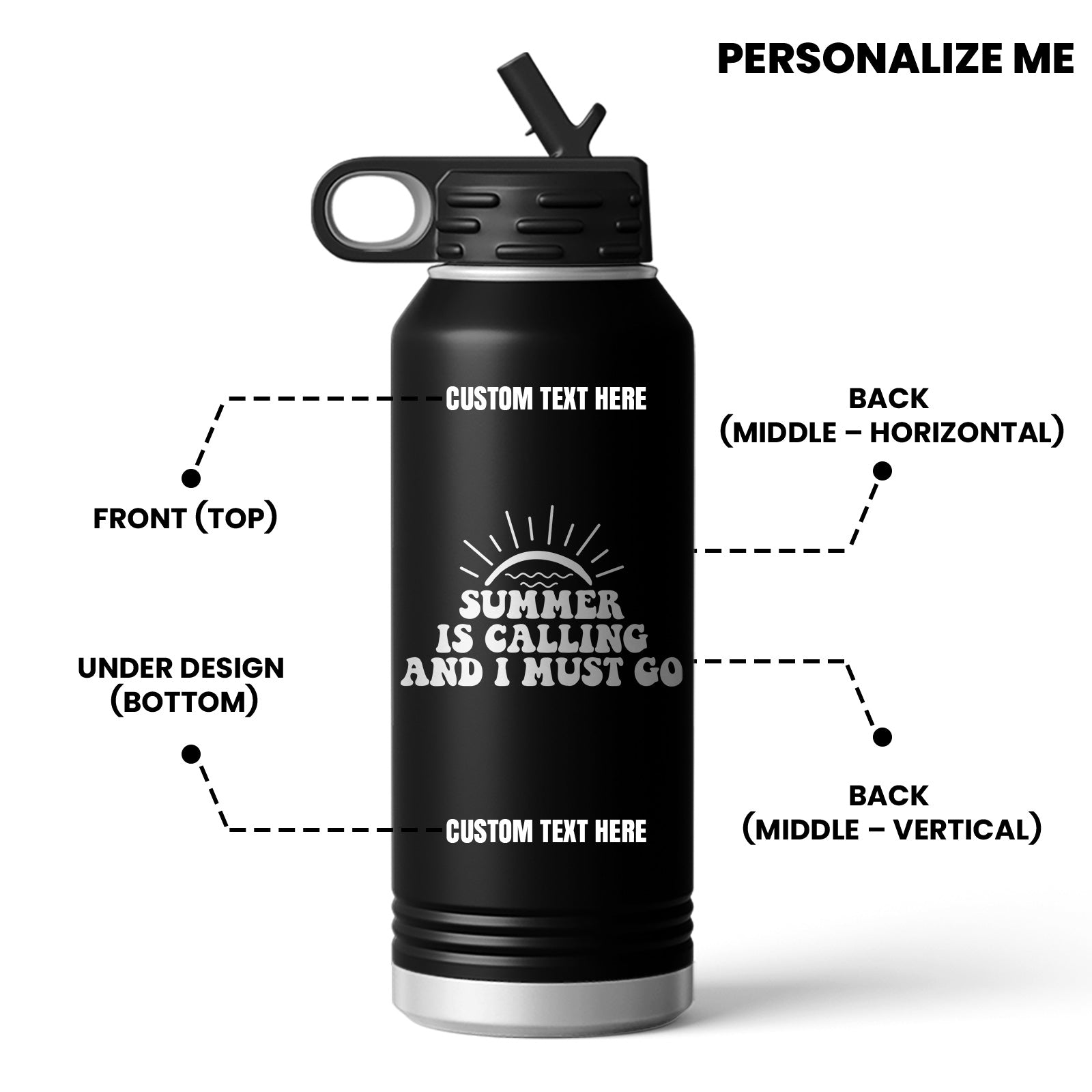 The Summer calls, beach adventures await water bottle is essential for summer adventure fun. With its durable design and vibrant print, it's perfect for exploring summer fun. Take it on summer vacation time and off to the best summer spots. Enjoy summer days under sun with this stylish water bottle.
