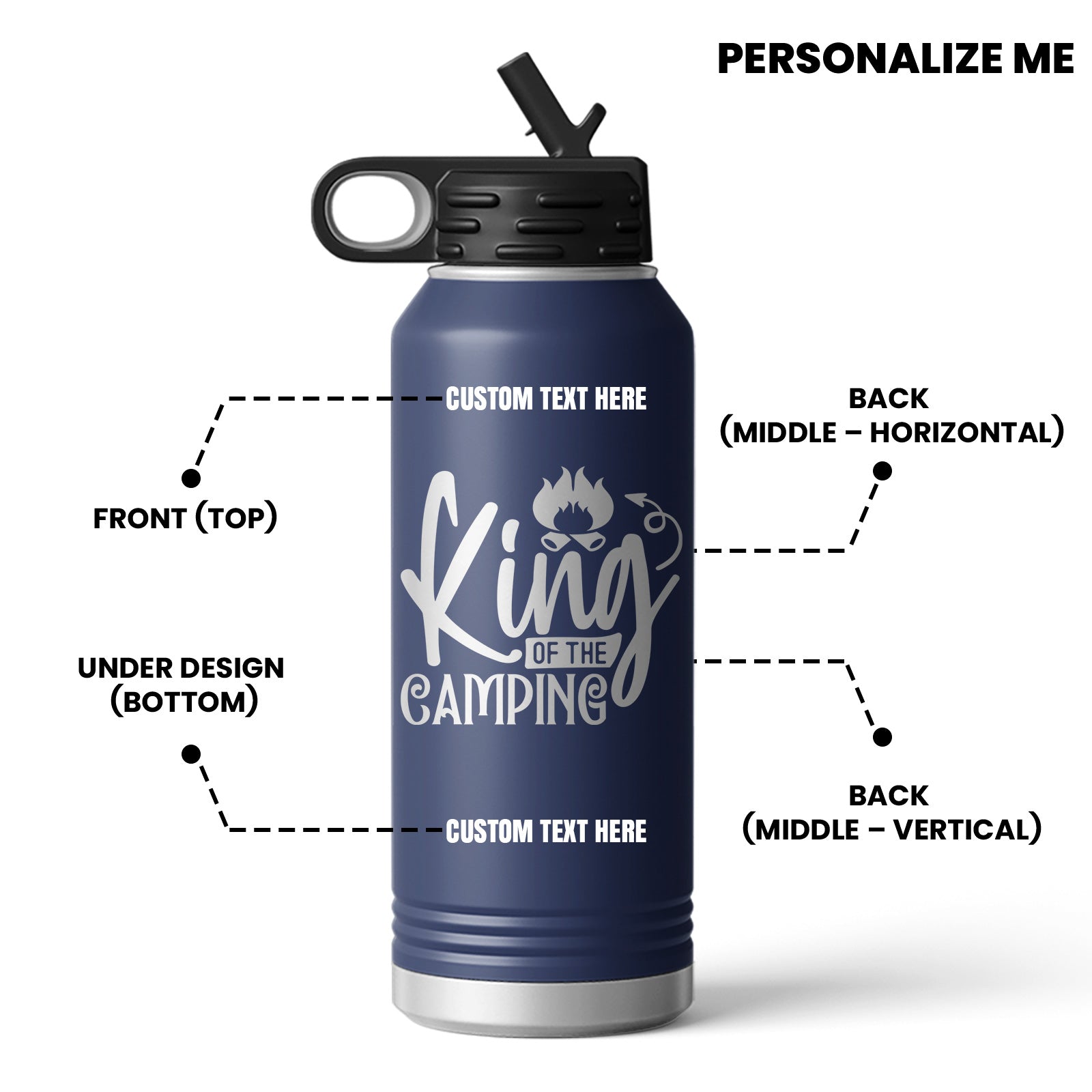 Rule the trail with camping spirit water bottle, dominating camping adventures with campground king vibes. Mastering the campgrounds in summer campground escapes, experience campground royalty moments with this durable, stylish water bottle.