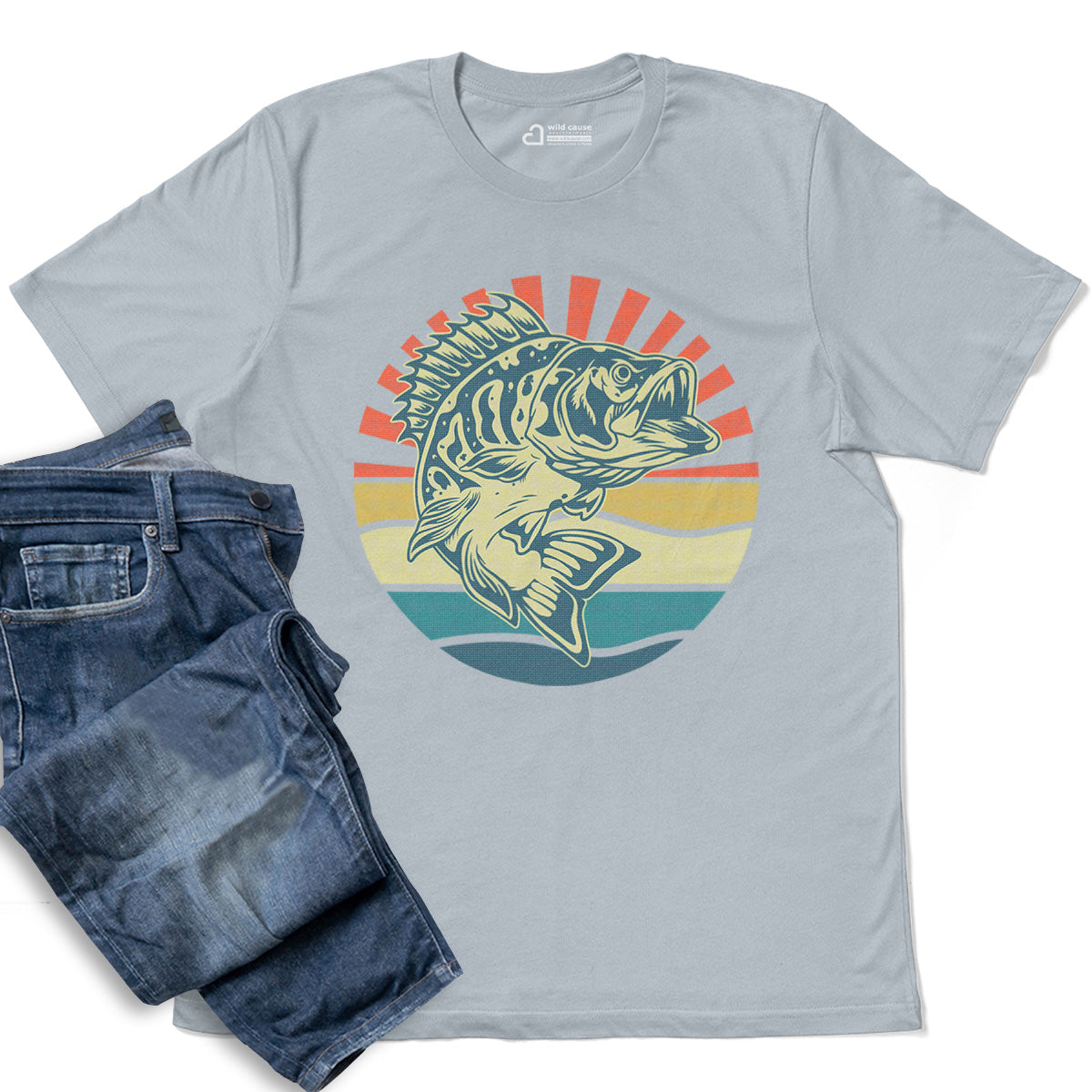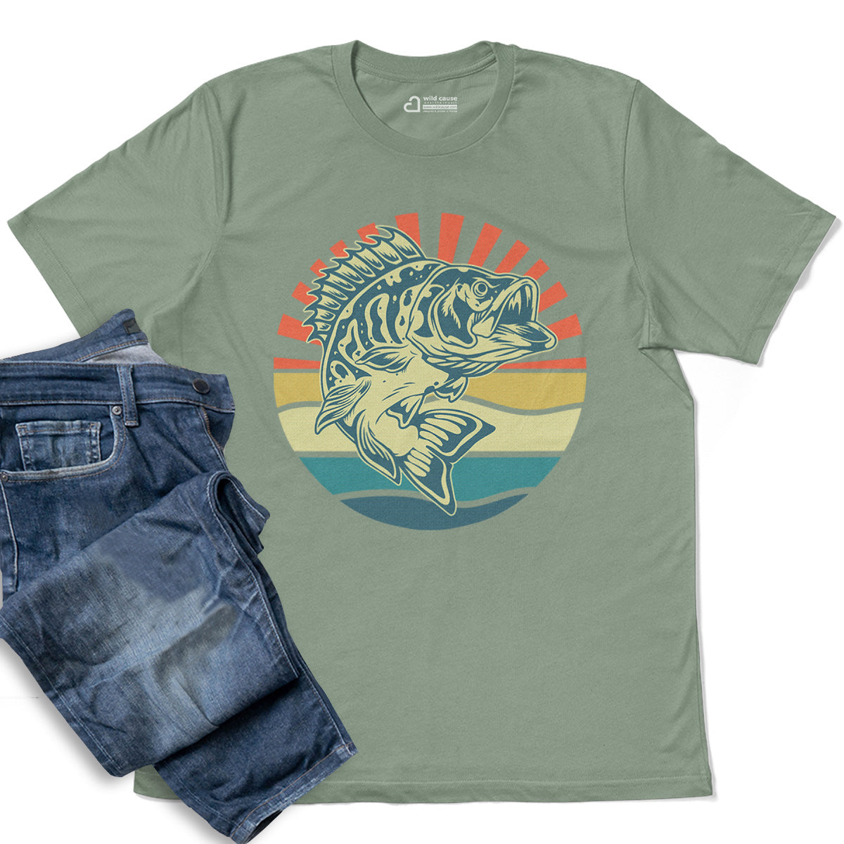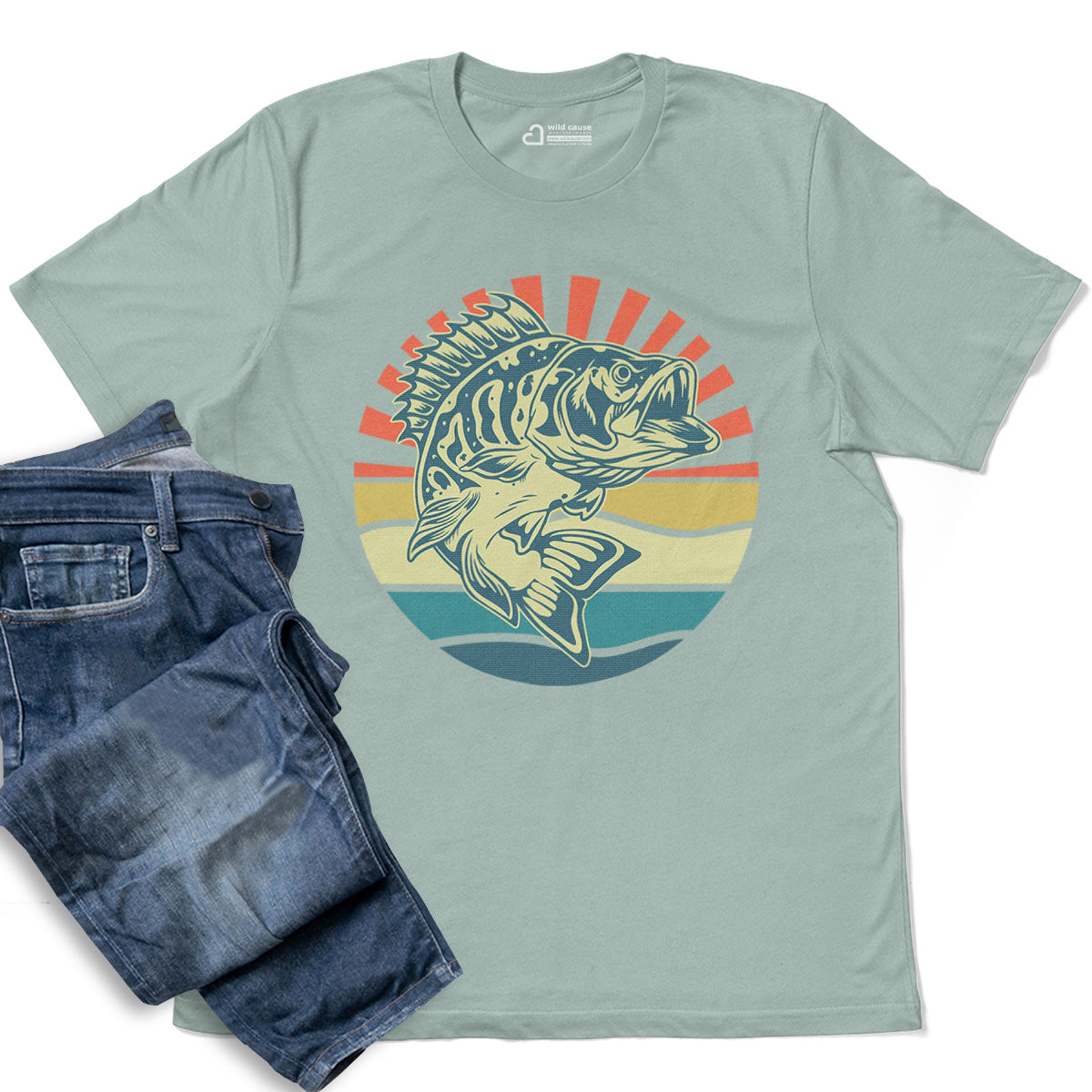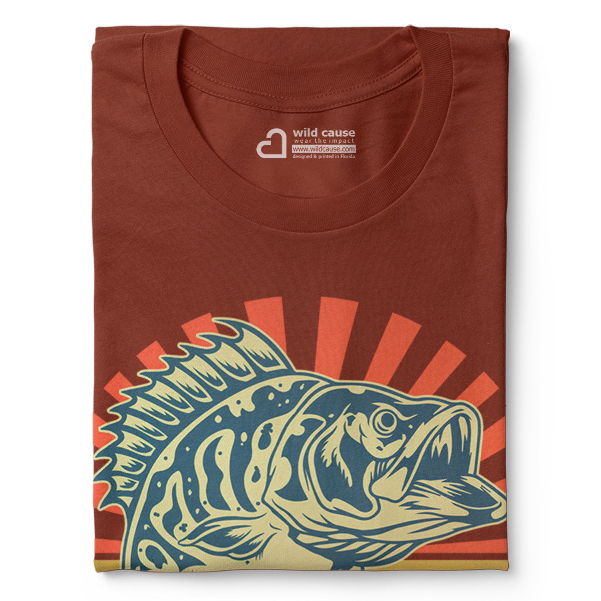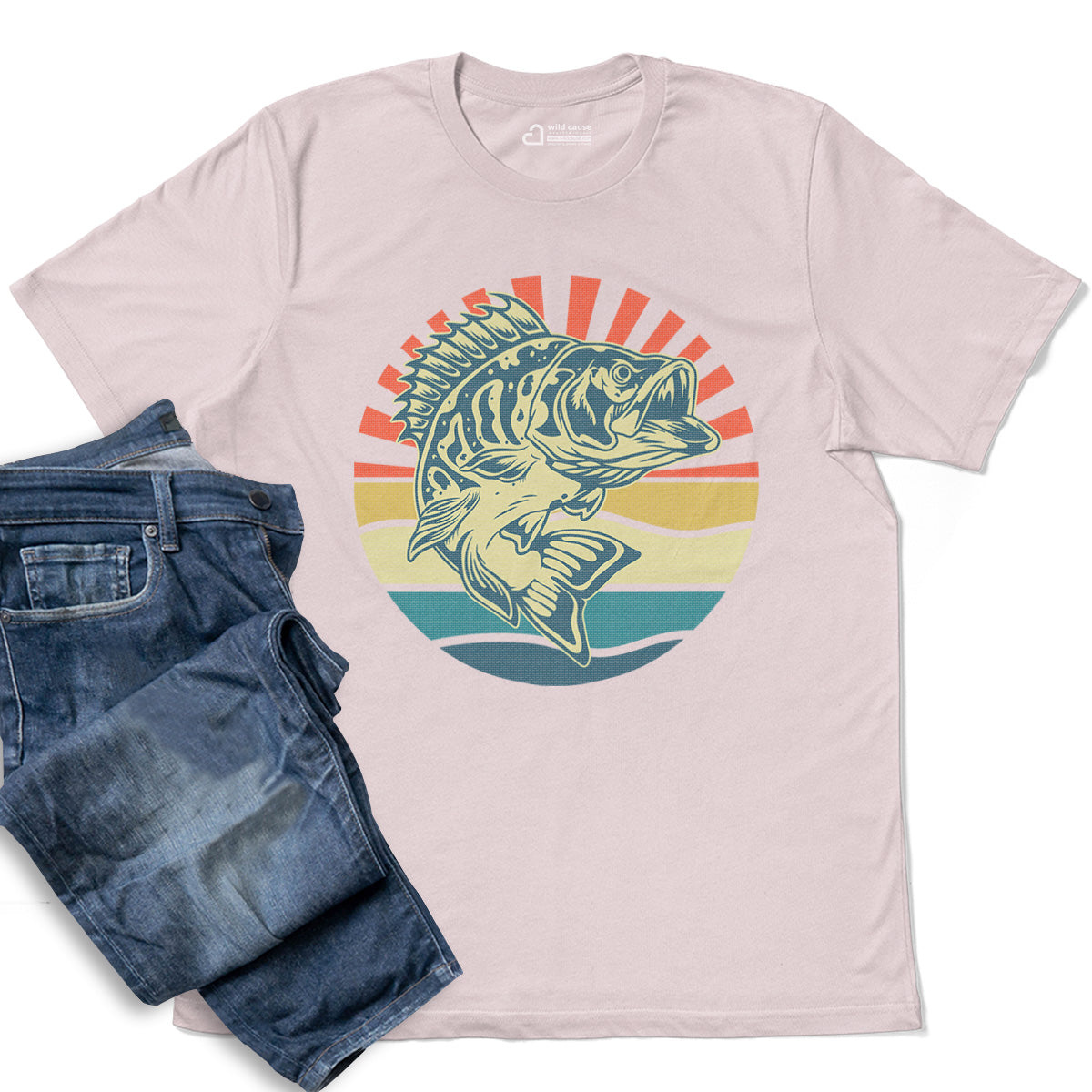 Bass Fish Jumping At Sunset Lake Adult Cotton Tee T-Shirt