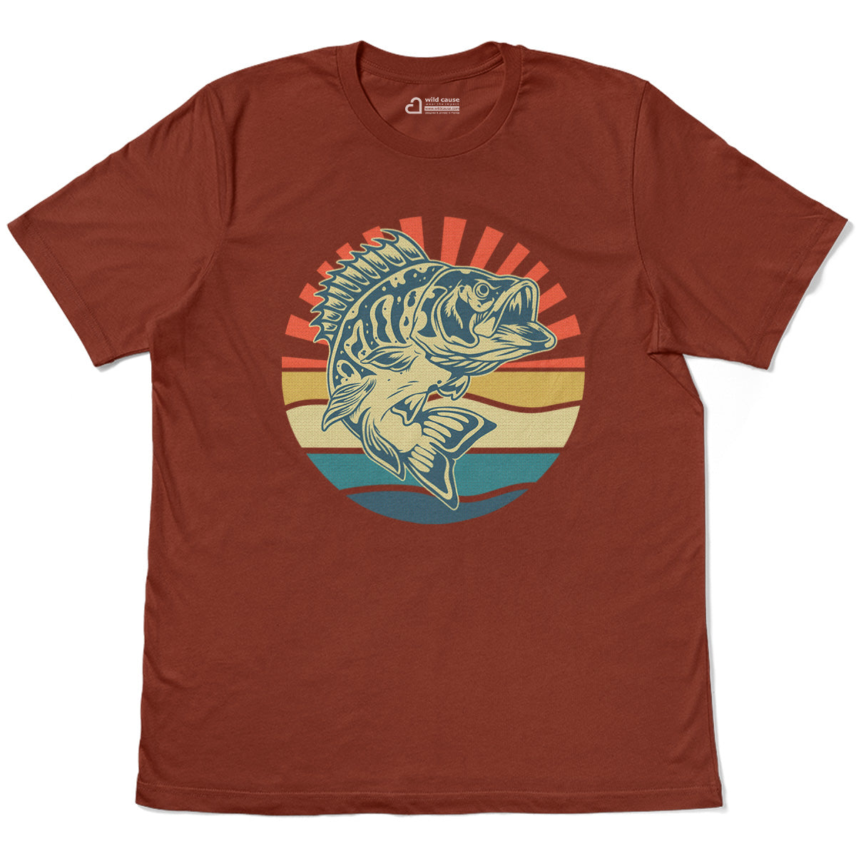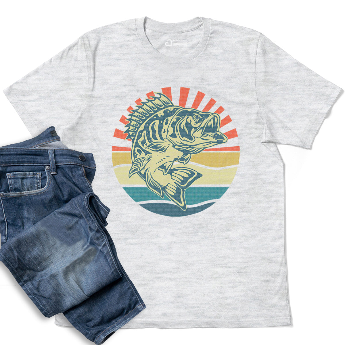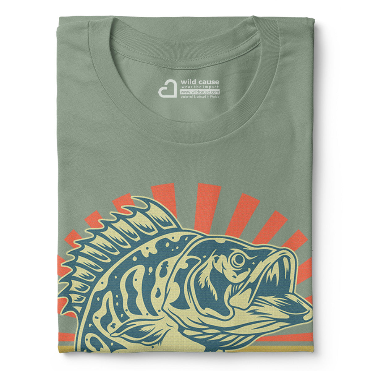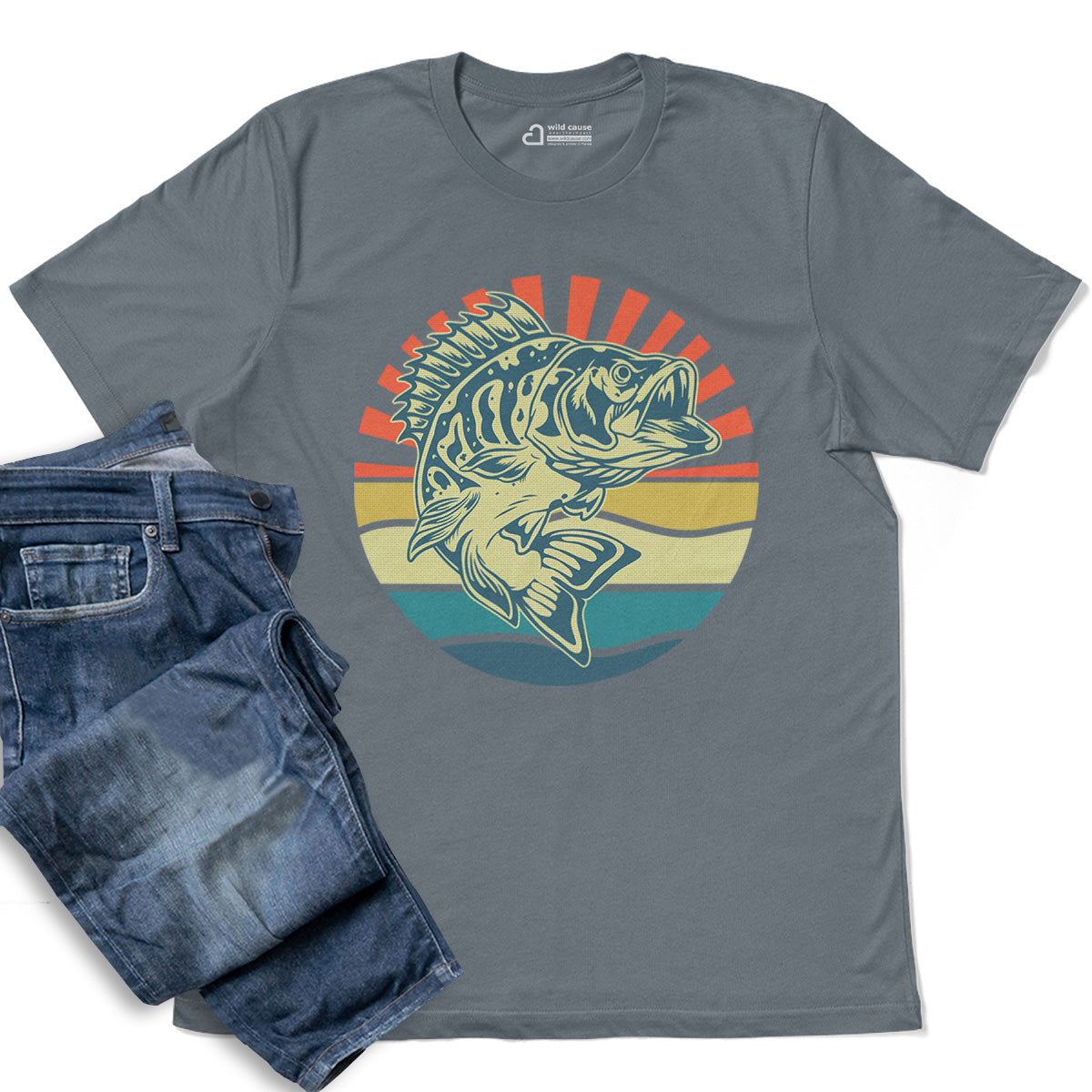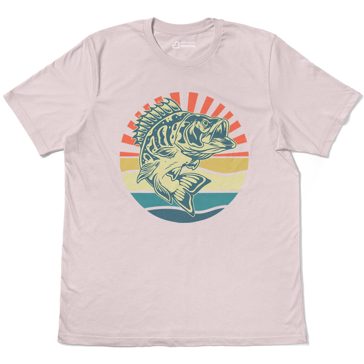 Bass Fish Jumping At Sunset Lake Adult Cotton Tee T-Shirt