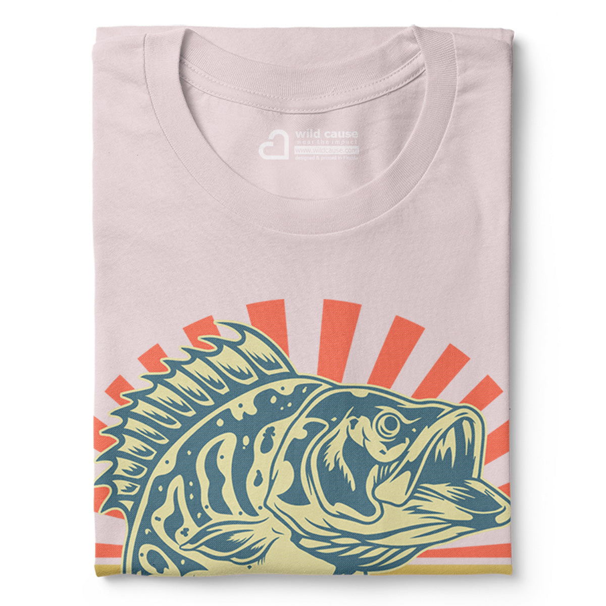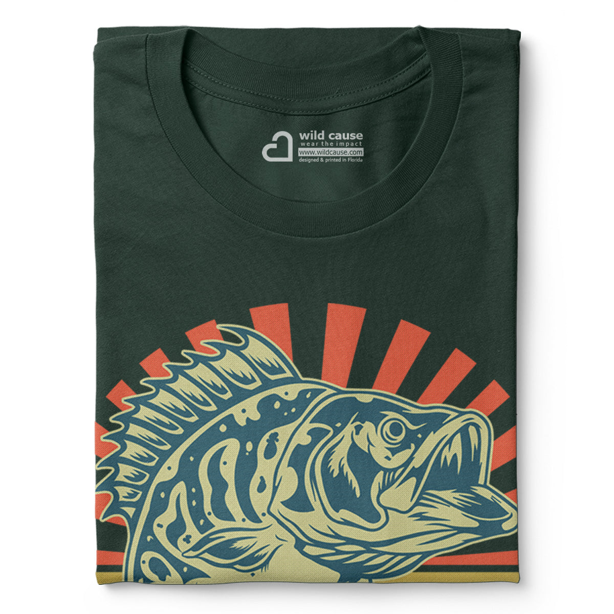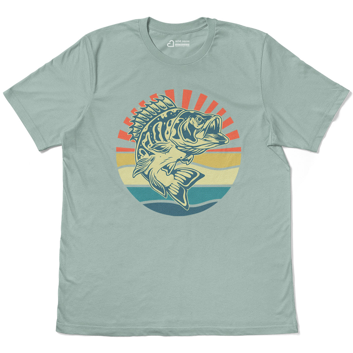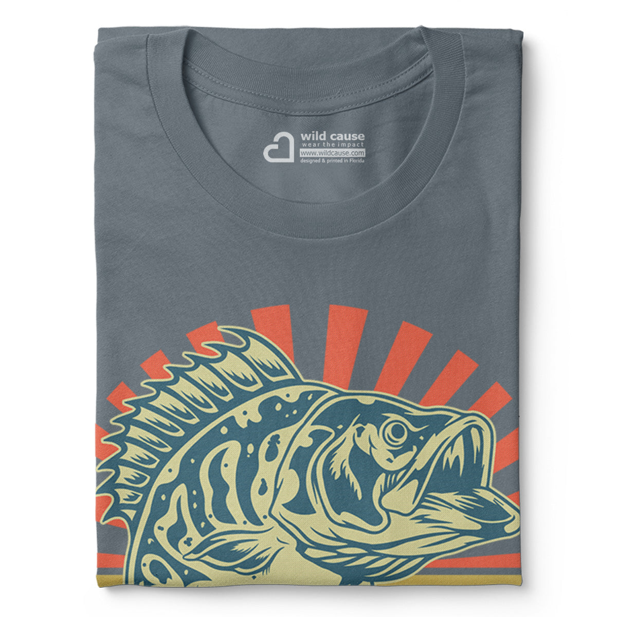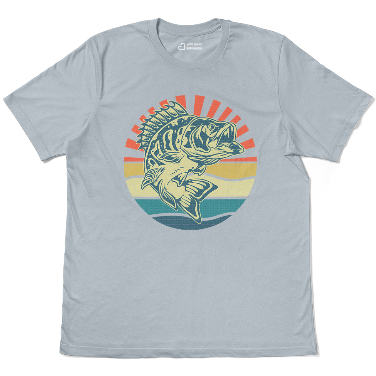 Bass Fish Jumping At Sunset Lake Adult Cotton Tee T-Shirt