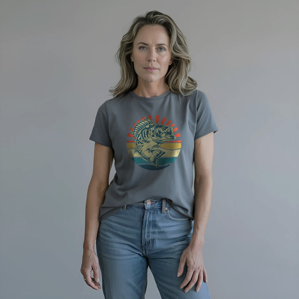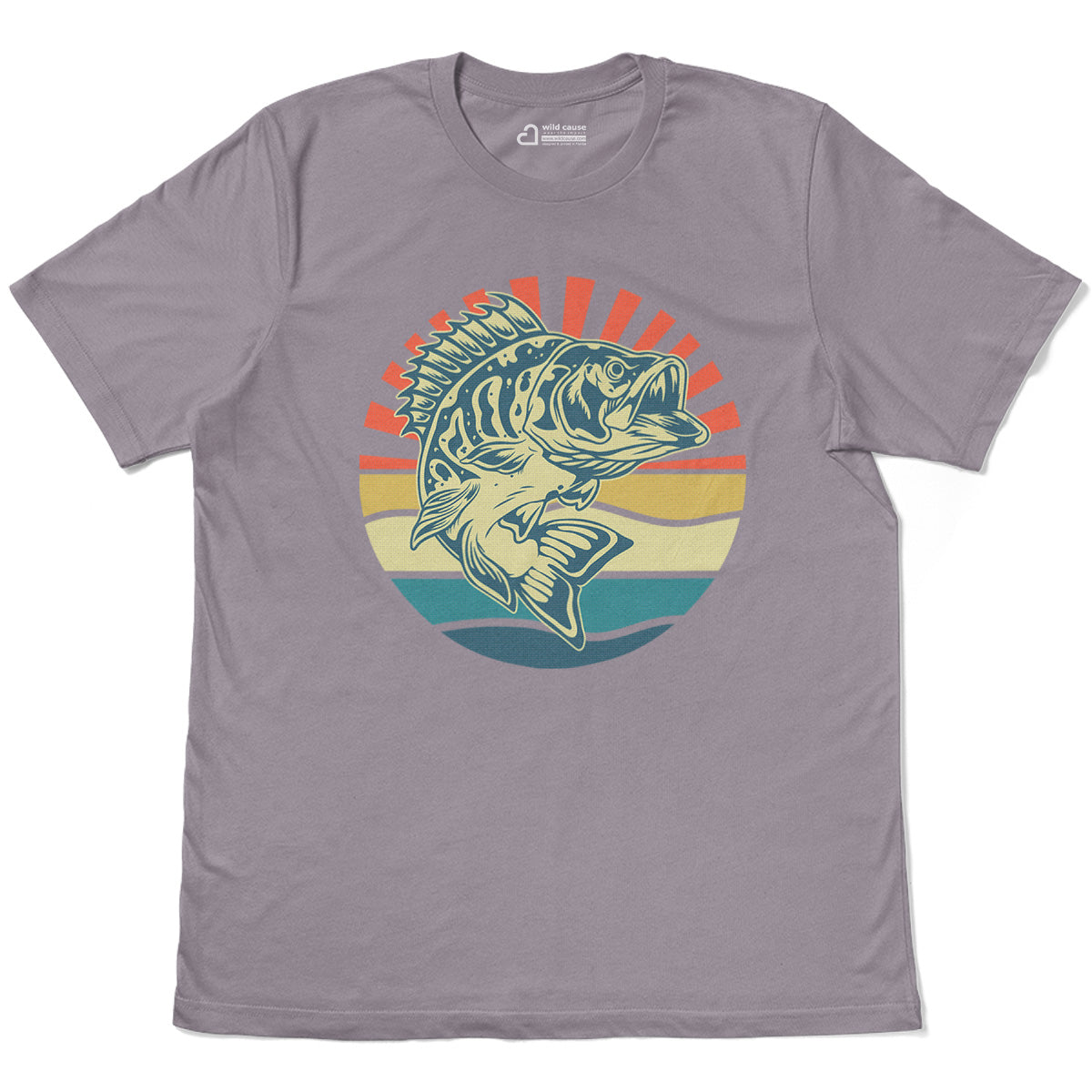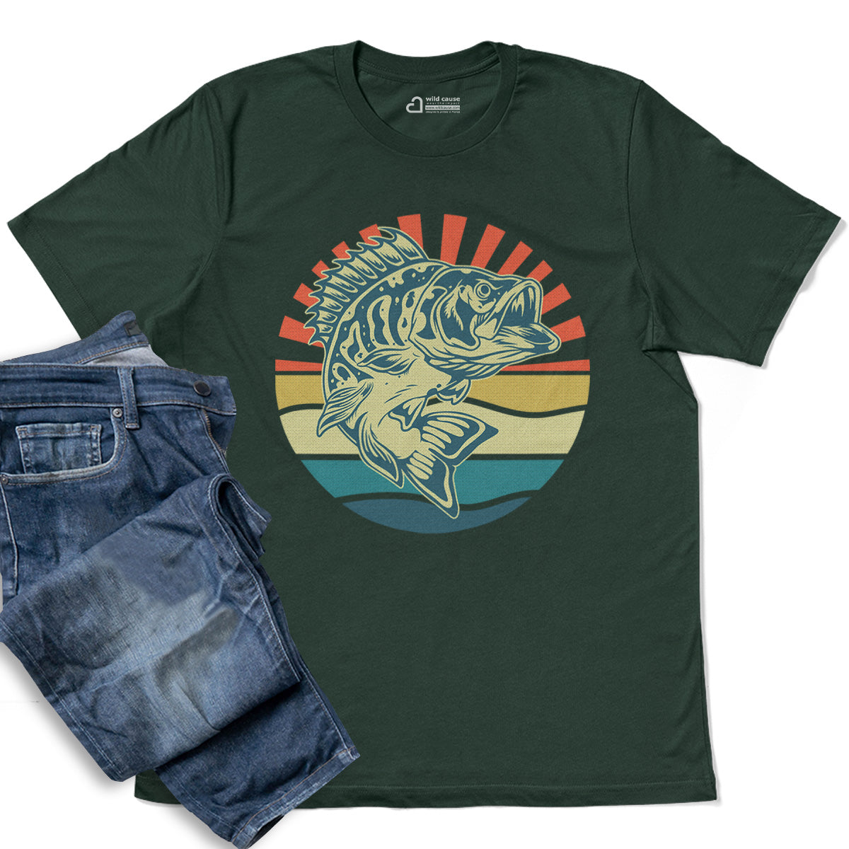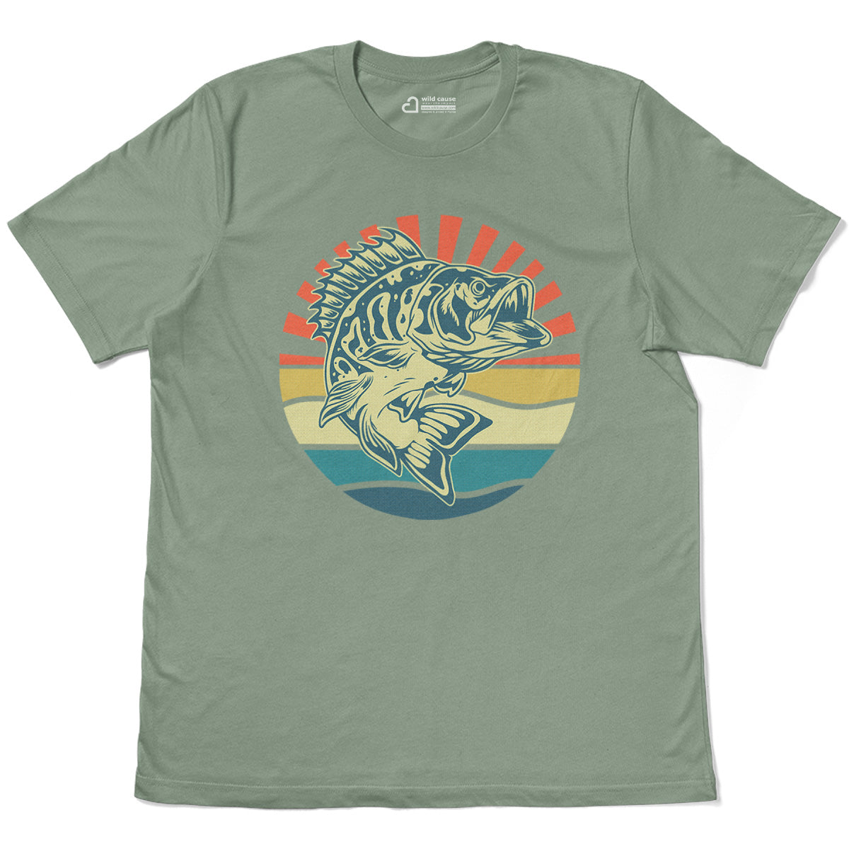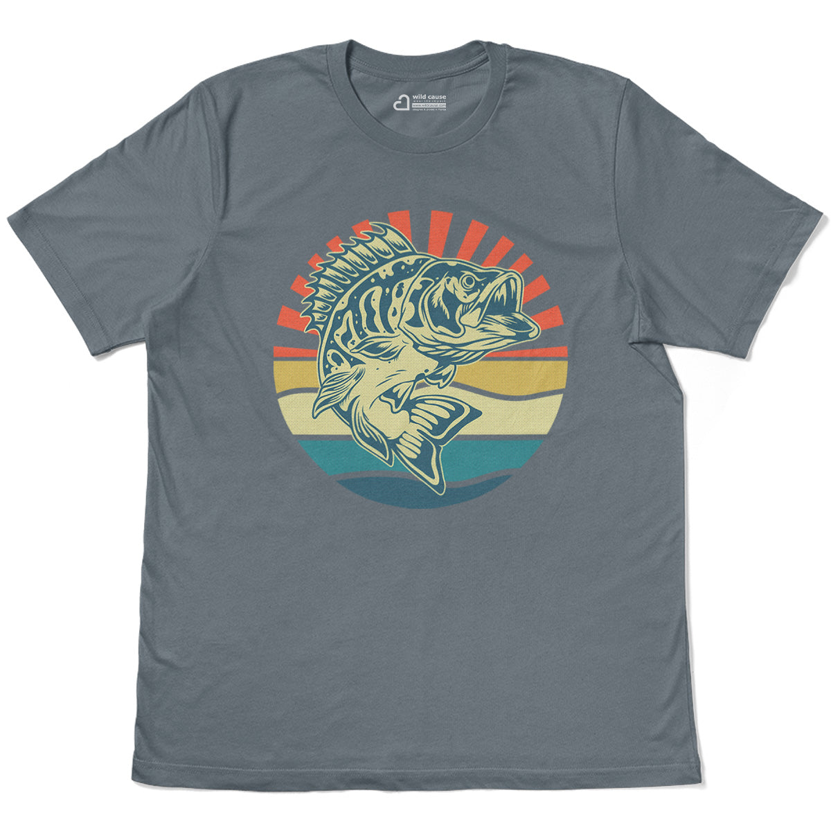 Bass Fish Jumping At Sunset Lake Adult Cotton Tee T-Shirt