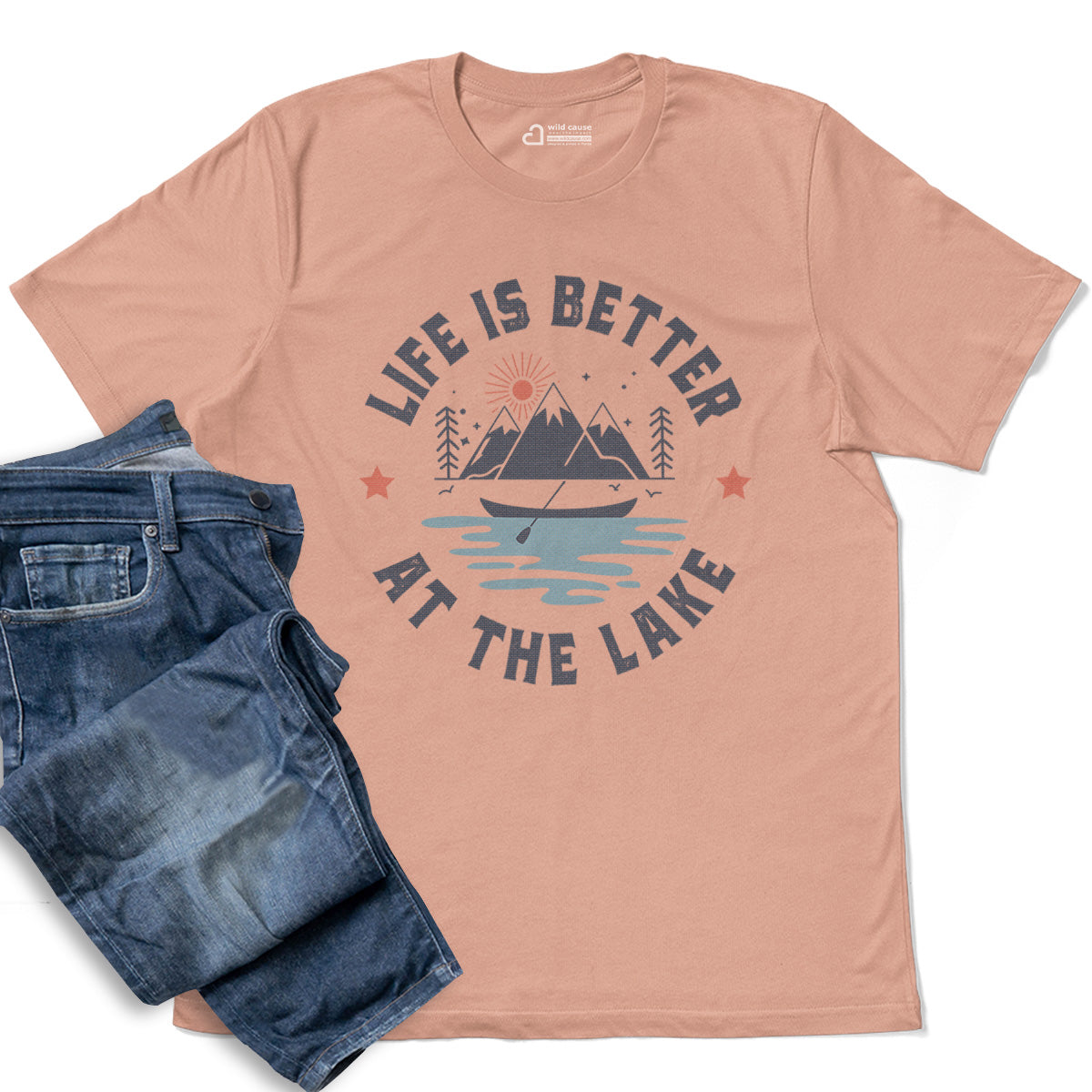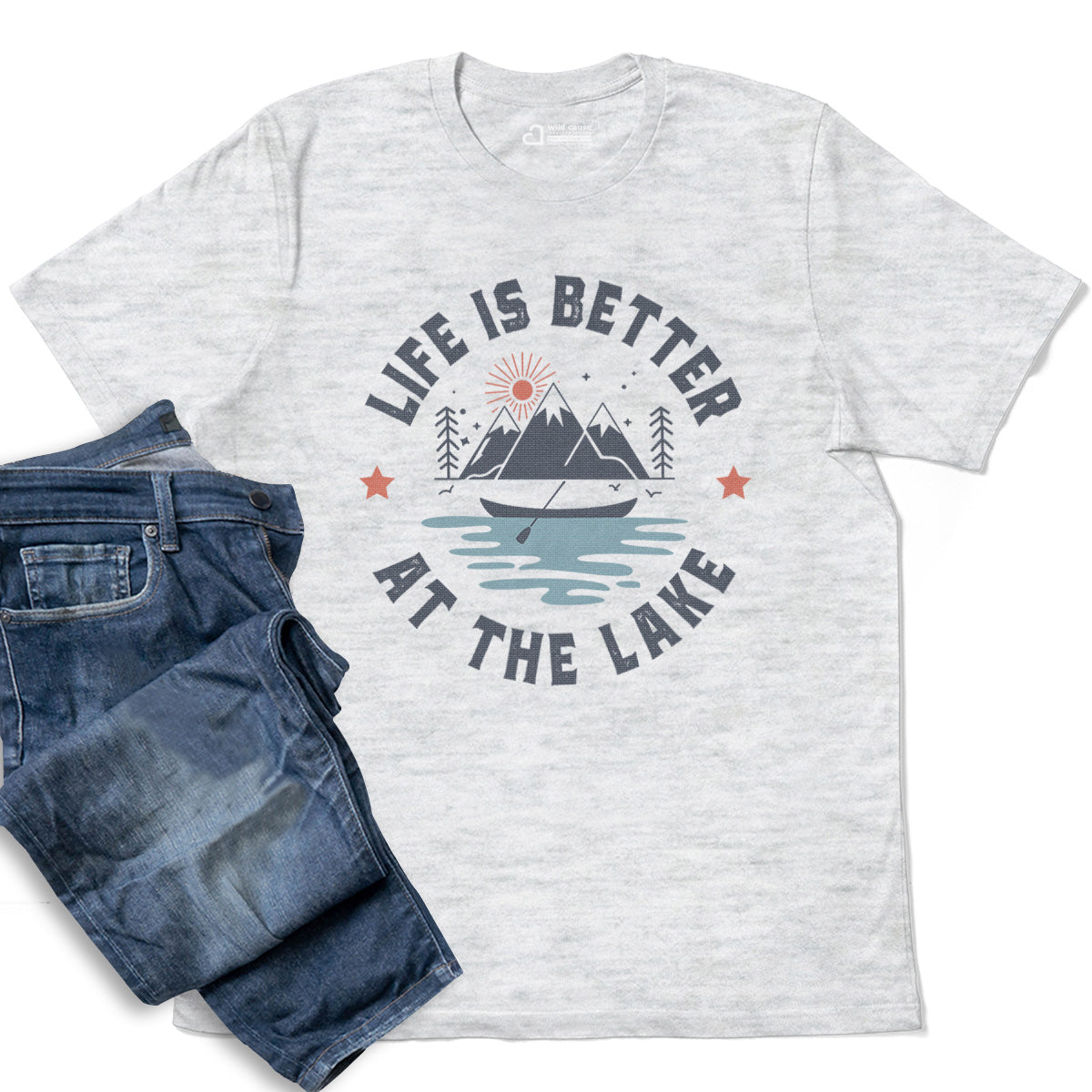 Best Life At The Lake Bold Text Graphic Adult Cotton Tee T-Shirt