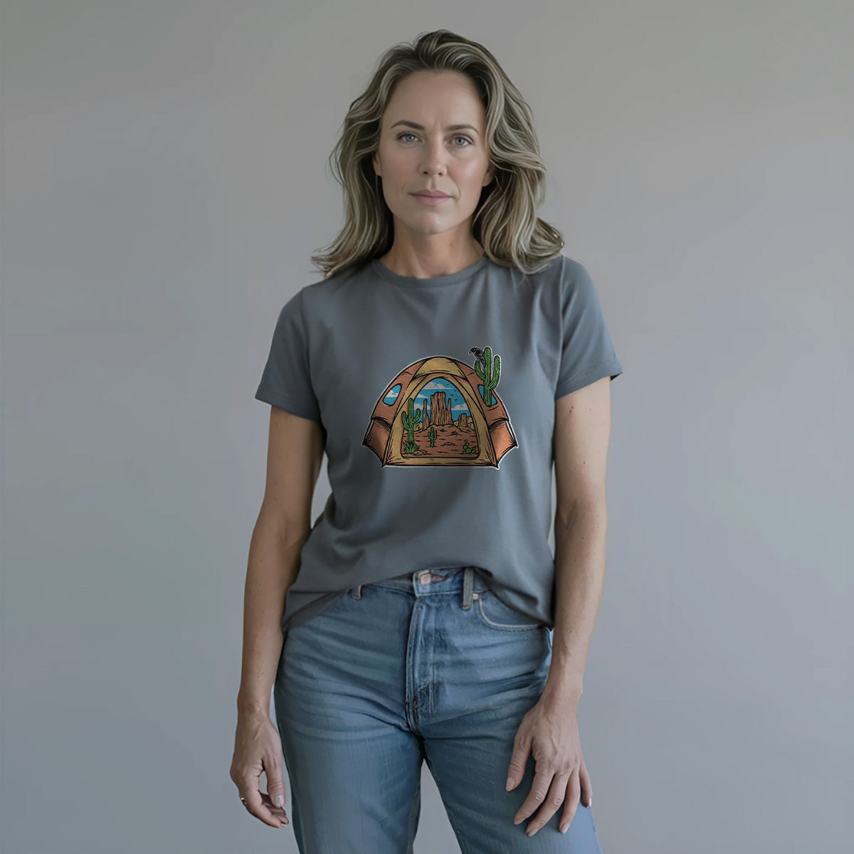 Sleep under desert stars! Adult Cotton Tee T-Shirt is ideal for desert camping and outdoor adventures. Made from high-quality cotton, it offers comfort during desert exploration and wilderness camping.