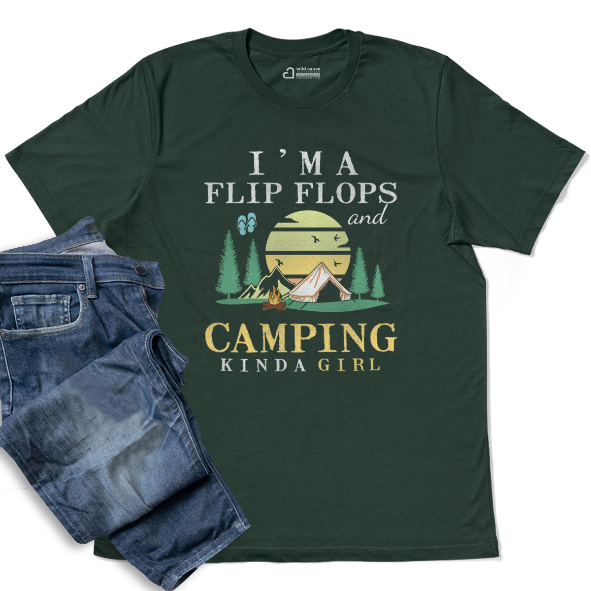 I'm Flip Flops And Camping Kinda Girl Adult Cotton Tee T-Shirt