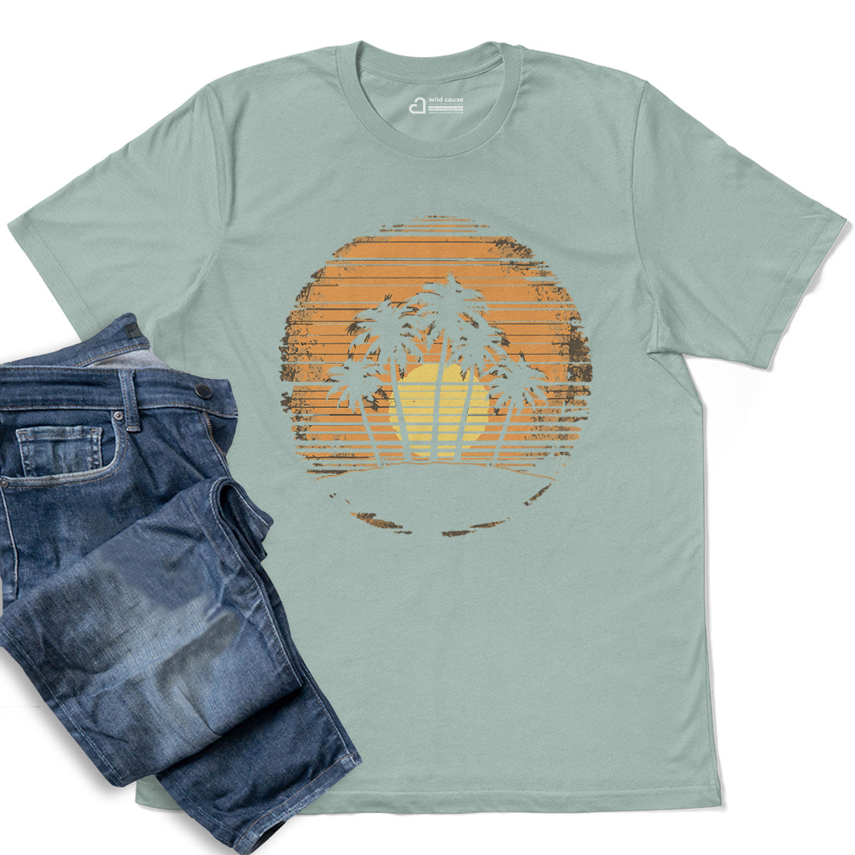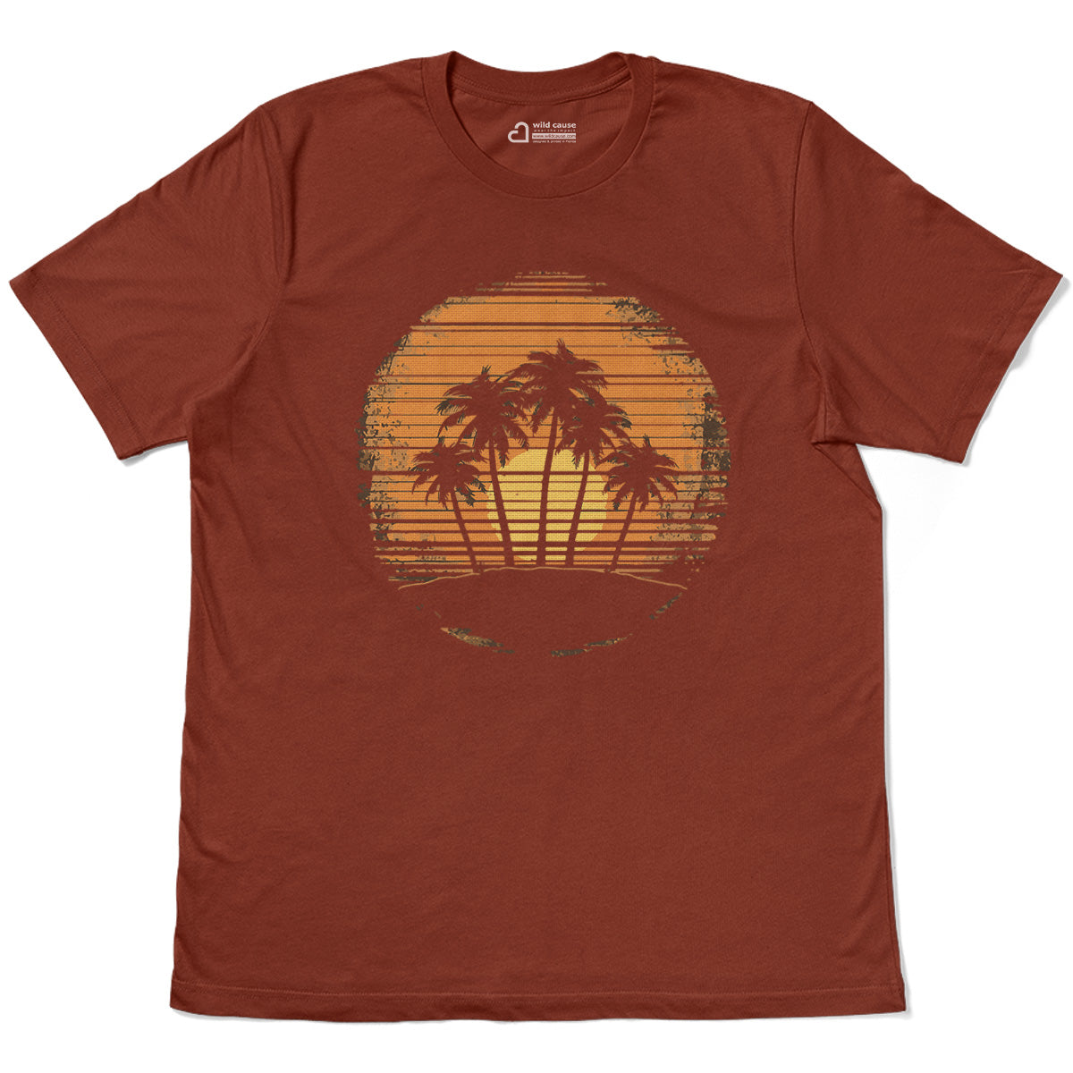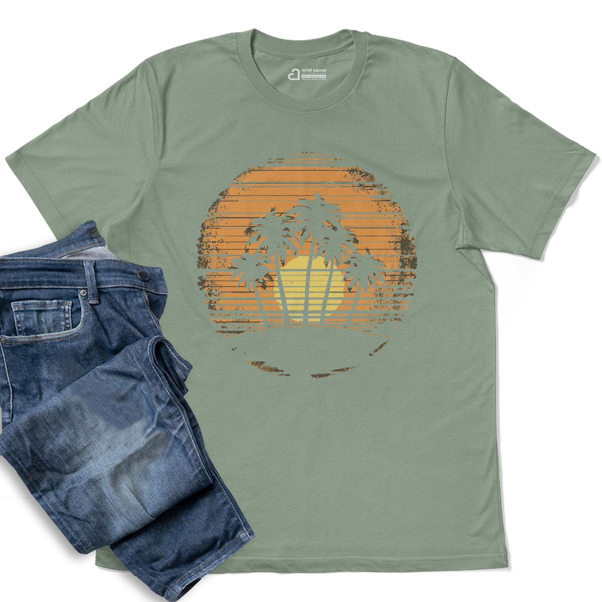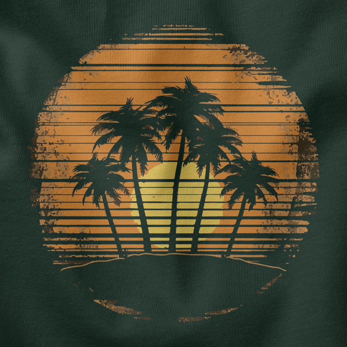 Golden Sunset Beach With Palm Trees Adult Cotton Tee T-Shirt