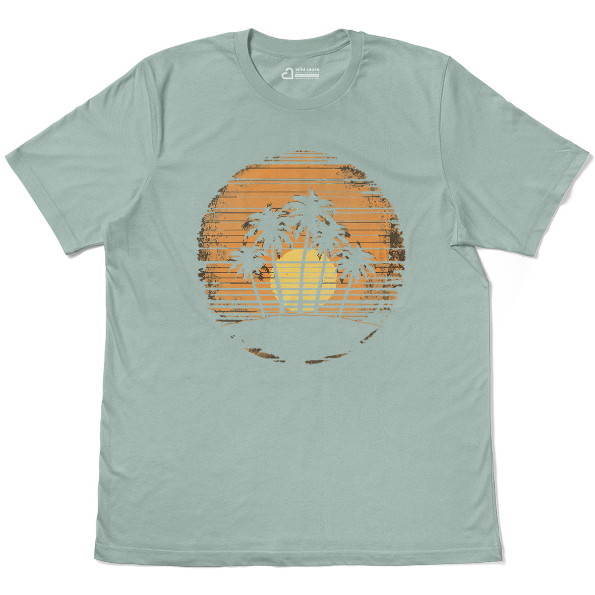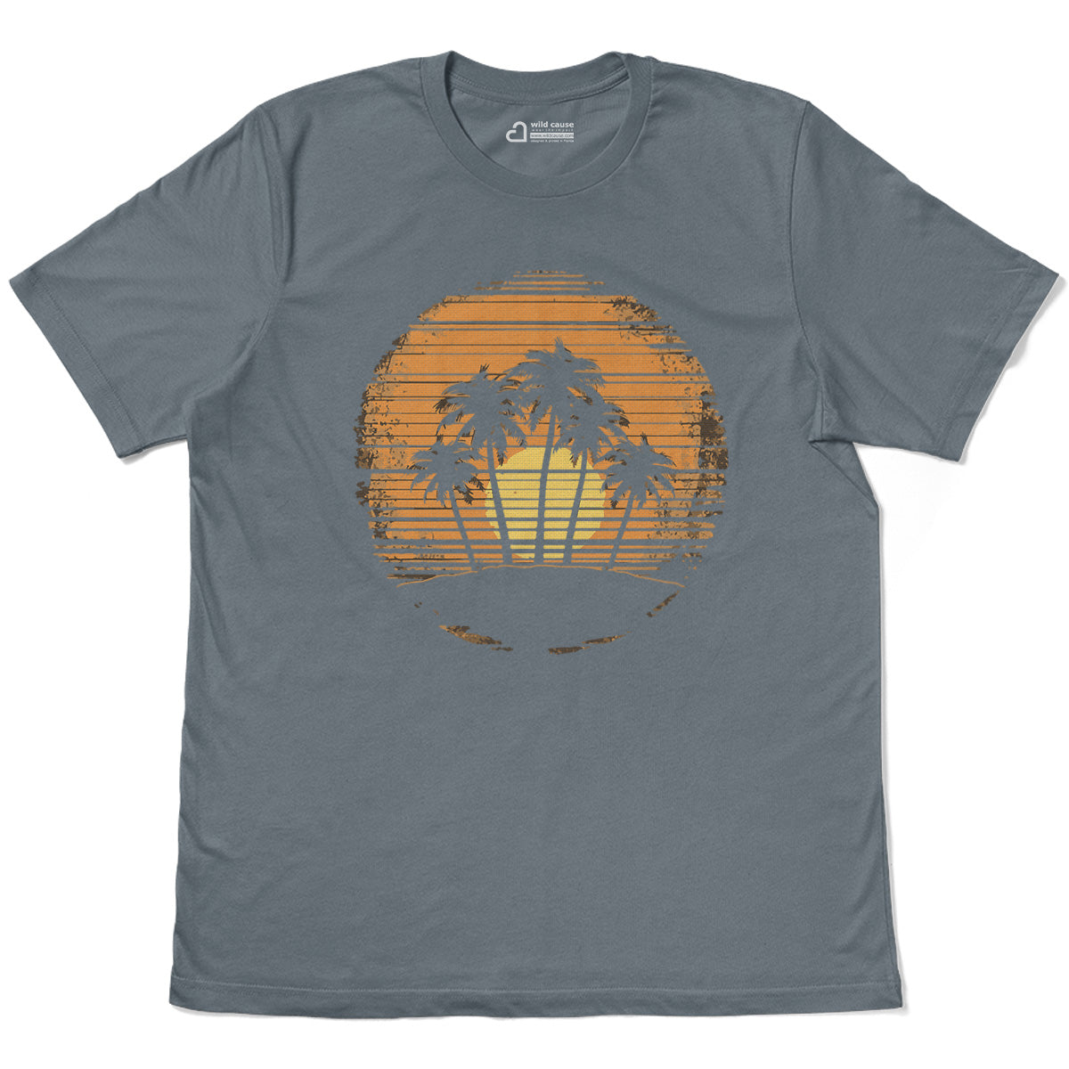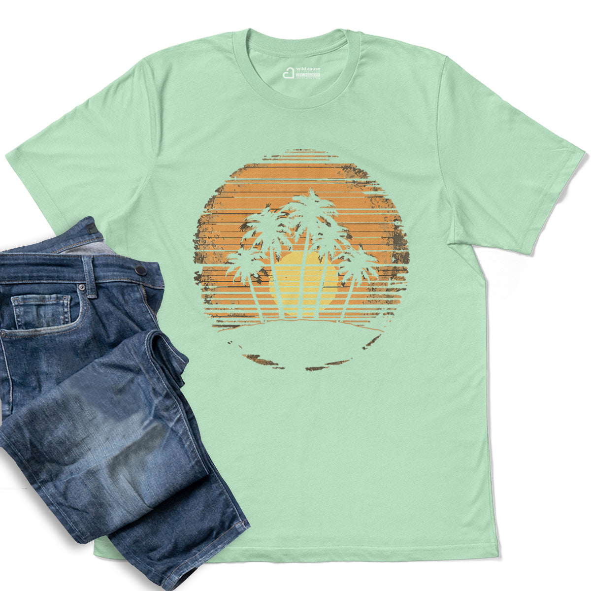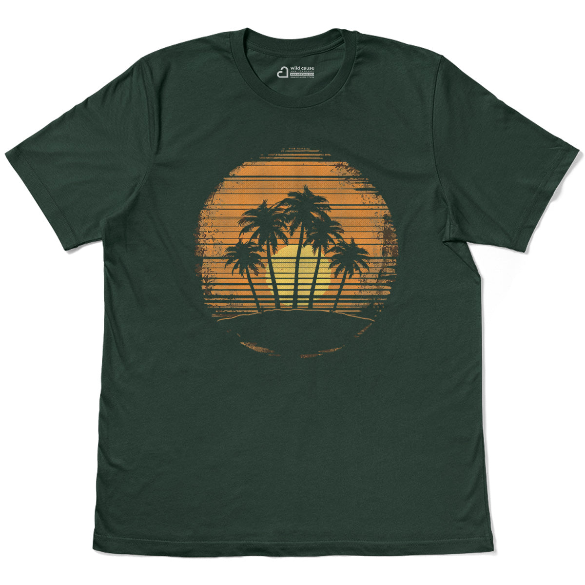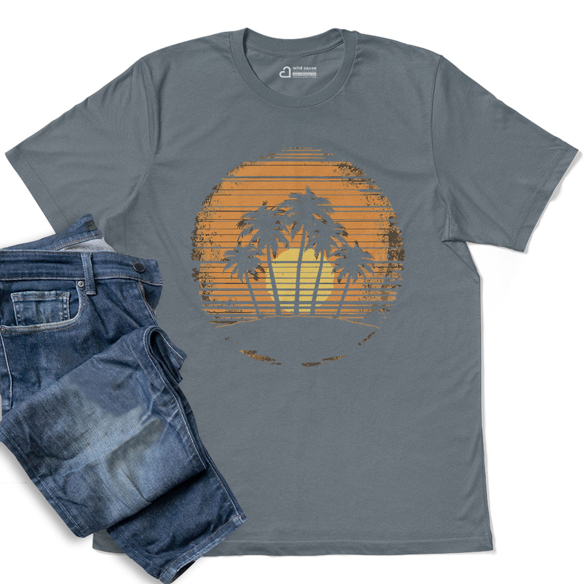 Golden Sunset Beach With Palm Trees Adult Cotton Tee T-Shirt