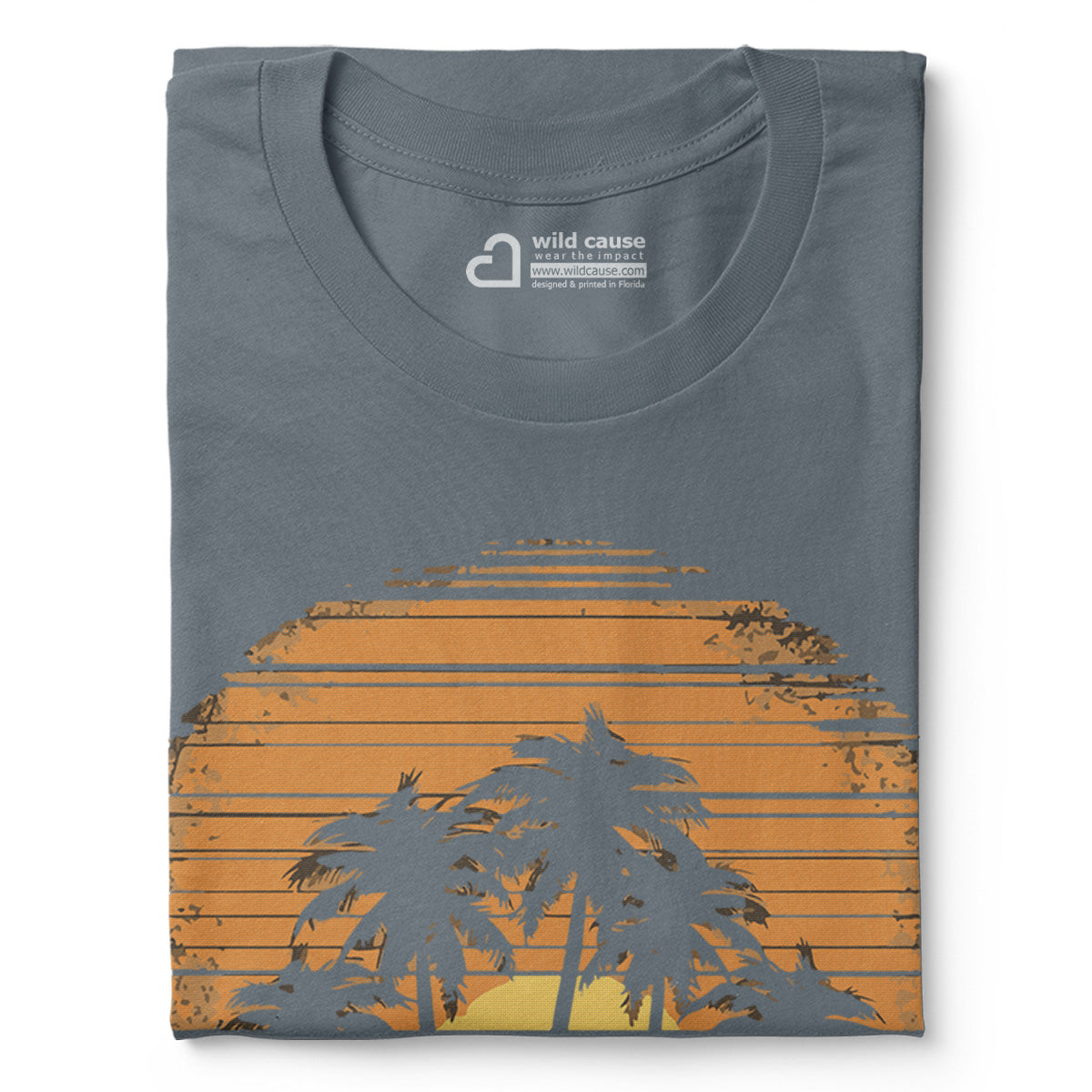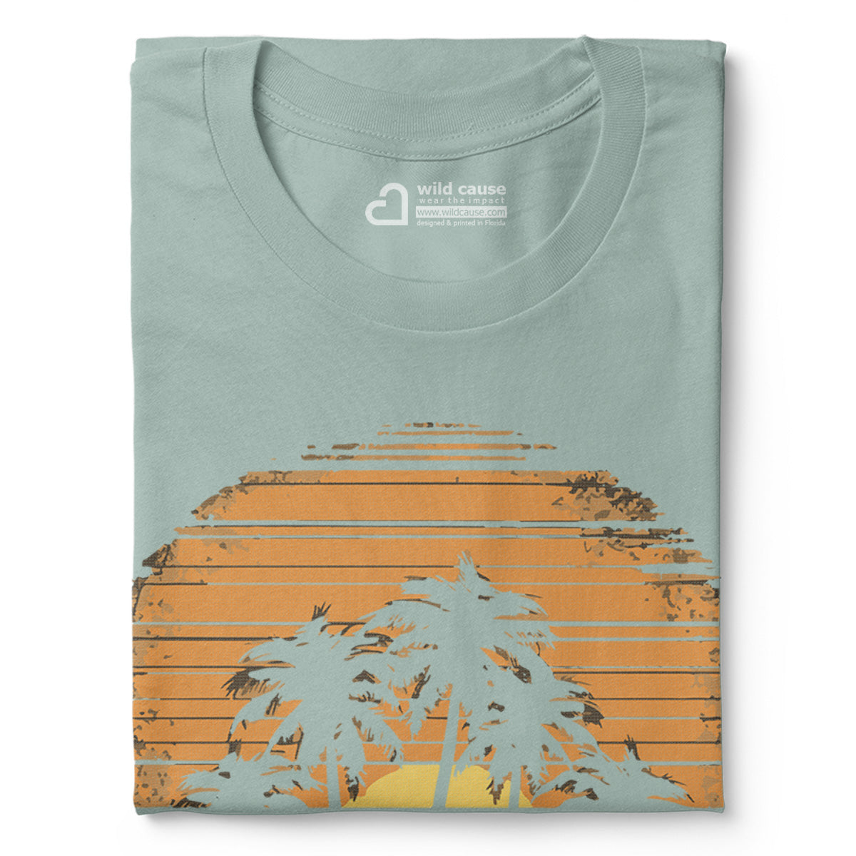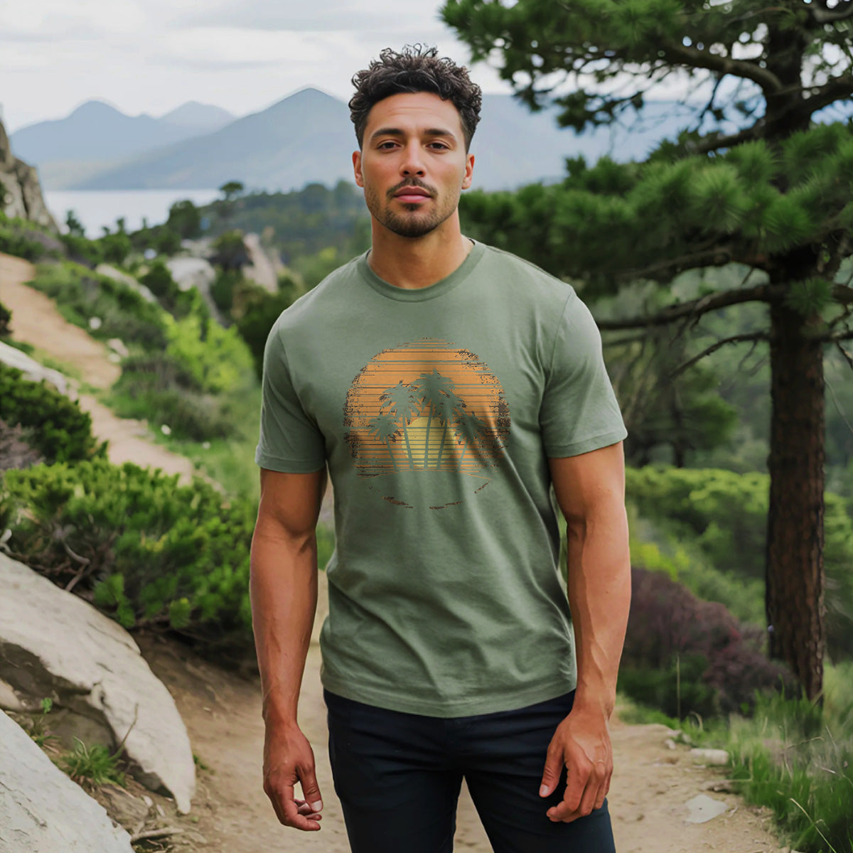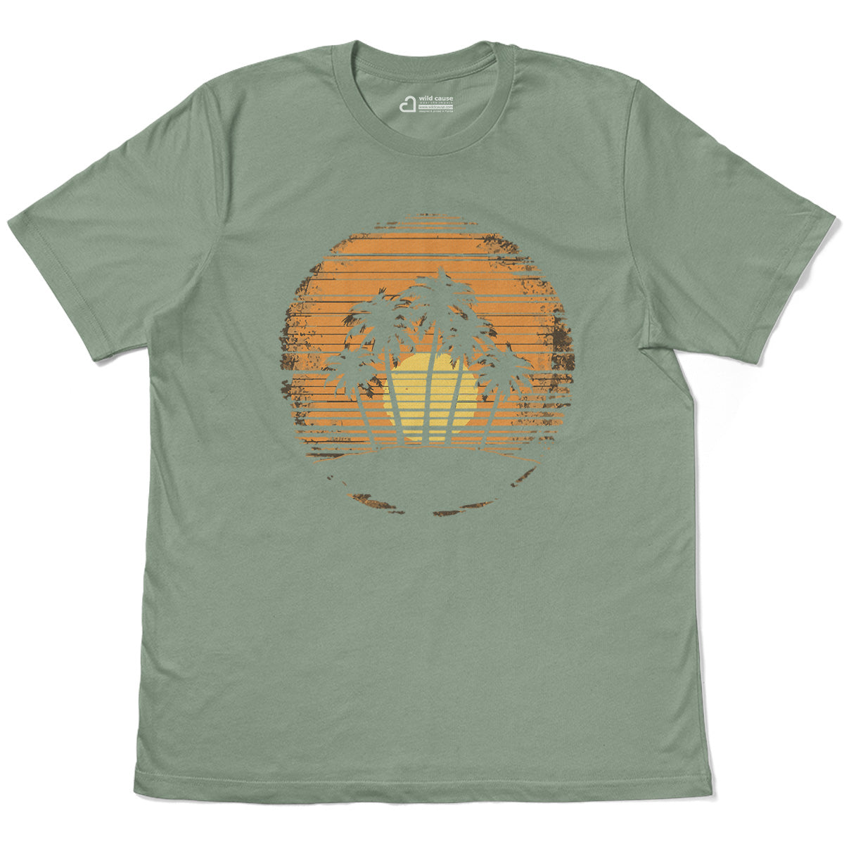 Golden Sunset Beach With Palm Trees Adult Cotton Tee T-Shirt