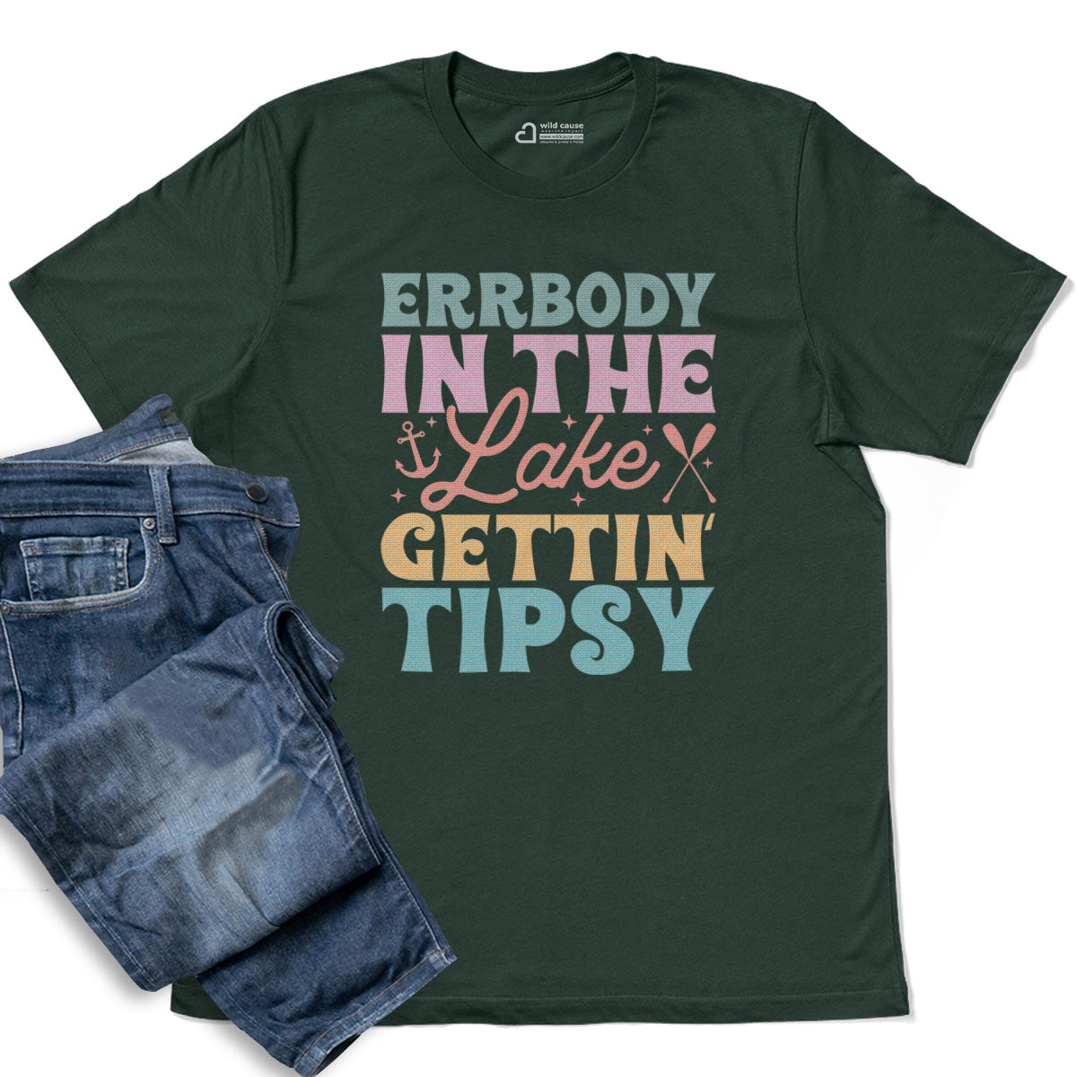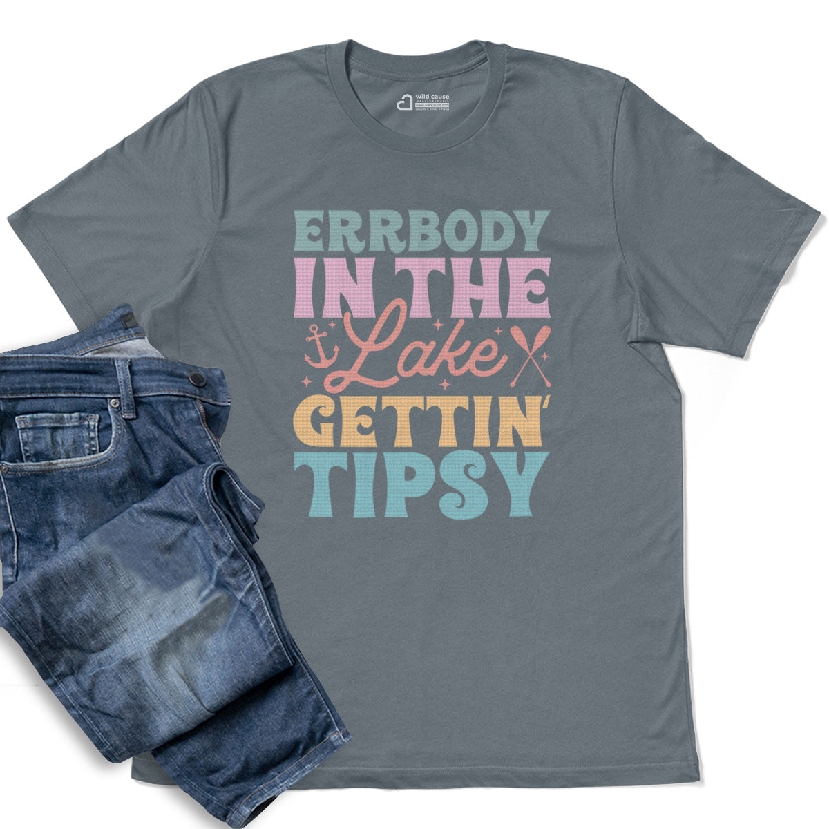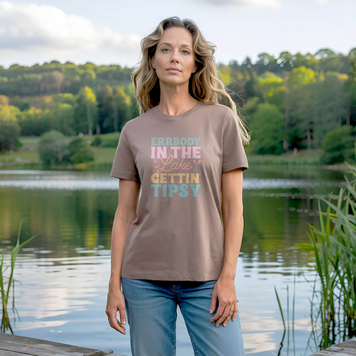 The Everyone’s in the lake, gettin' tipsy Adult Cotton Tee T-Shirt captures good times at the lake with its fun design. Whether you're sipping by the lake or enjoying perfect days by water, this tee will bring lake vibes tipsy moments to life.