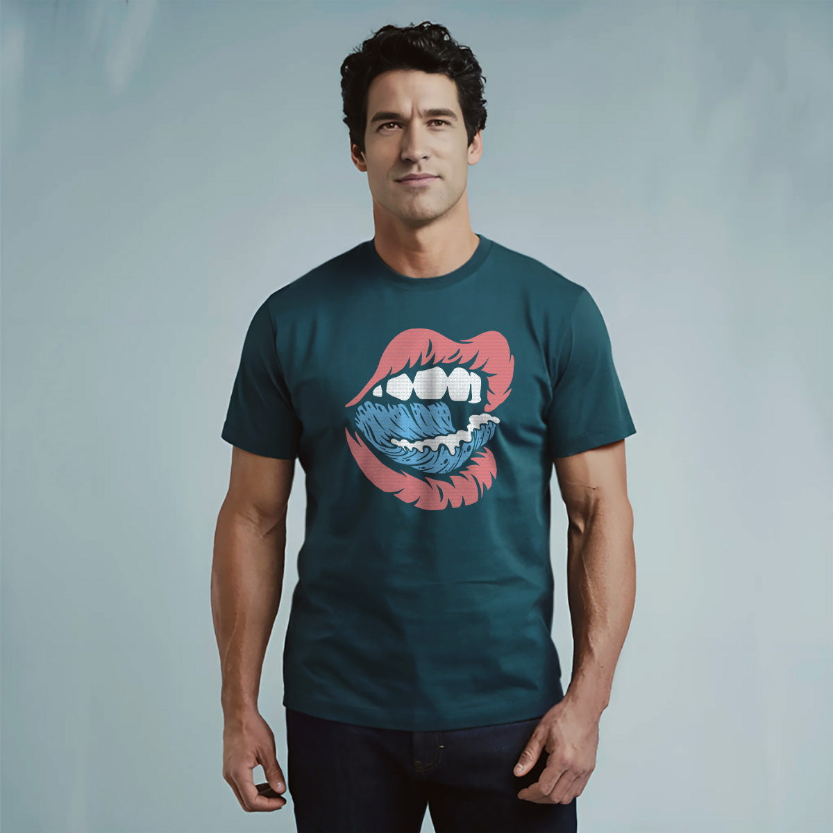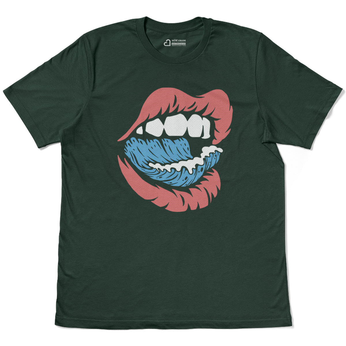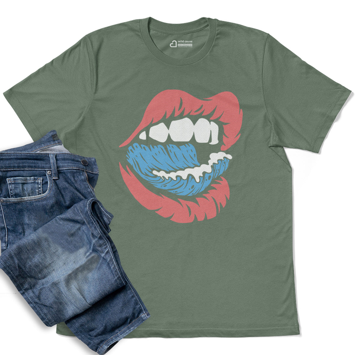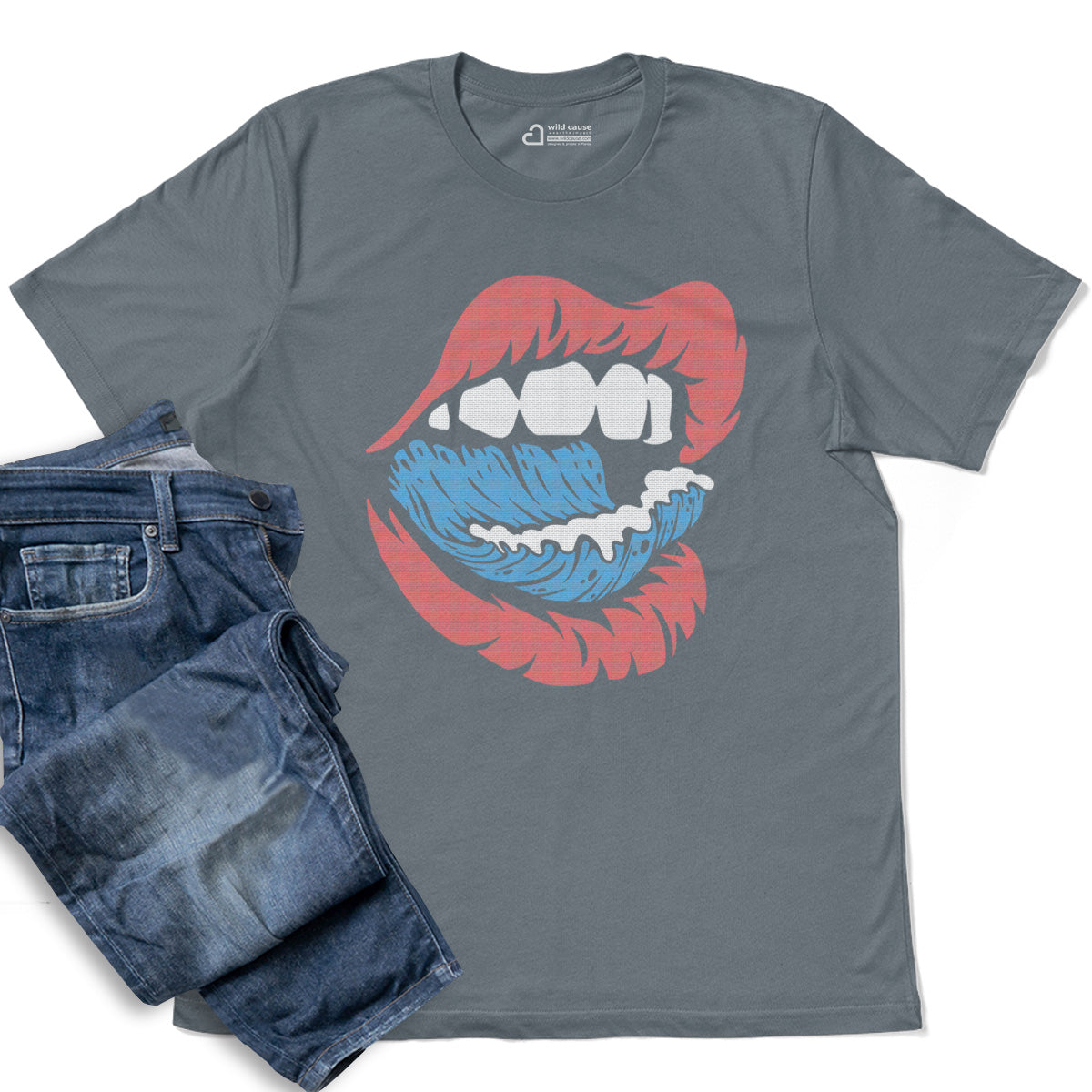Great Wave Kiss Off Lips Surfing Motion Adult Cotton Tee T-Shirt