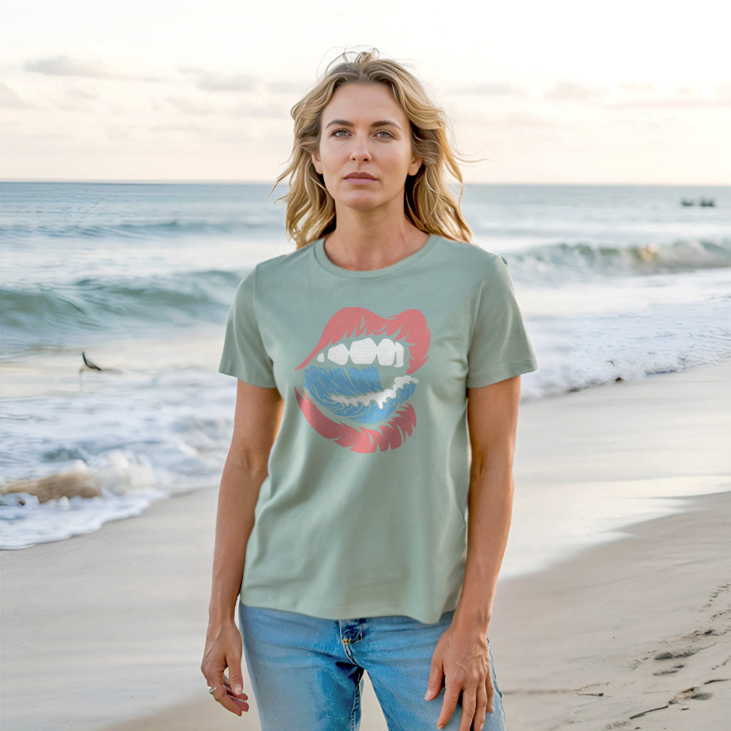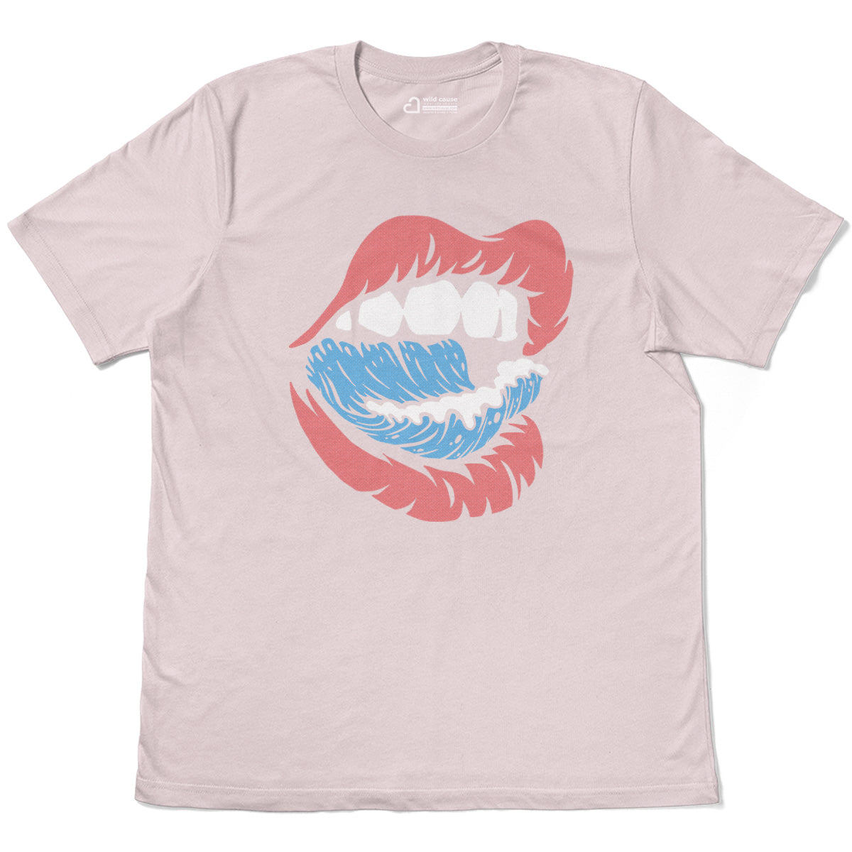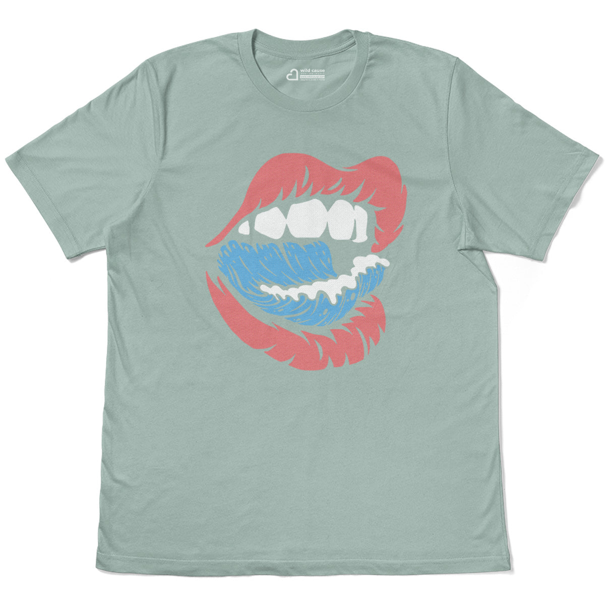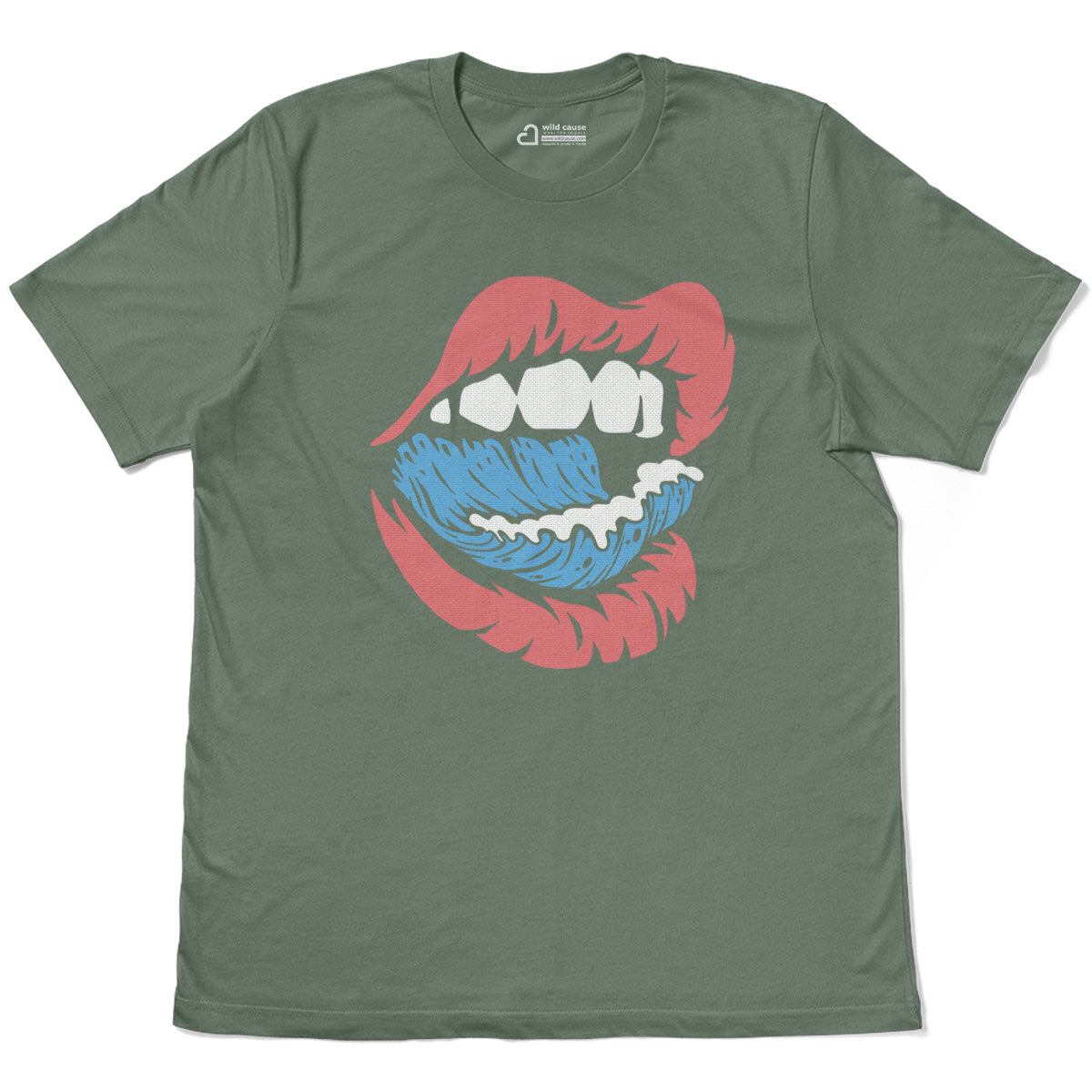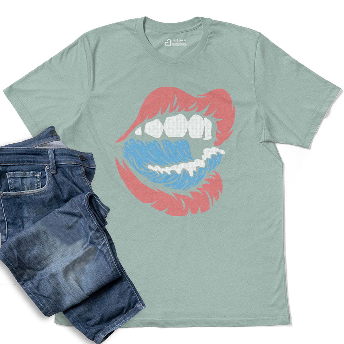 Great Wave Kiss Off Lips Surfing Motion Adult Cotton Tee T-Shirt