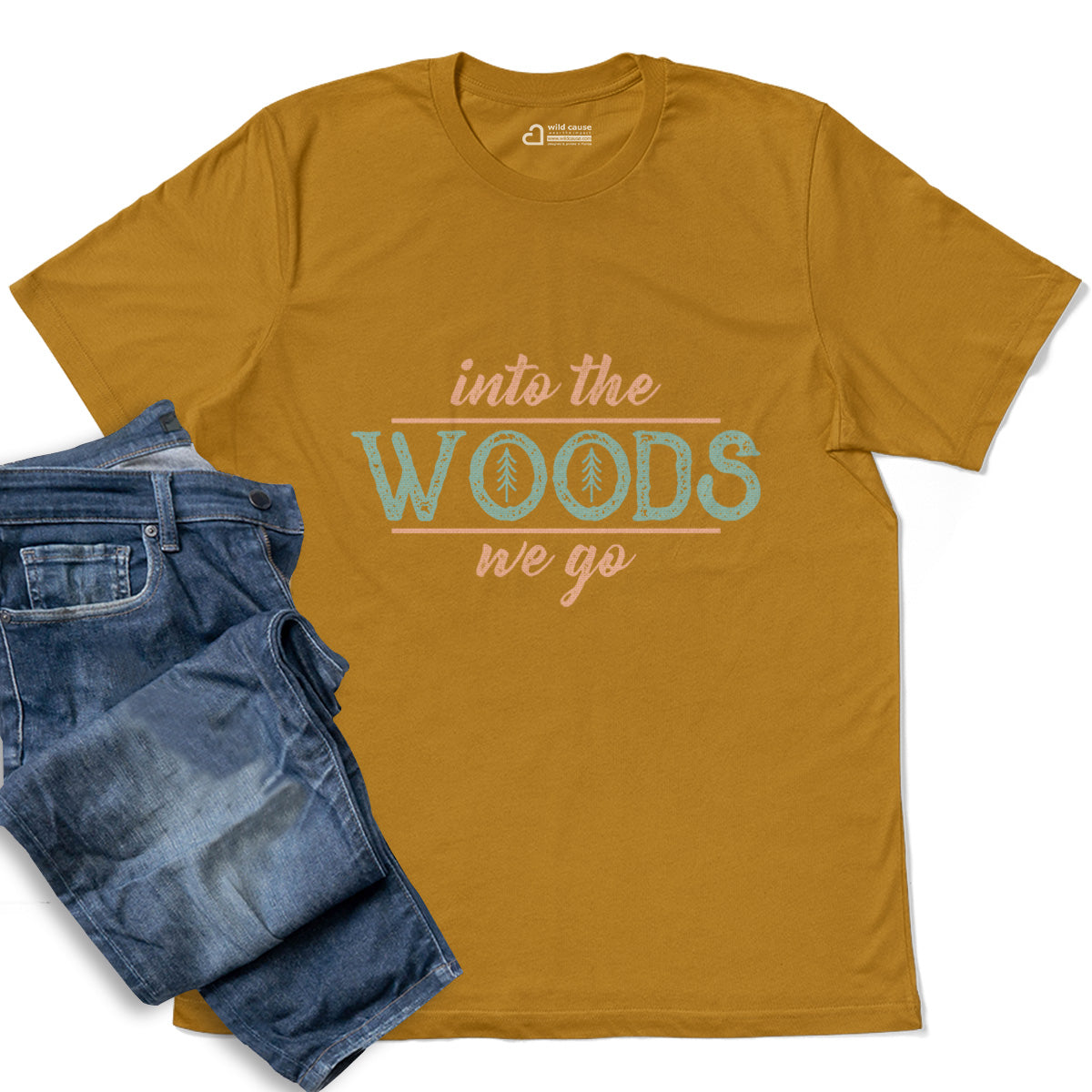 Head into the woods for outdoor fun Adult Cotton Tee T-Shirt is perfect for adventurers hiking through the woods. Made from soft, durable fabric, this tee is ideal for forest camping trips and exploring nature trails. Get ready for an Into The Woods Adventure with this comfortable and stylish design.