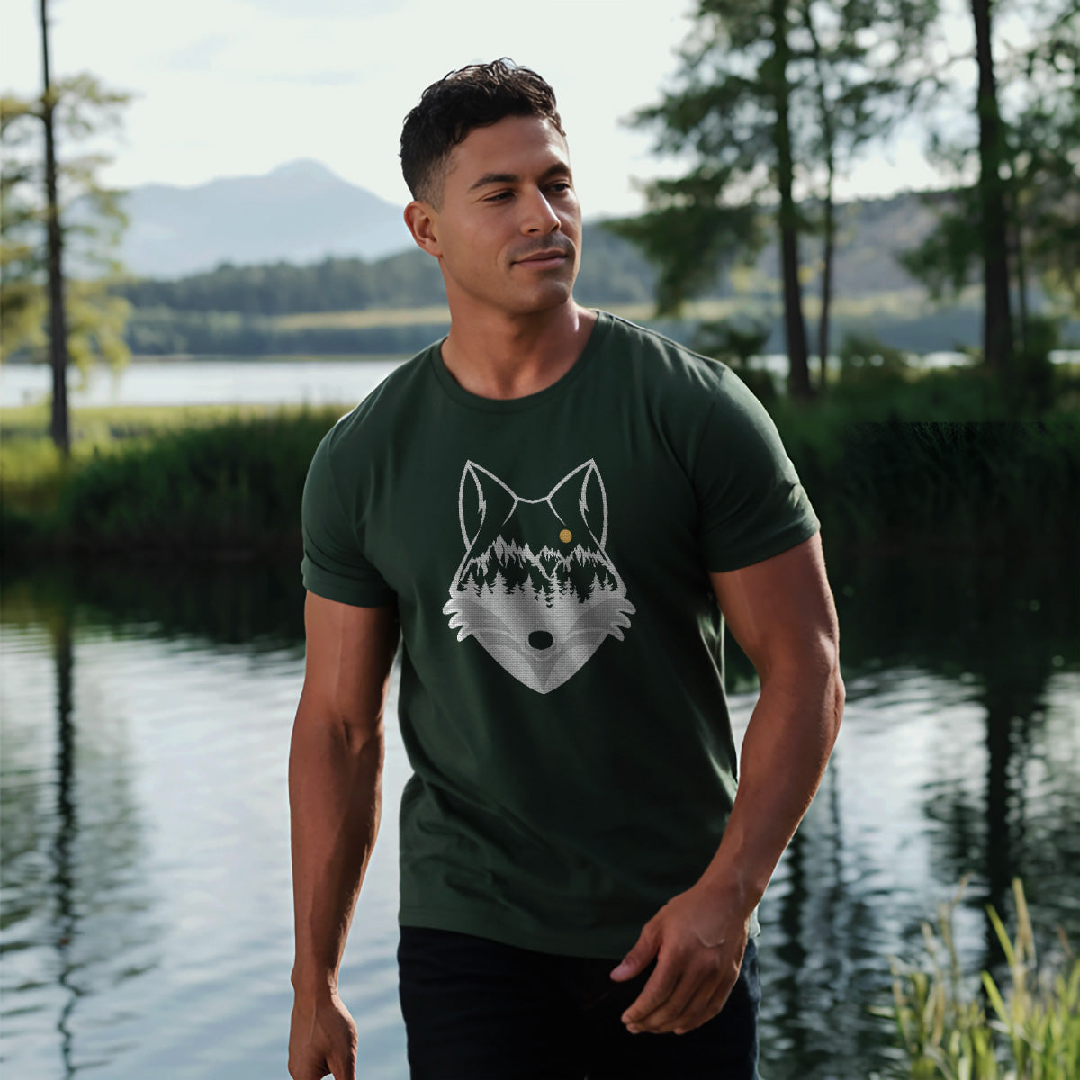 Moonlight Fox Fusion Under Night Sky Adult Cotton Tee T-Shirt