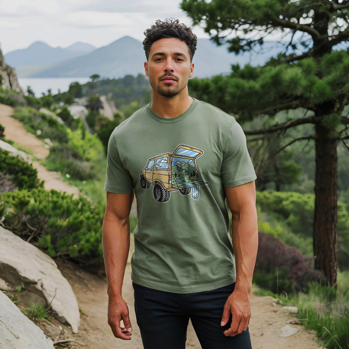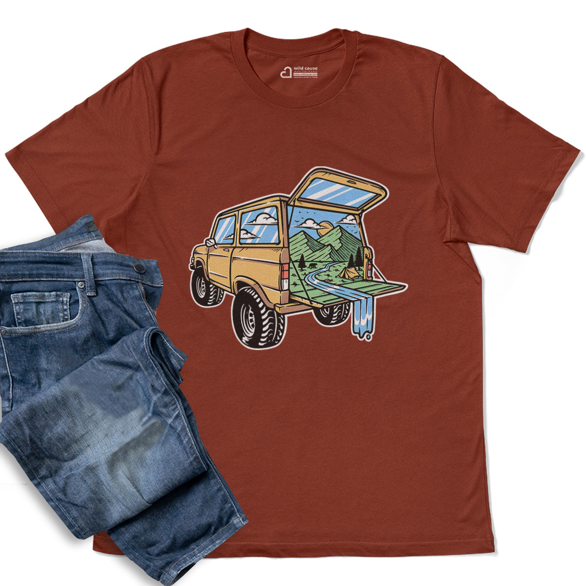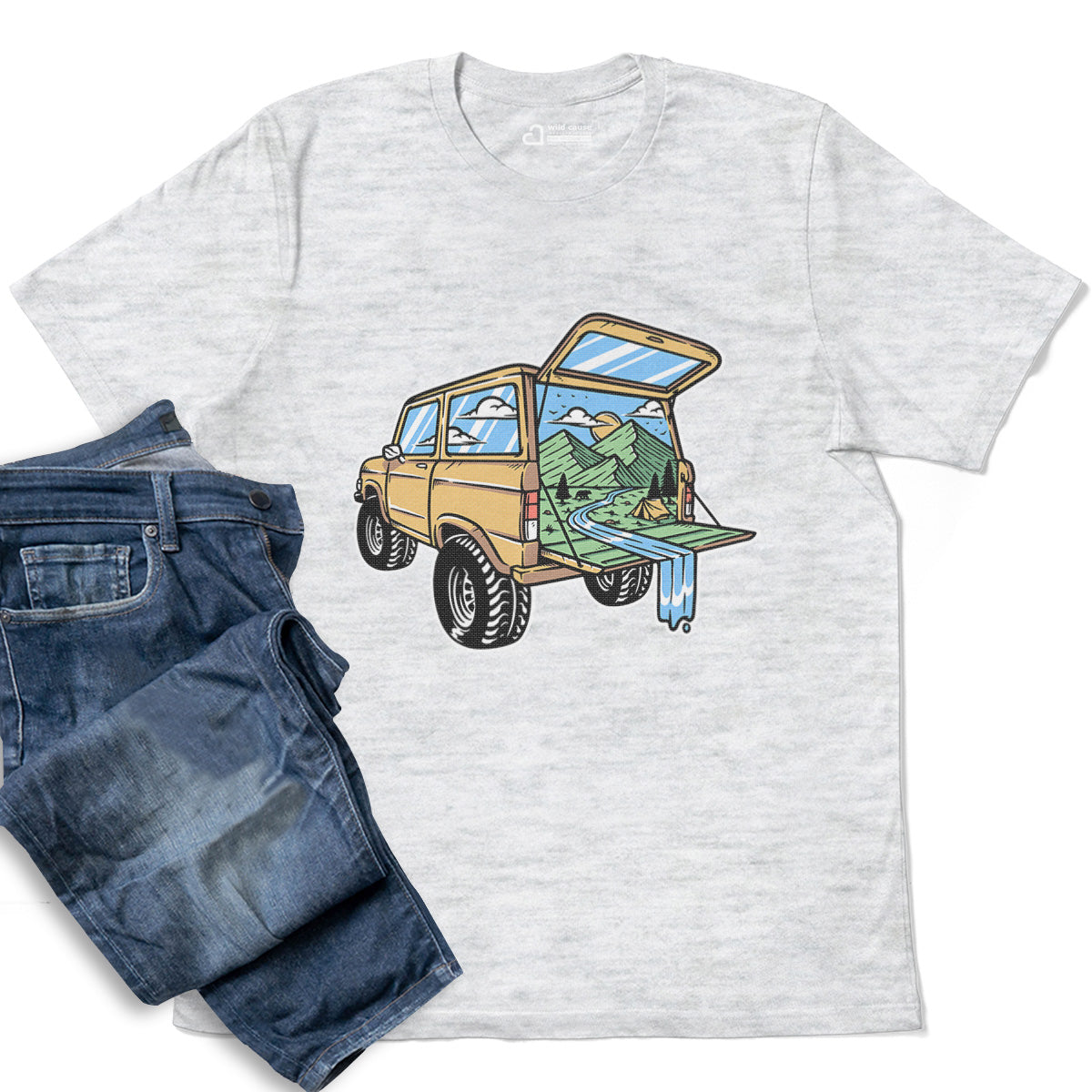 Mountain View from the Car Adult Cotton Tee T-Shirt