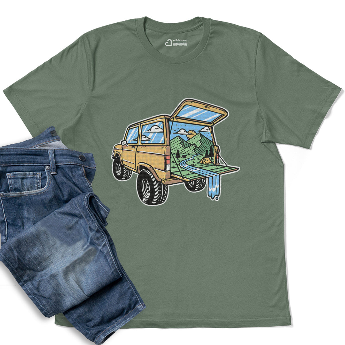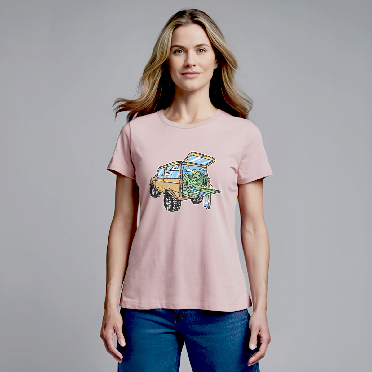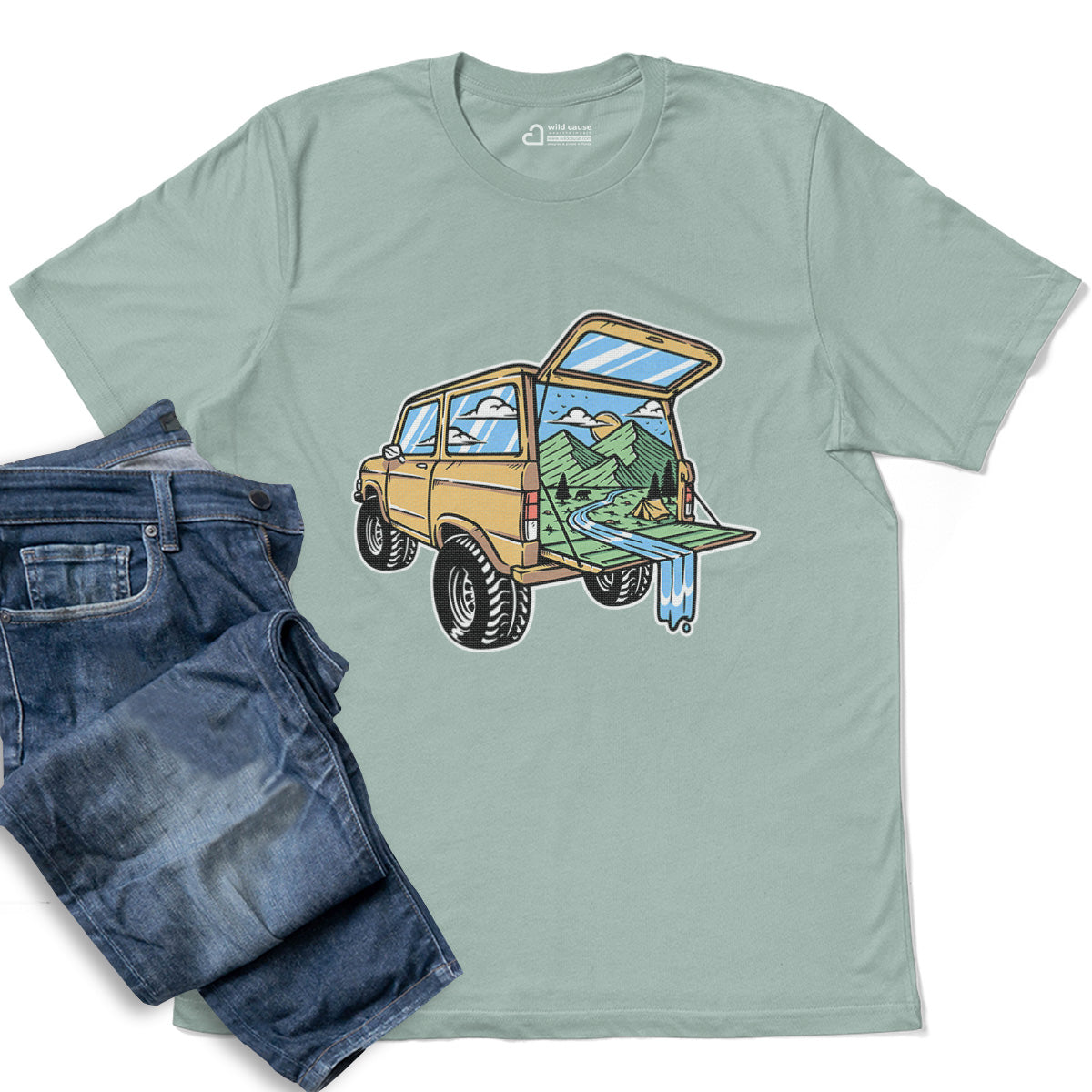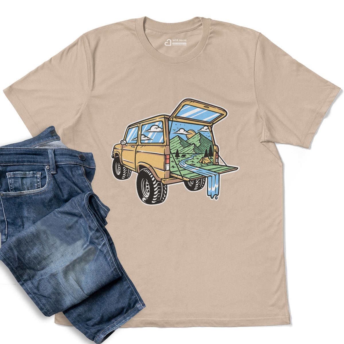 Mountain View from the Car Adult Cotton Tee T-Shirt
