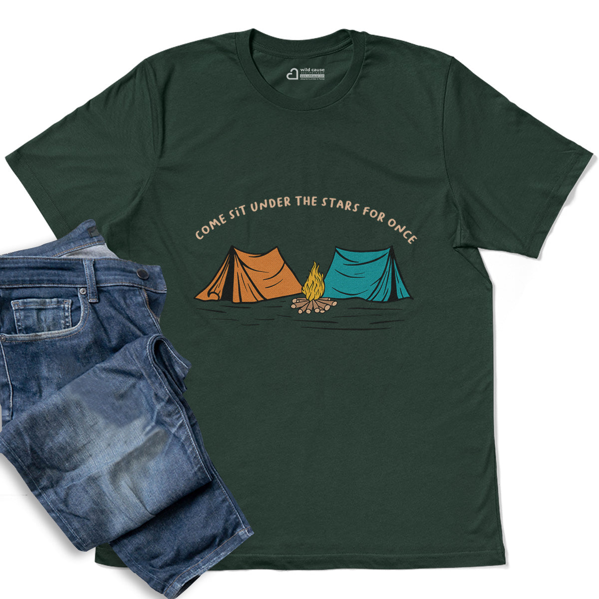 Outdoor Camp Stargazing Under Night Sky Adult Cotton Tee T-Shirt