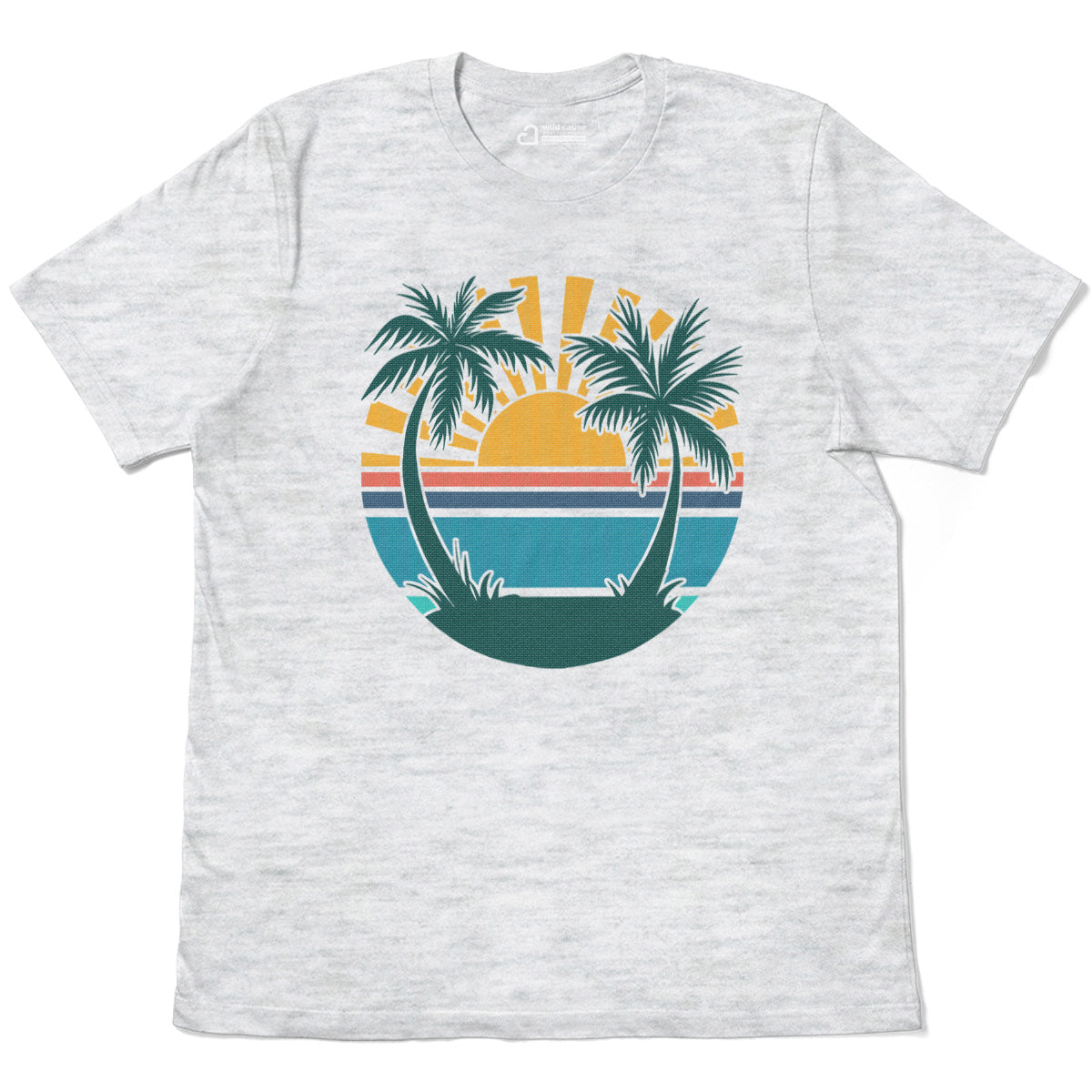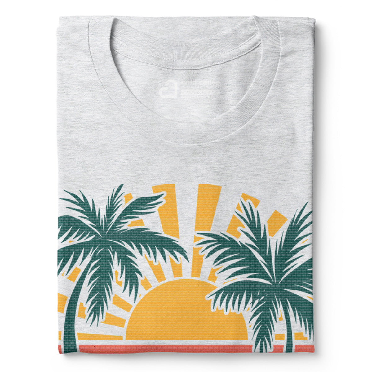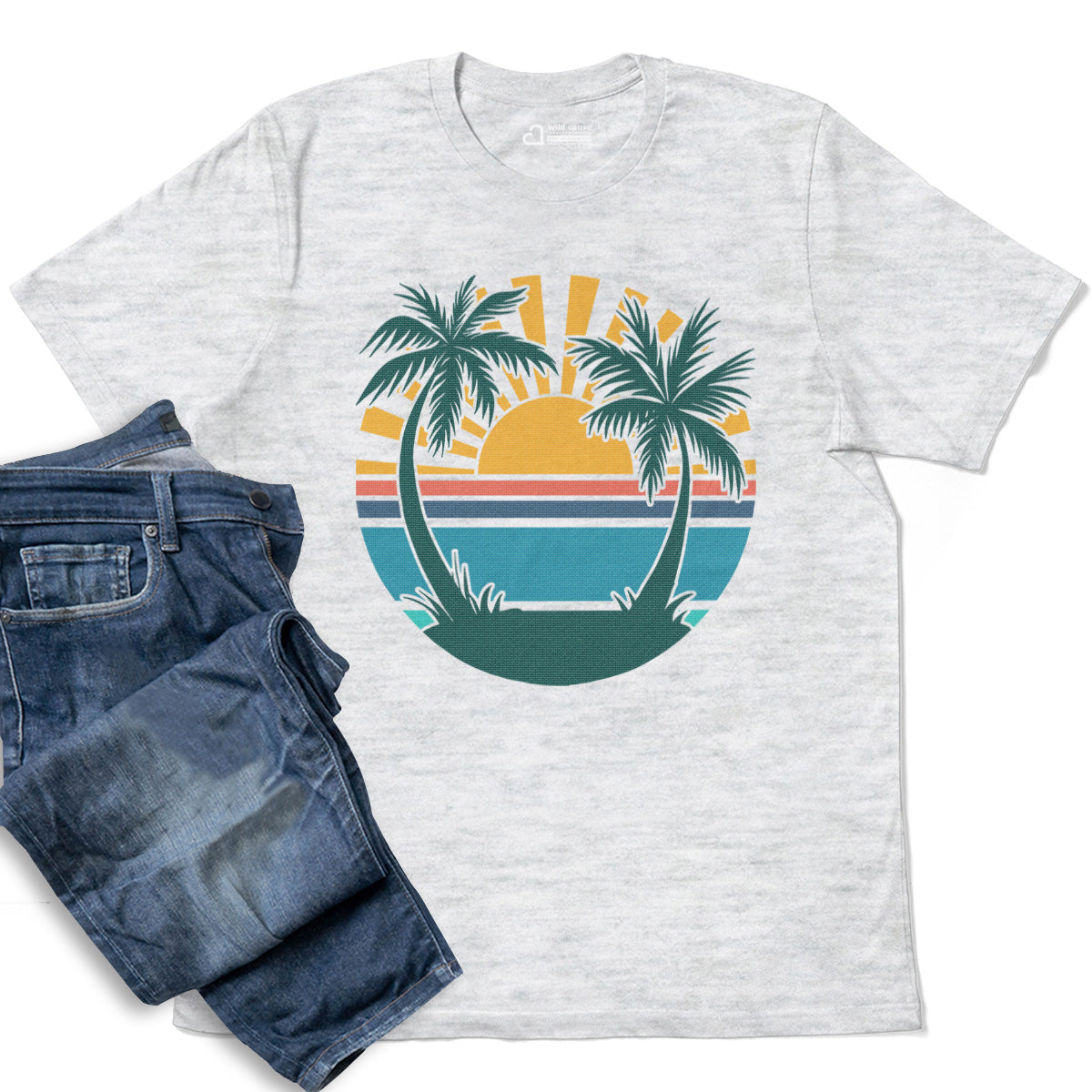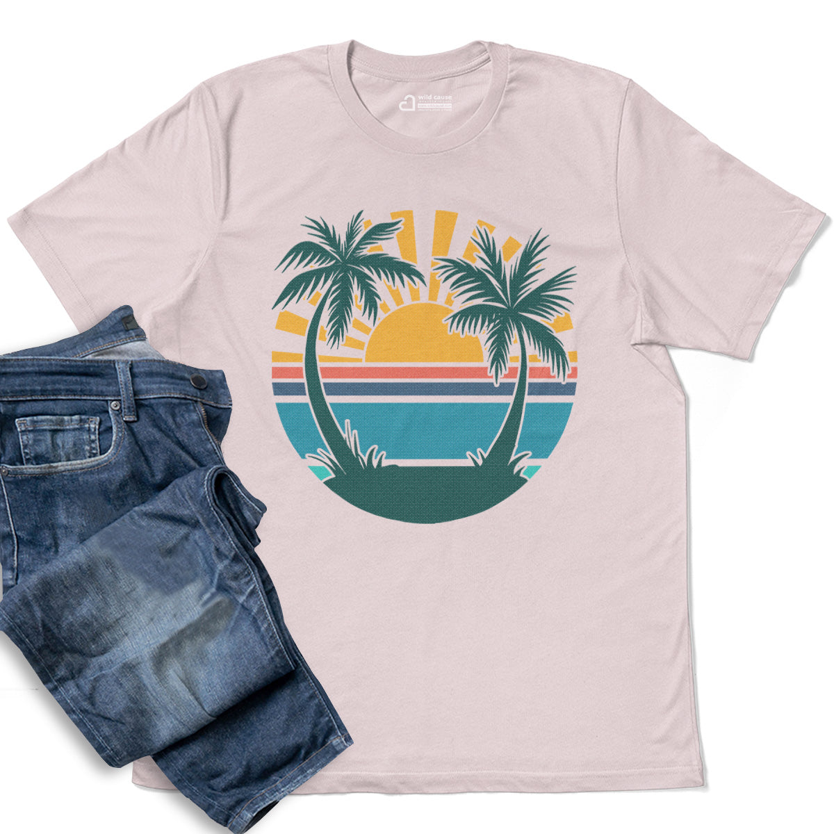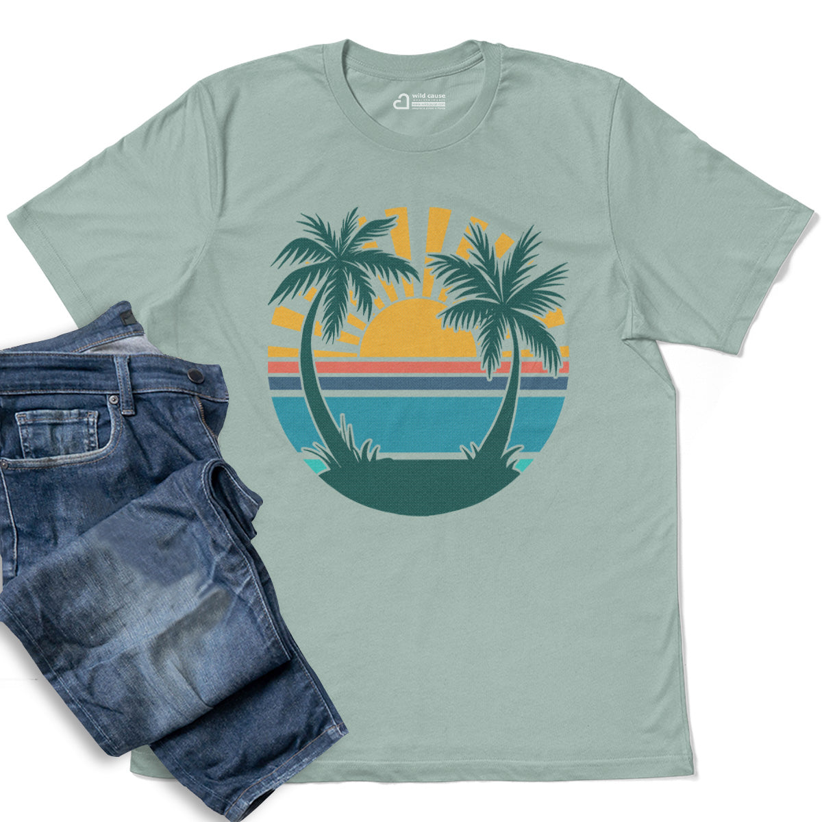 Relax, watch sunset waves unfold Adult Cotton Tee T-Shirt is perfect for those chilling under palm trees. This retro sunset gathering design captures sunset beach with palm vibes, providing a unique style. Enjoy sunset views with palm vibes and trees in this comfortable tee.