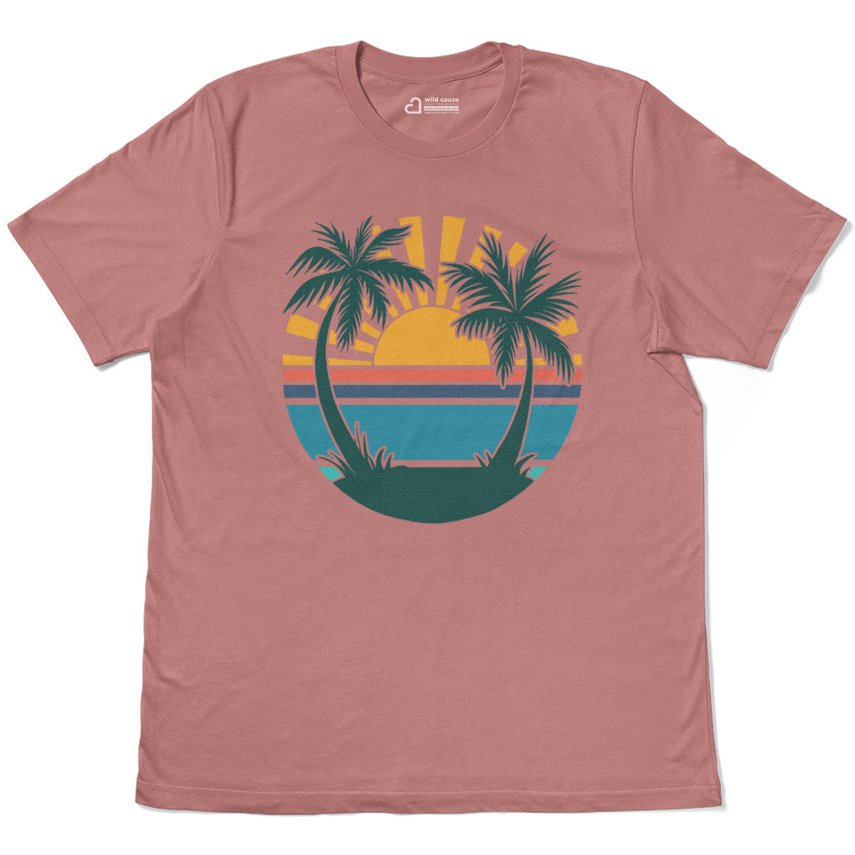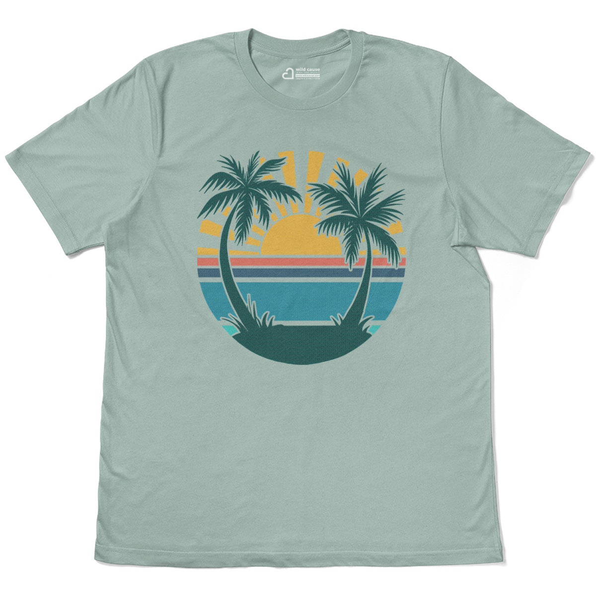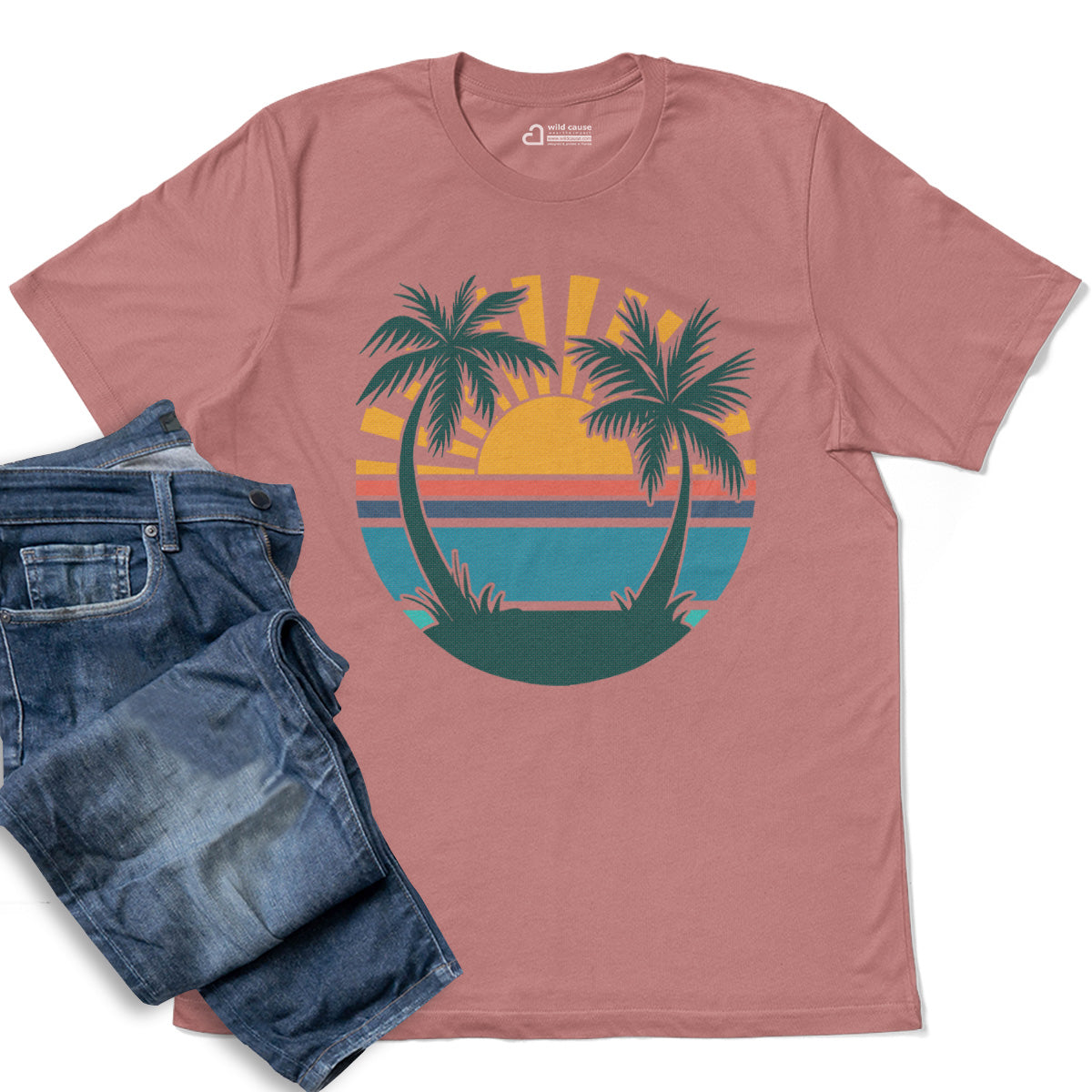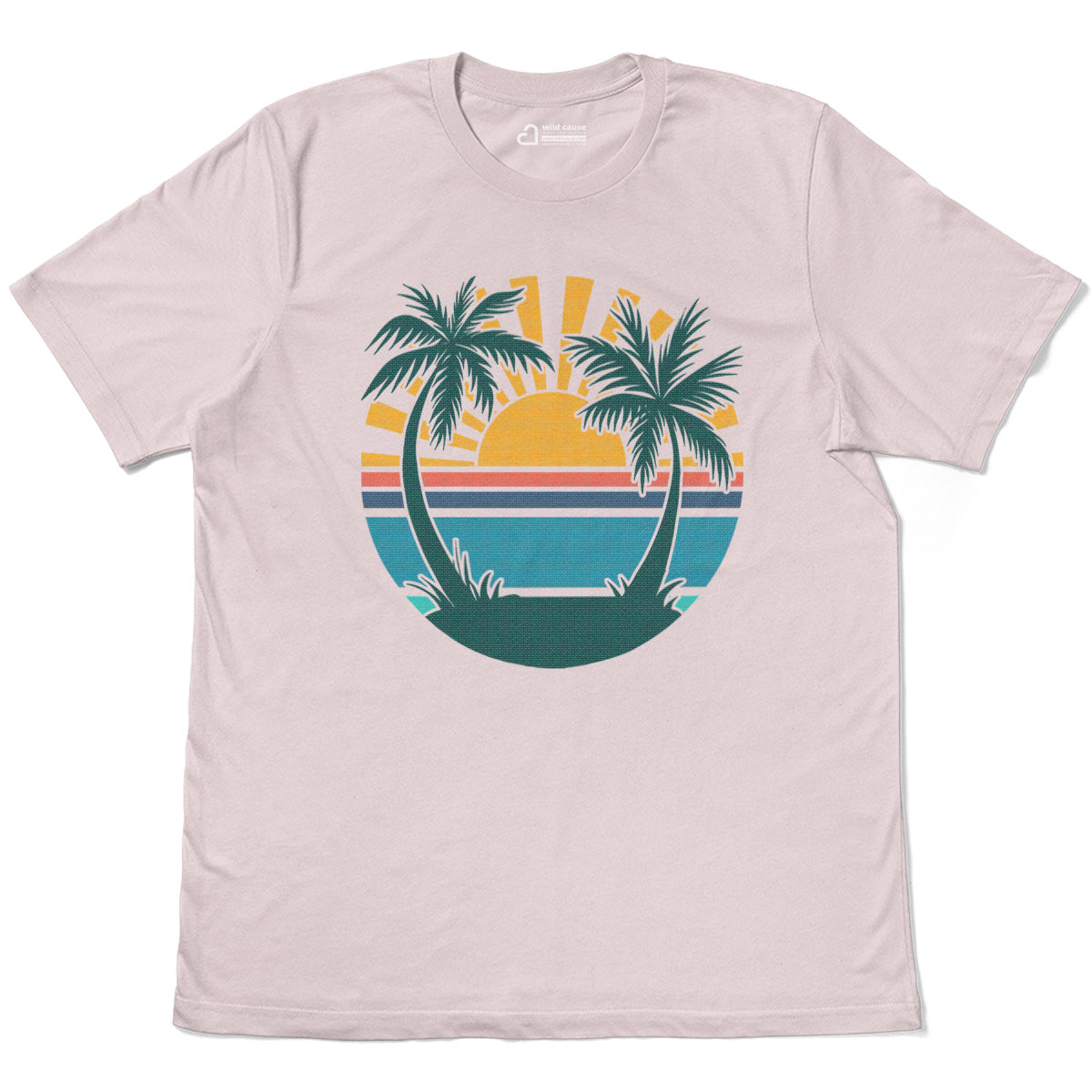 Relax, watch sunset waves unfold Adult Cotton Tee T-Shirt is perfect for those chilling under palm trees. This retro sunset gathering design captures sunset beach with palm vibes, providing a unique style. Enjoy sunset views with palm vibes and trees in this comfortable tee.