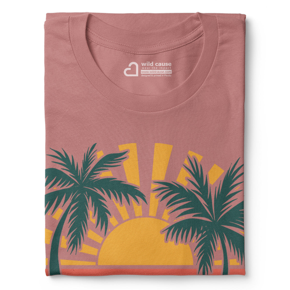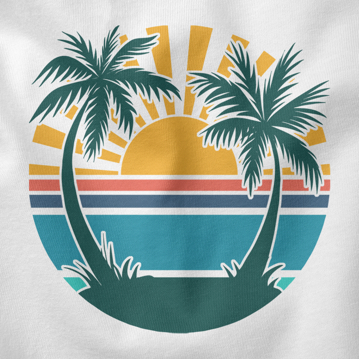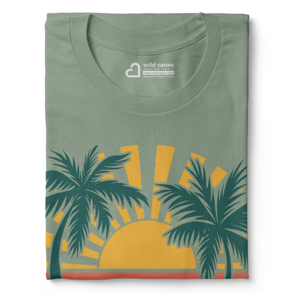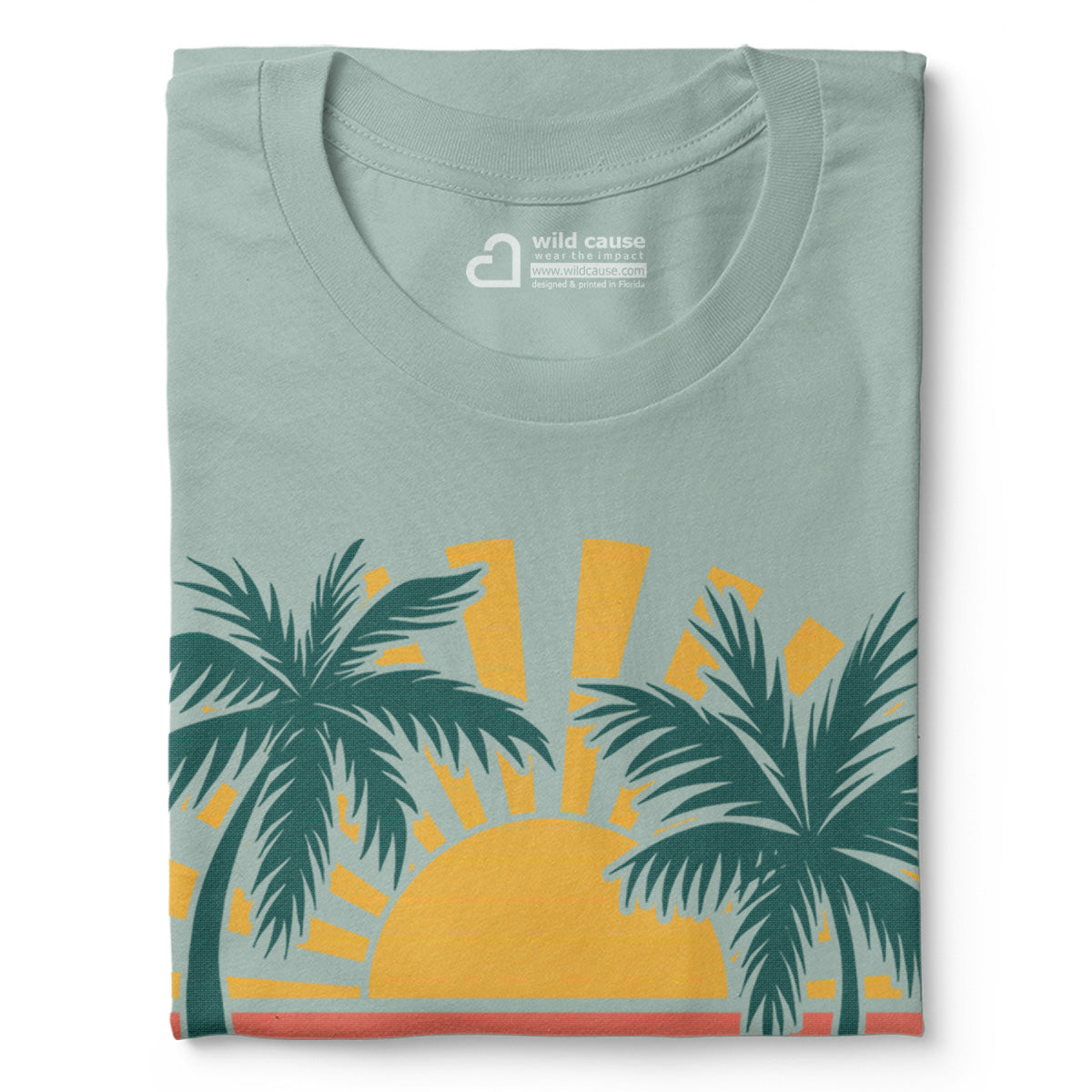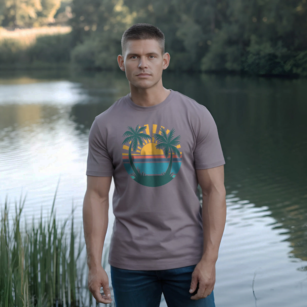 Relax, watch sunset waves unfold Adult Cotton Tee T-Shirt is perfect for those chilling under palm trees. This retro sunset gathering design captures sunset beach with palm vibes, providing a unique style. Enjoy sunset views with palm vibes and trees in this comfortable tee.
